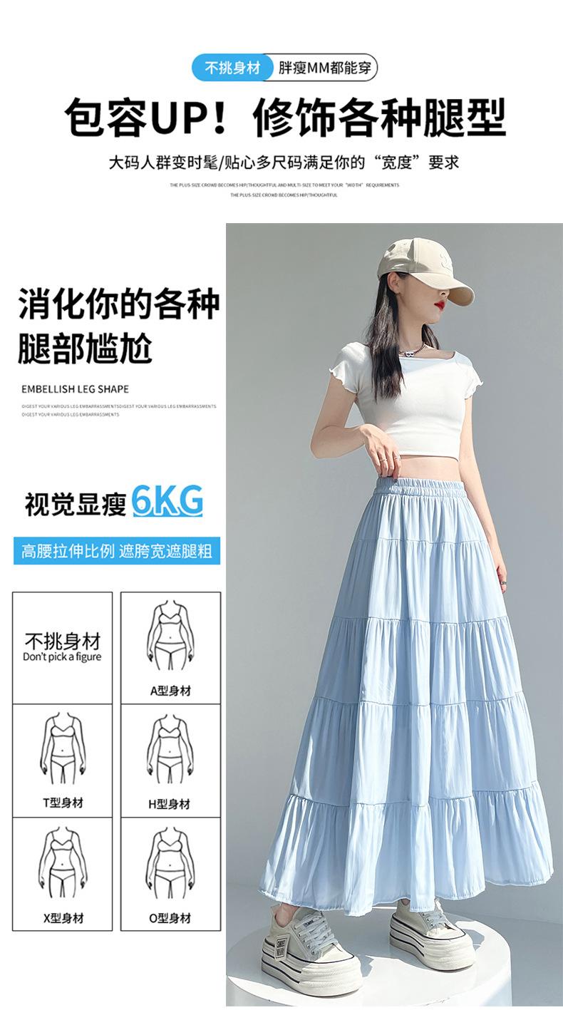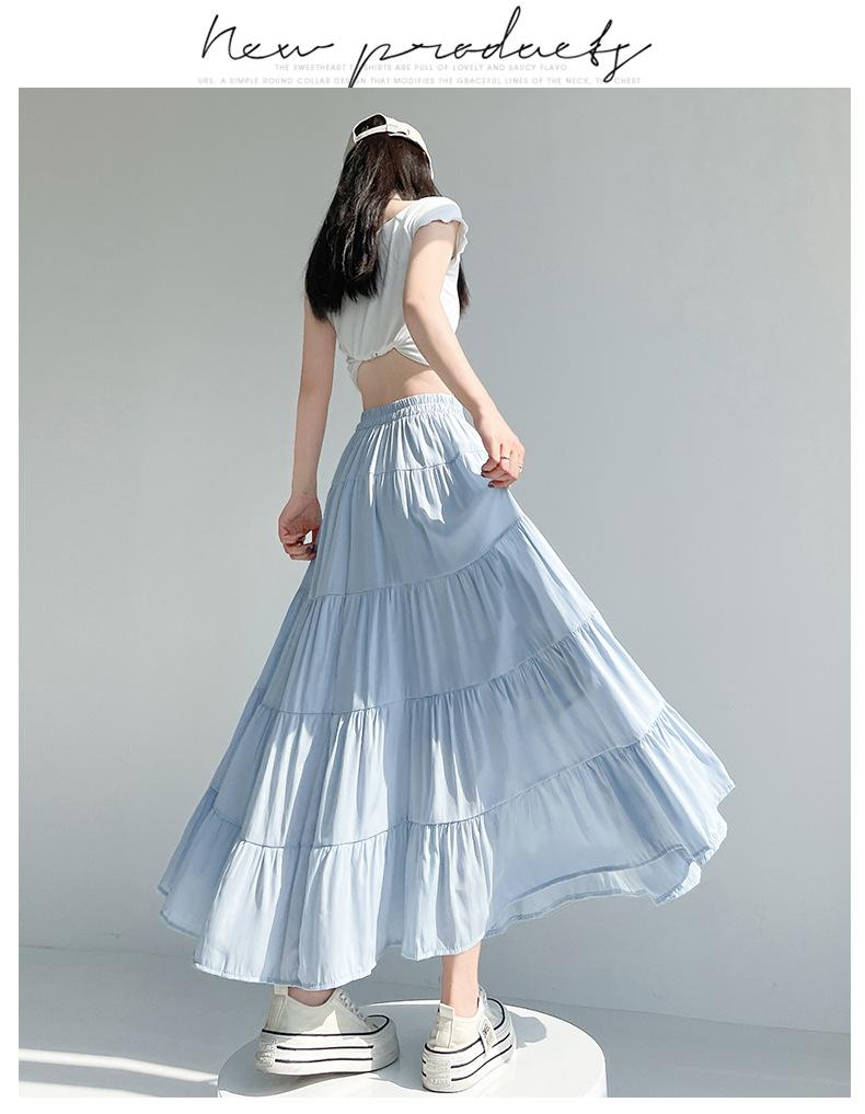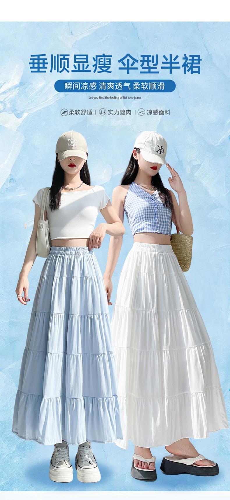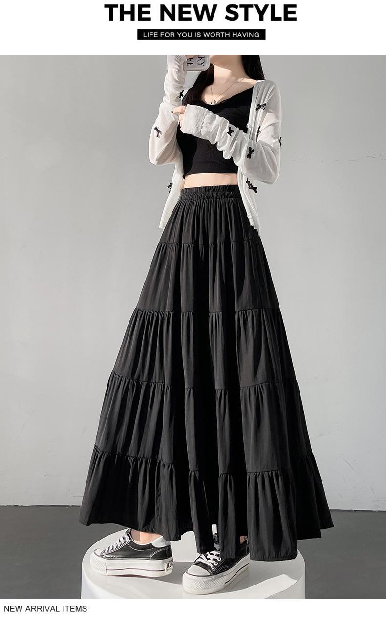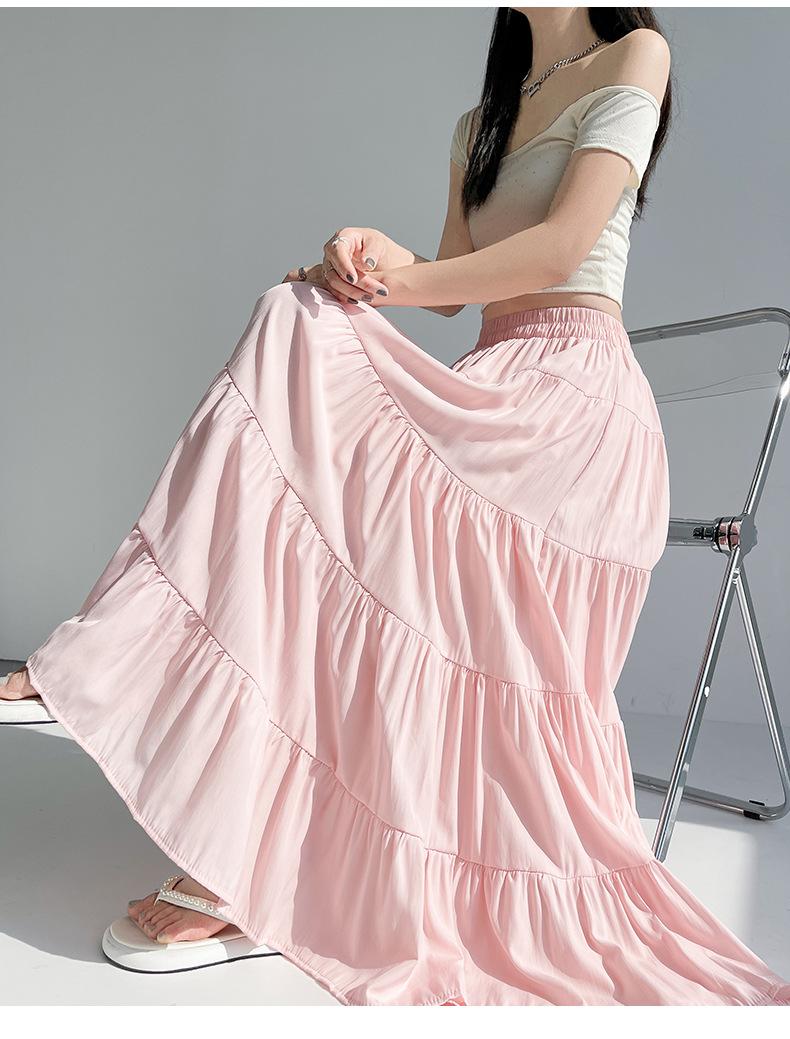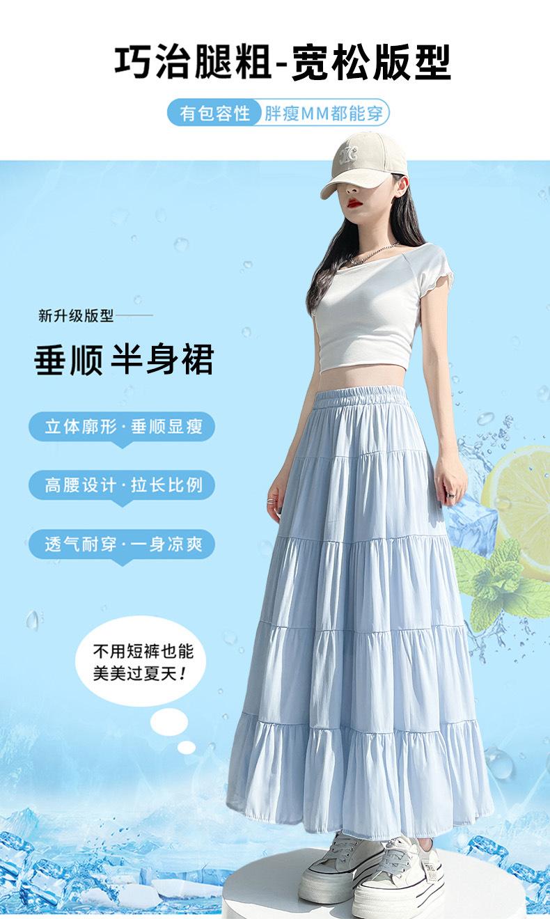 Falda de Pastel Elegante Suave para Mujer 2023 Nuevo Verano Look Adelgazante de Cintura Alta Versátil Falda Paraguas de Vuelo Amplio Falda Larga Línea A