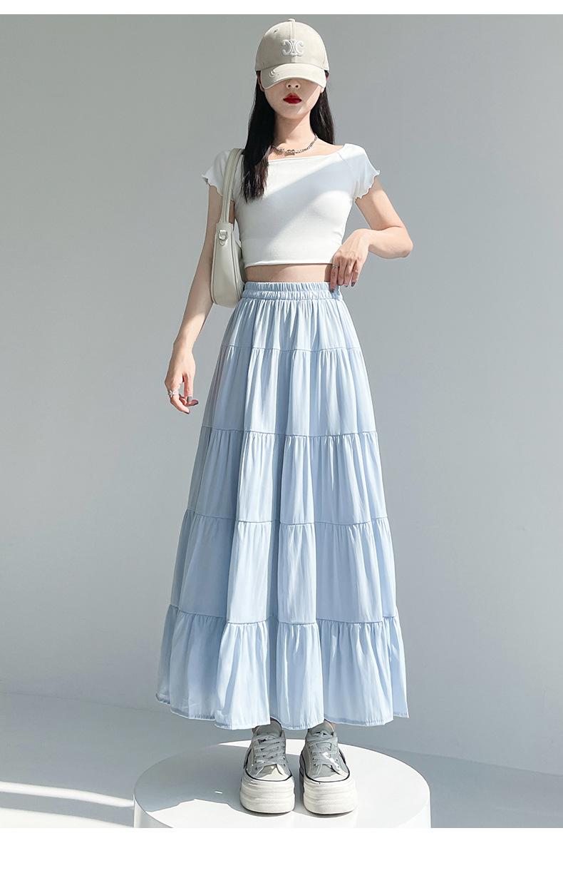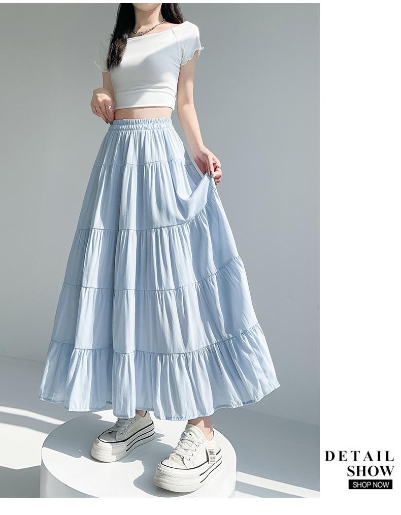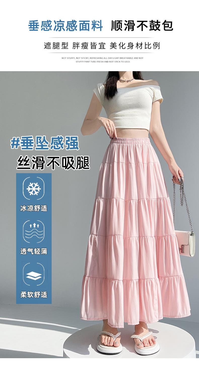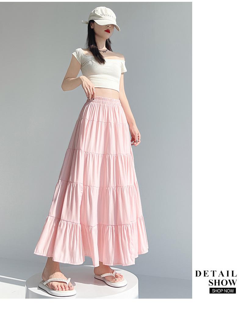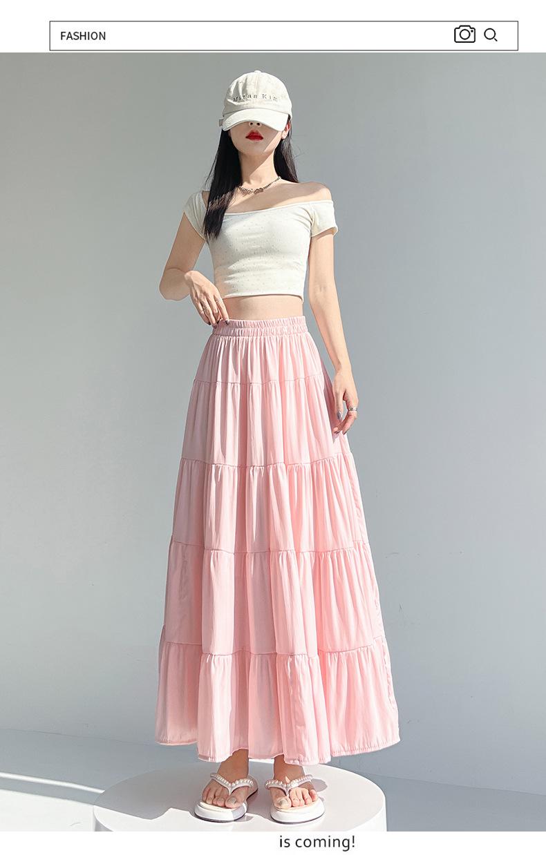 Falda de Pastel Elegante Suave para Mujer 2023 Nuevo Verano Look Adelgazante de Cintura Alta Versátil Falda Paraguas de Vuelo Amplio Falda Larga Línea A