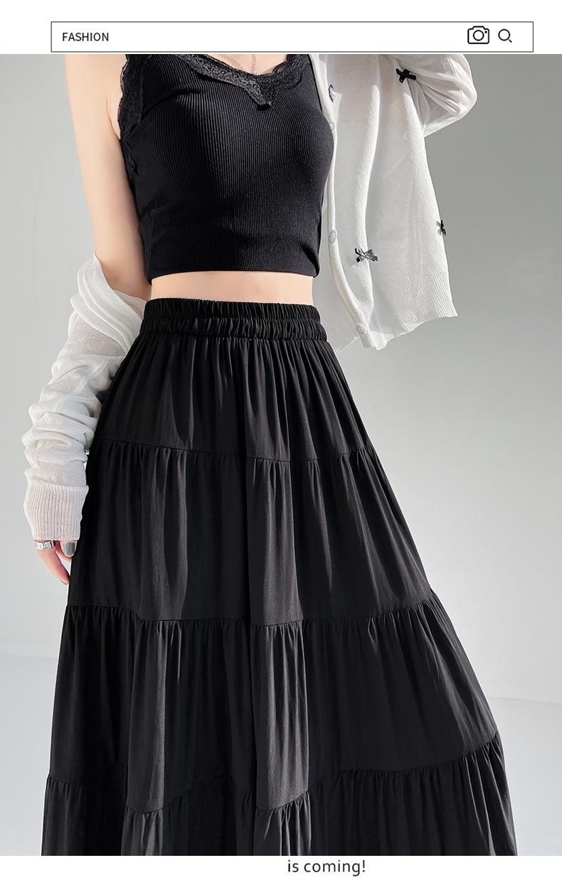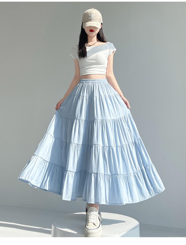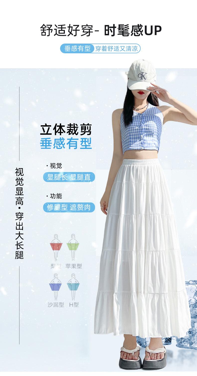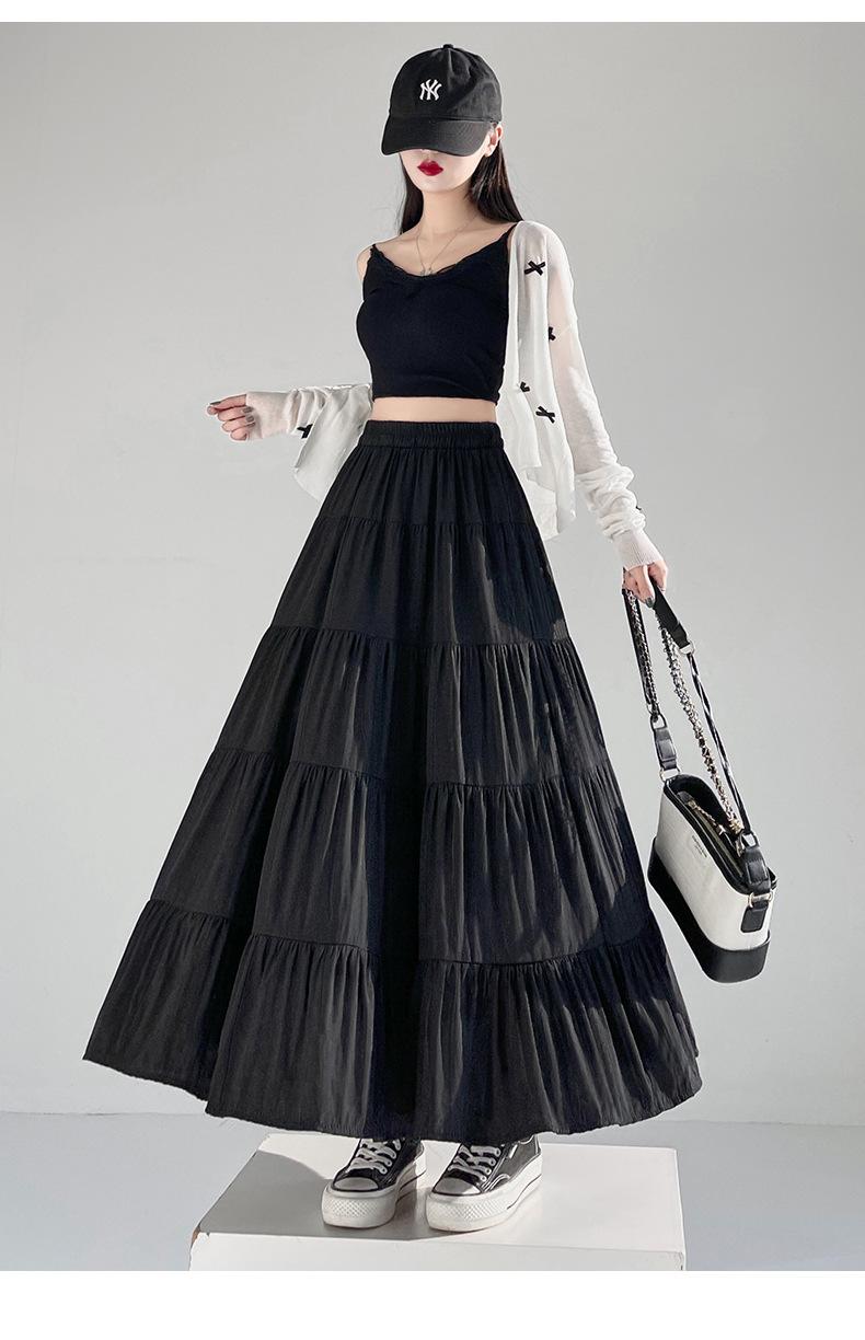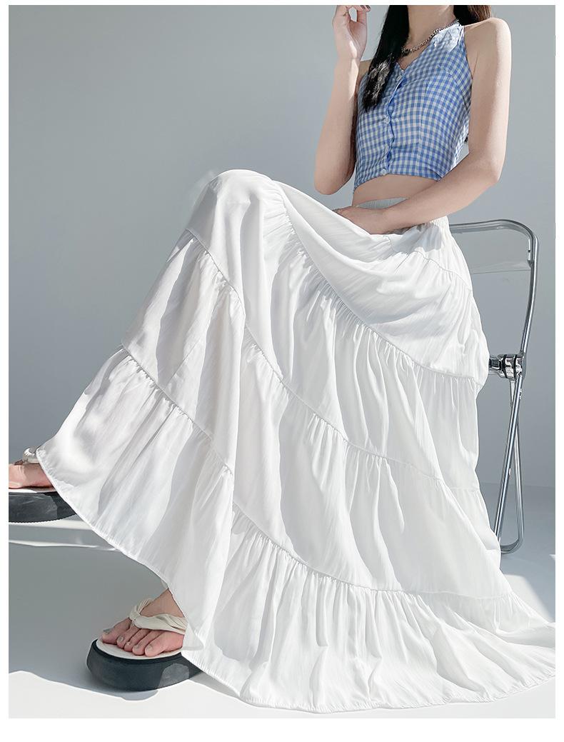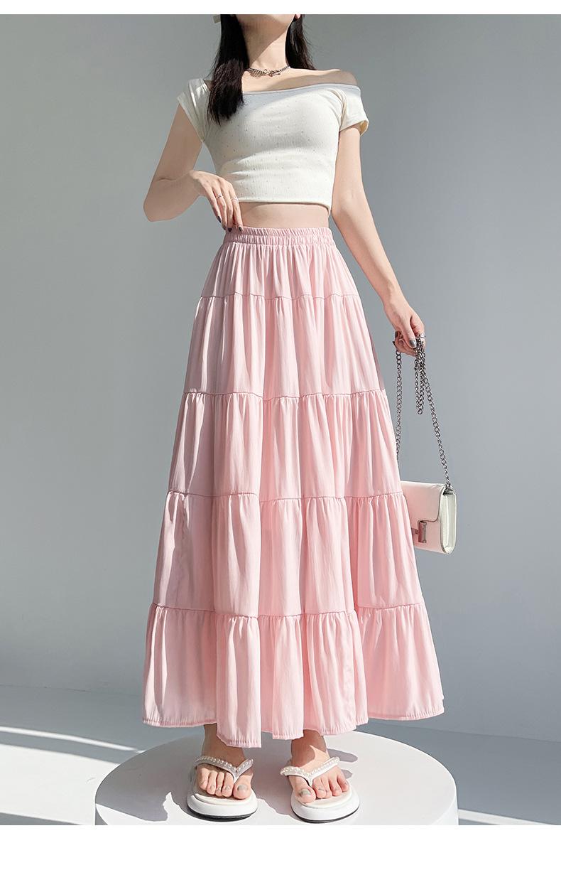 Falda de Pastel Elegante Suave para Mujer 2023 Nuevo Verano Look Adelgazante de Cintura Alta Versátil Falda Paraguas de Vuelo Amplio Falda Larga Línea A