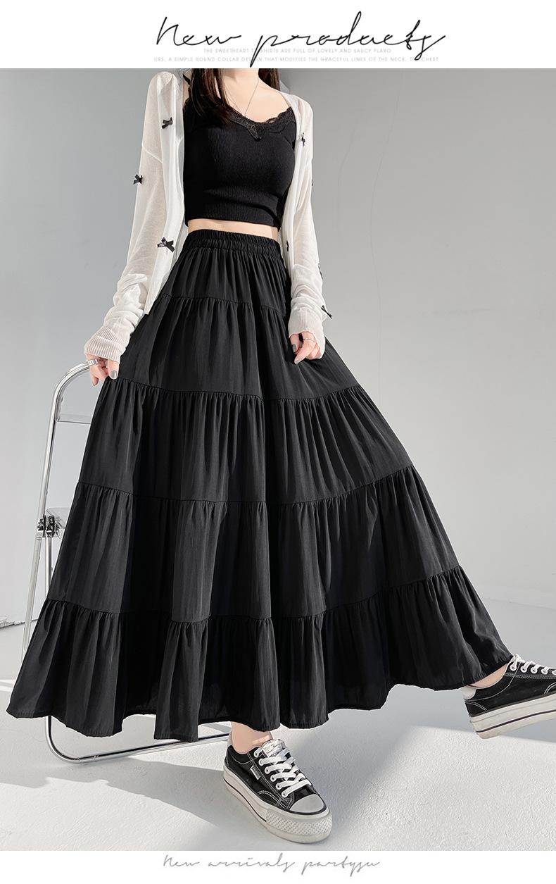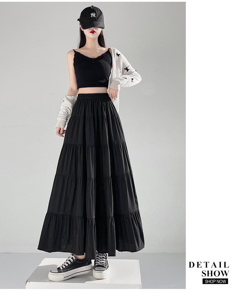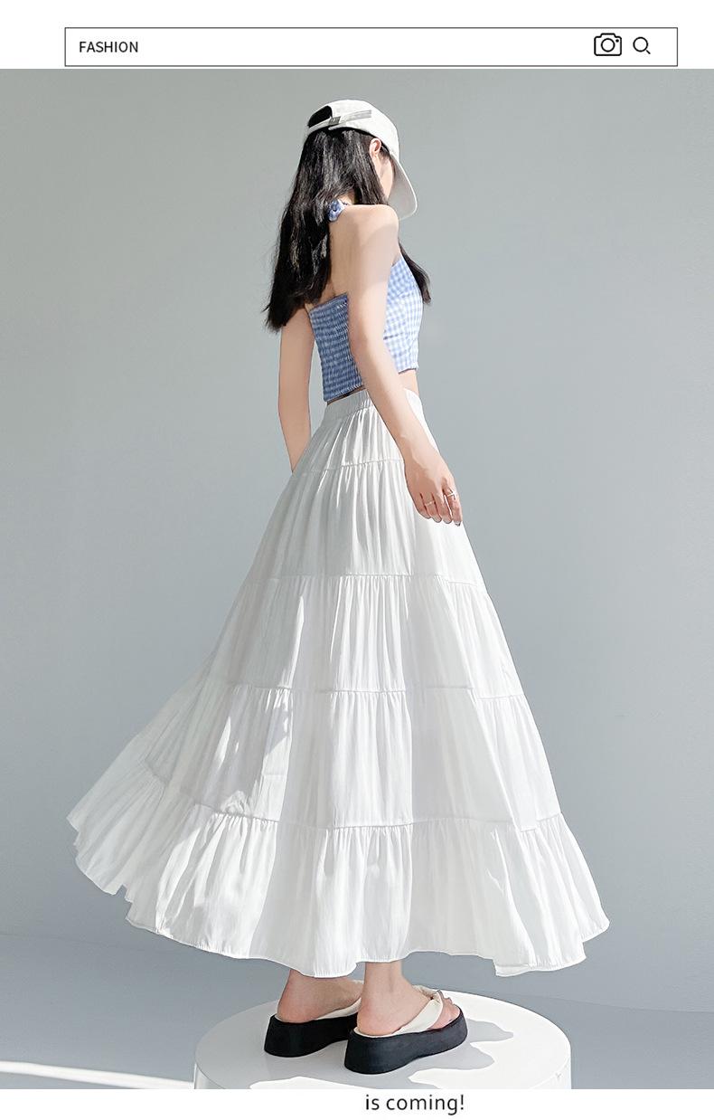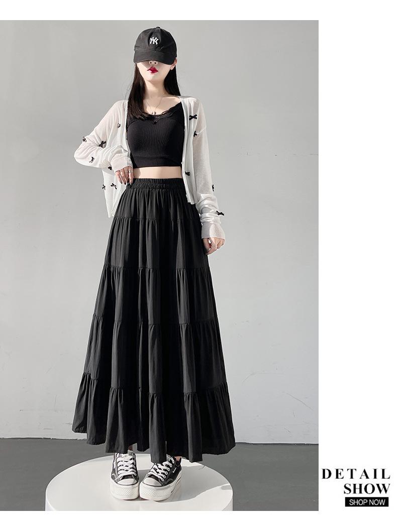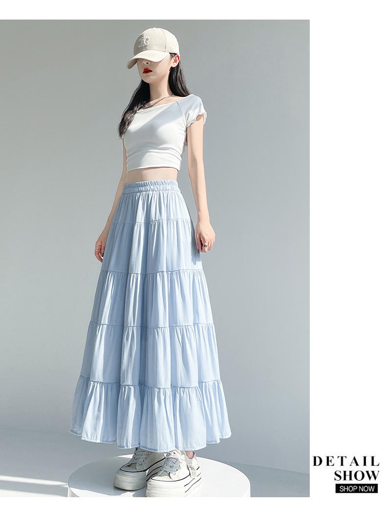 Falda de Pastel Elegante Suave para Mujer 2023 Nuevo Verano Look Adelgazante de Cintura Alta Versátil Falda Paraguas de Vuelo Amplio Falda Larga Línea A