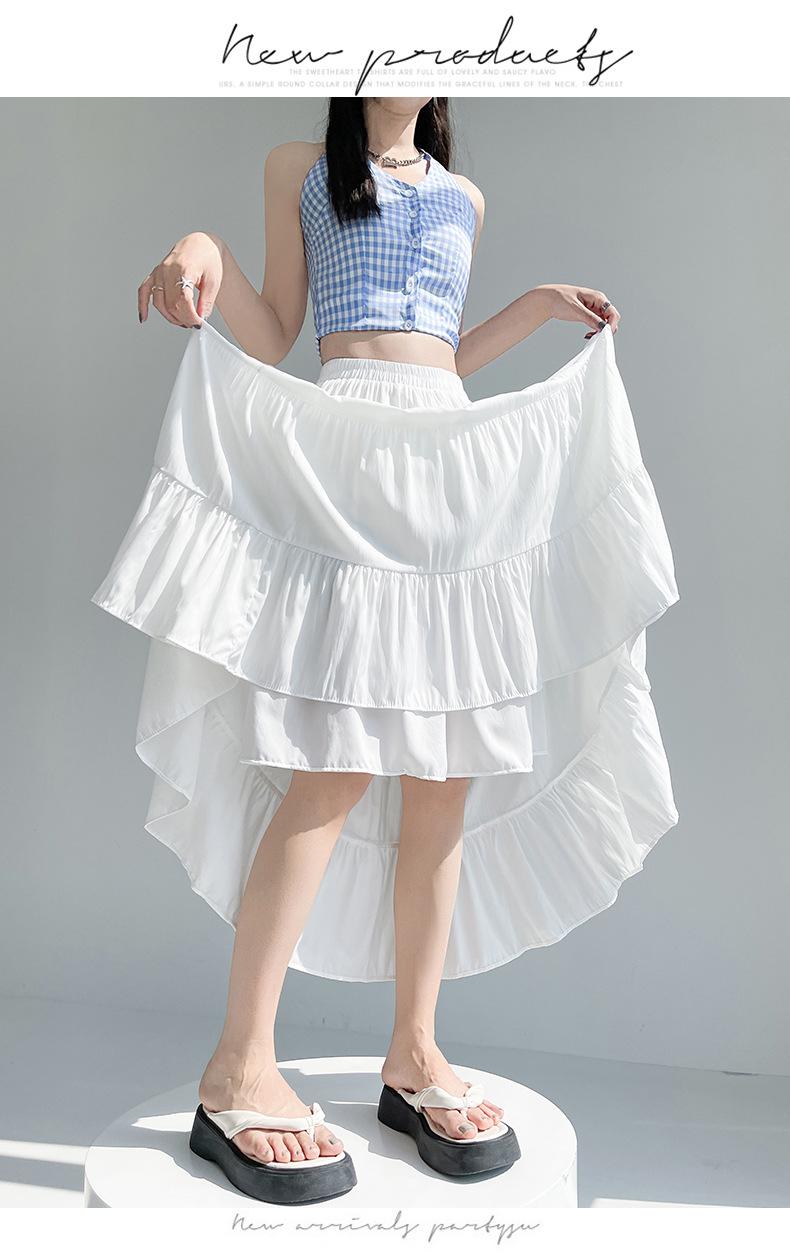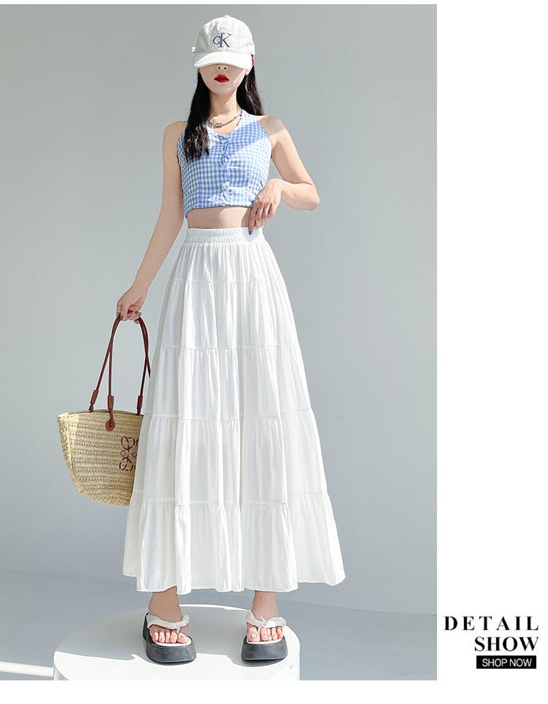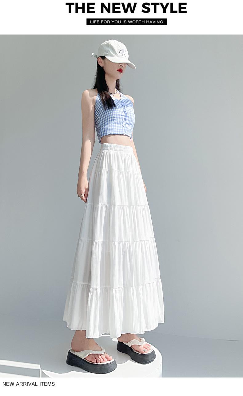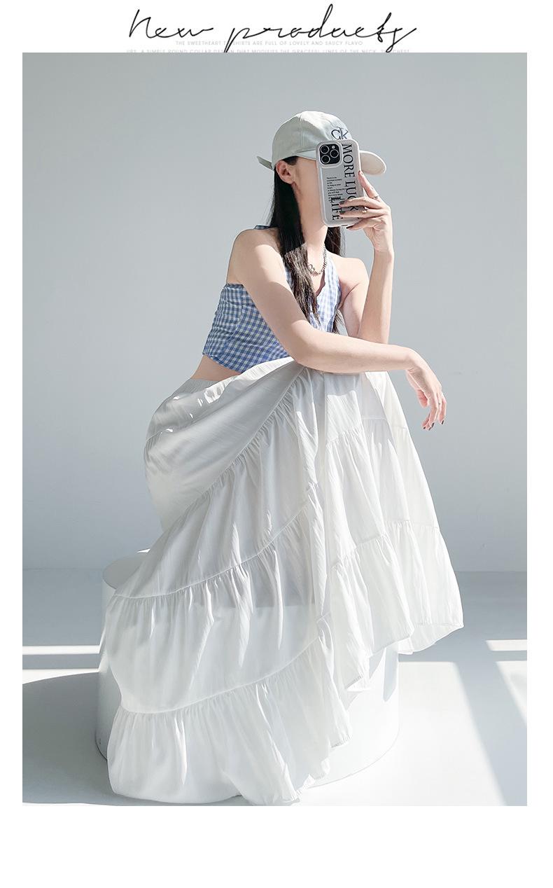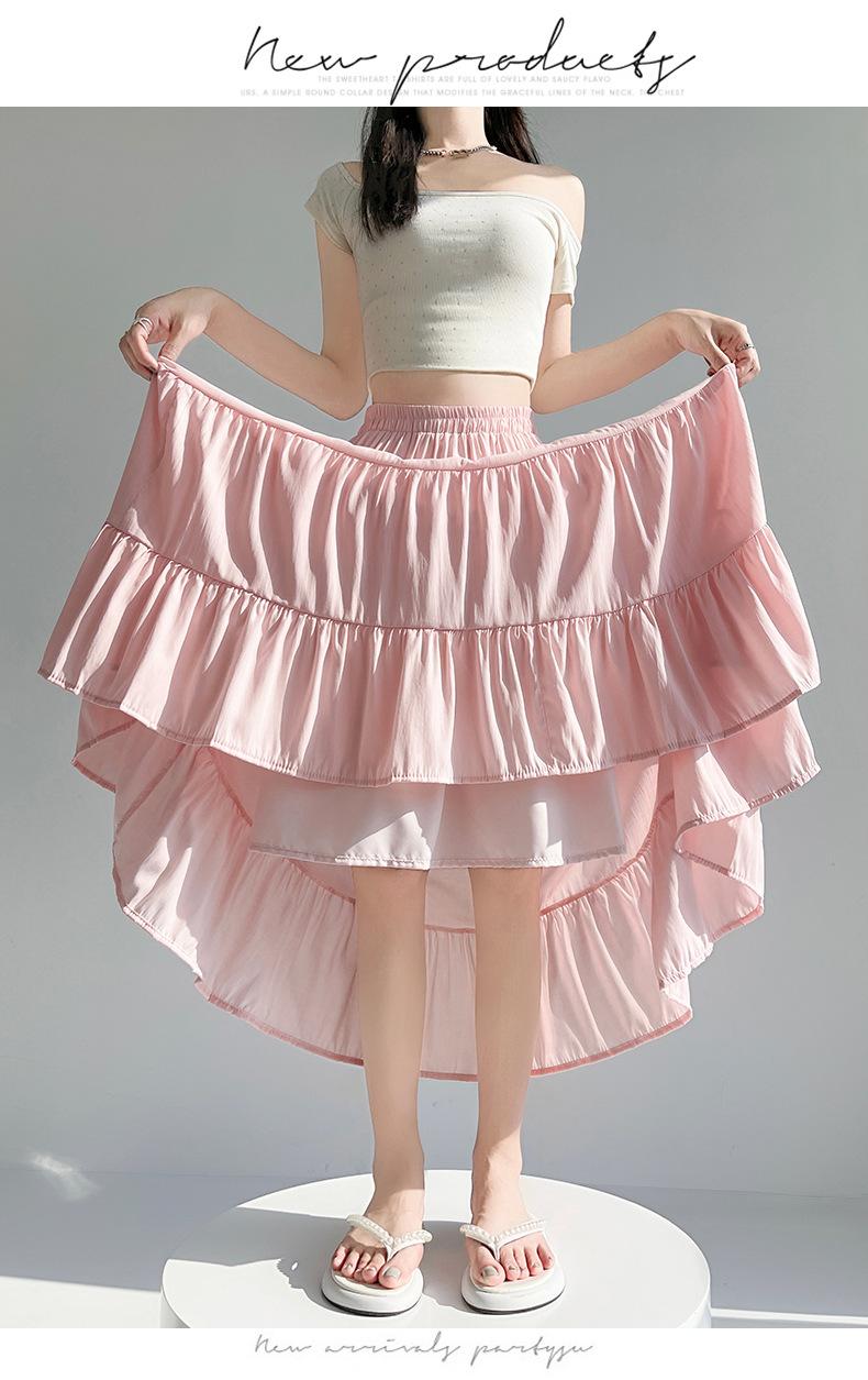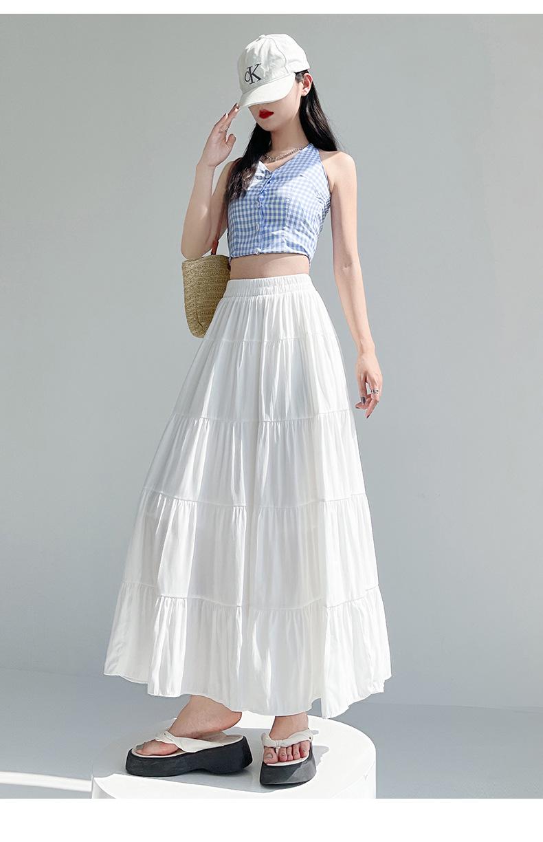 Falda de Pastel Elegante Suave para Mujer 2023 Nuevo Verano Look Adelgazante de Cintura Alta Versátil Falda Paraguas de Vuelo Amplio Falda Larga Línea A