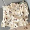 Pijamas de algodón con dibujos animados para mujer, ropa de dormir fina de manga larga con pantalones, para el hogar, venta al por mayor, novedad de primavera y otoño