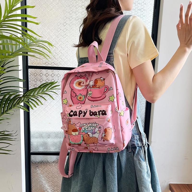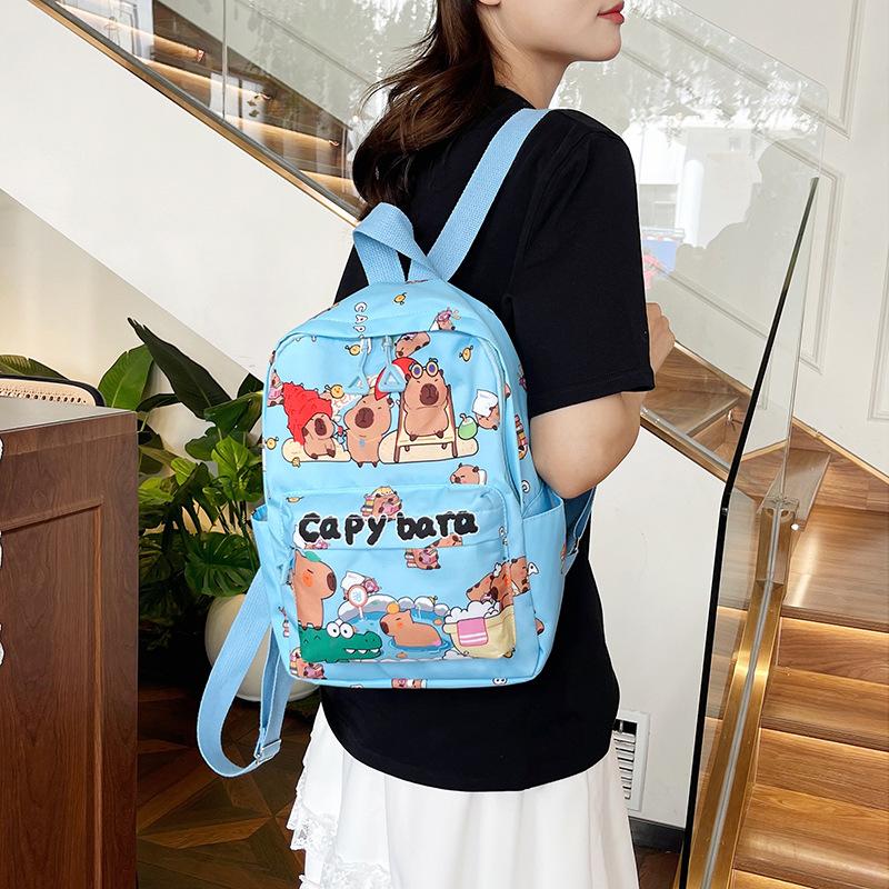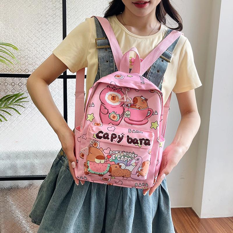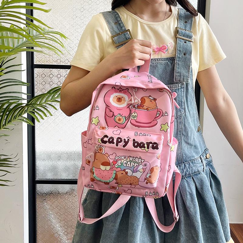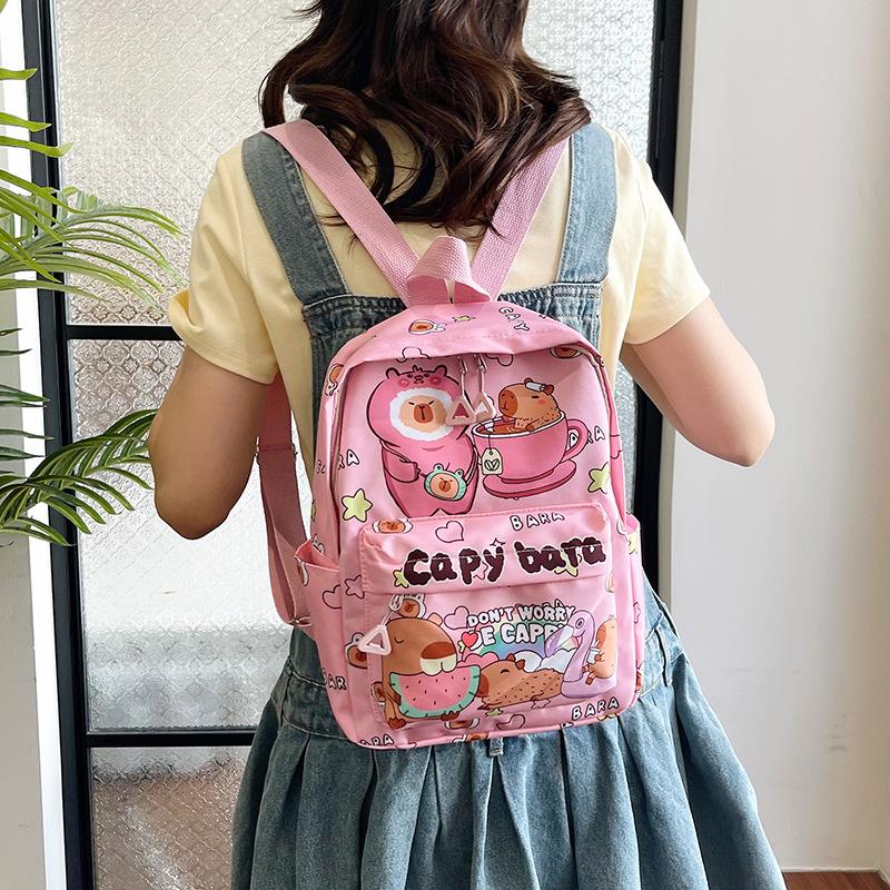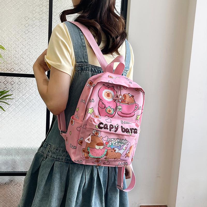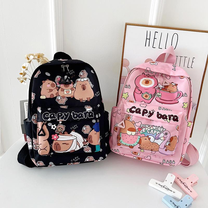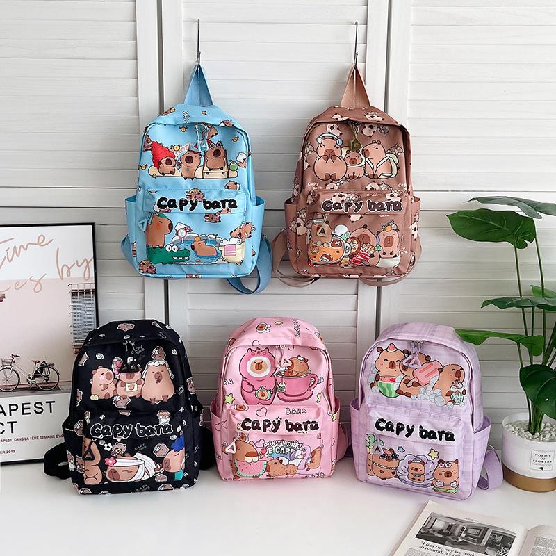 Mochila para Estudiantes de Primaria Nueva 2025 Gran Capacidad Dibujos Animados Lindo Carpincho Jardín de Niños Escuela Necesaria Bolso de Hombro