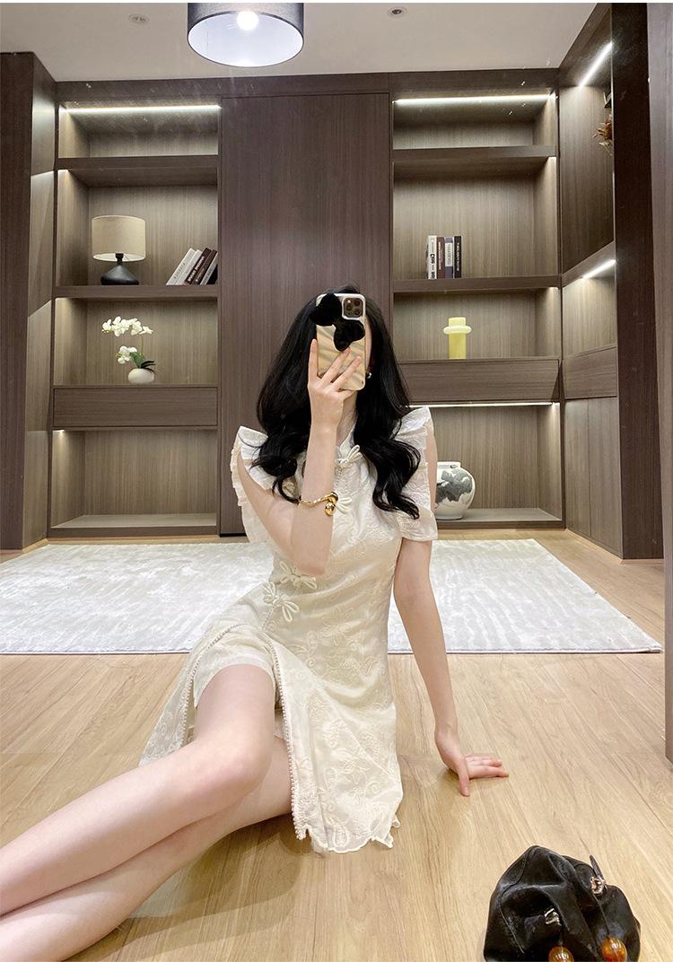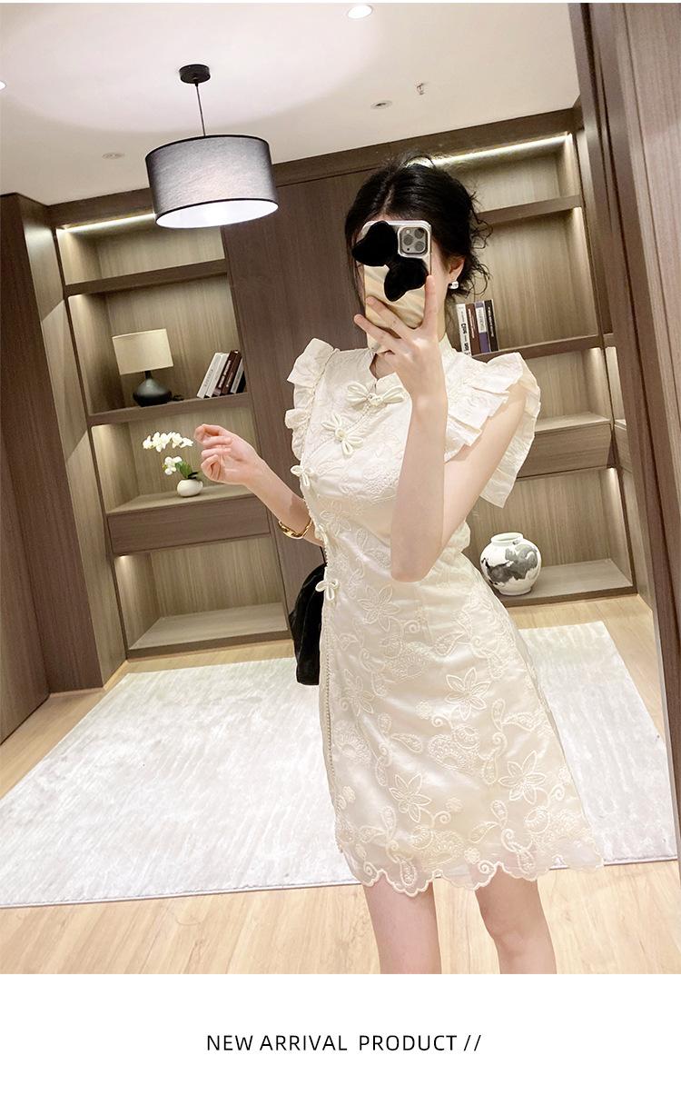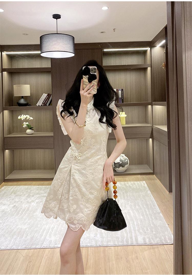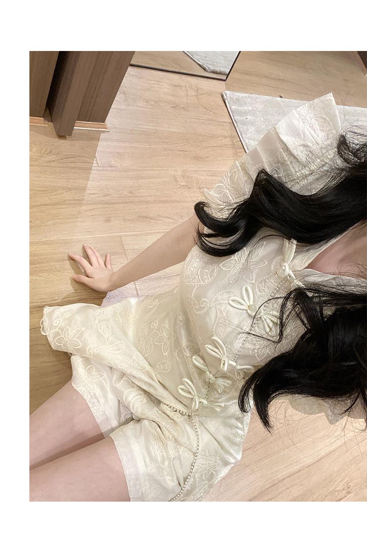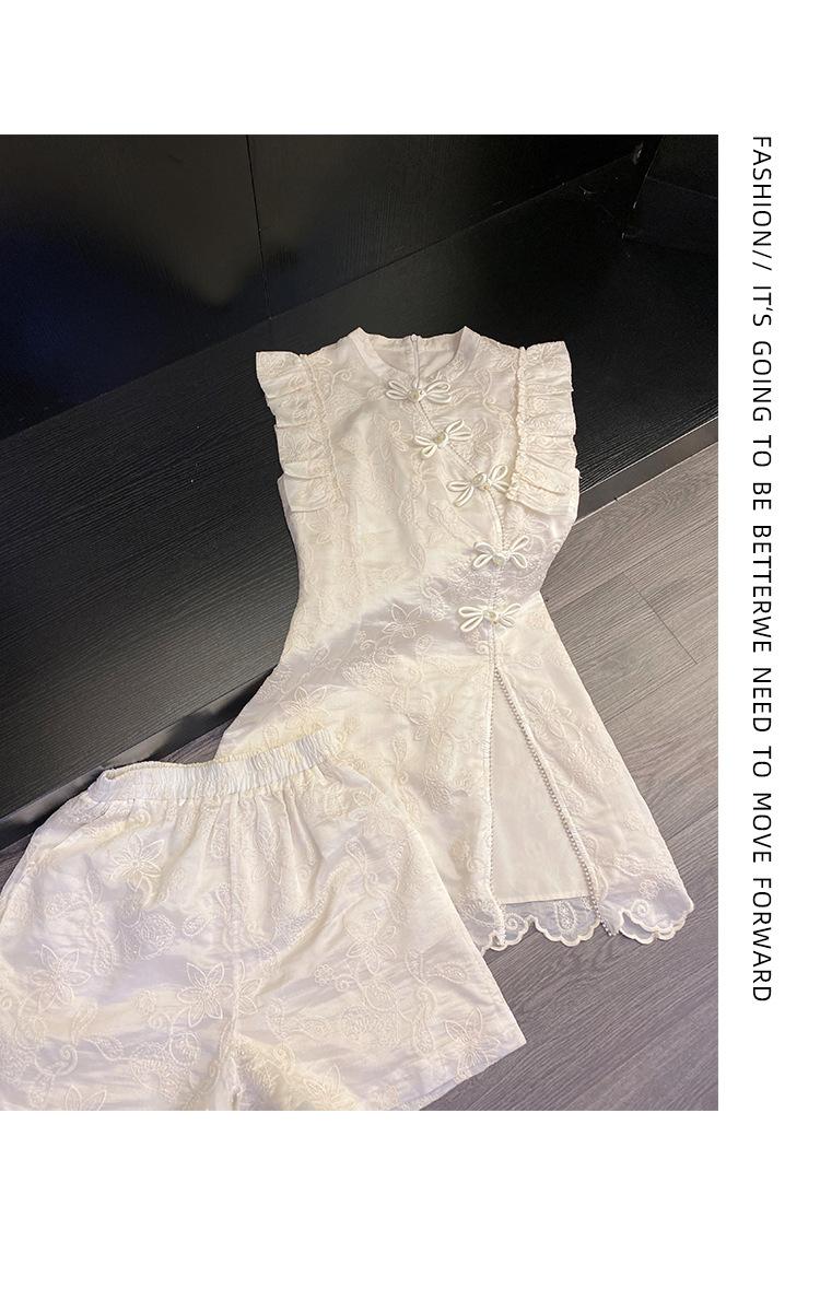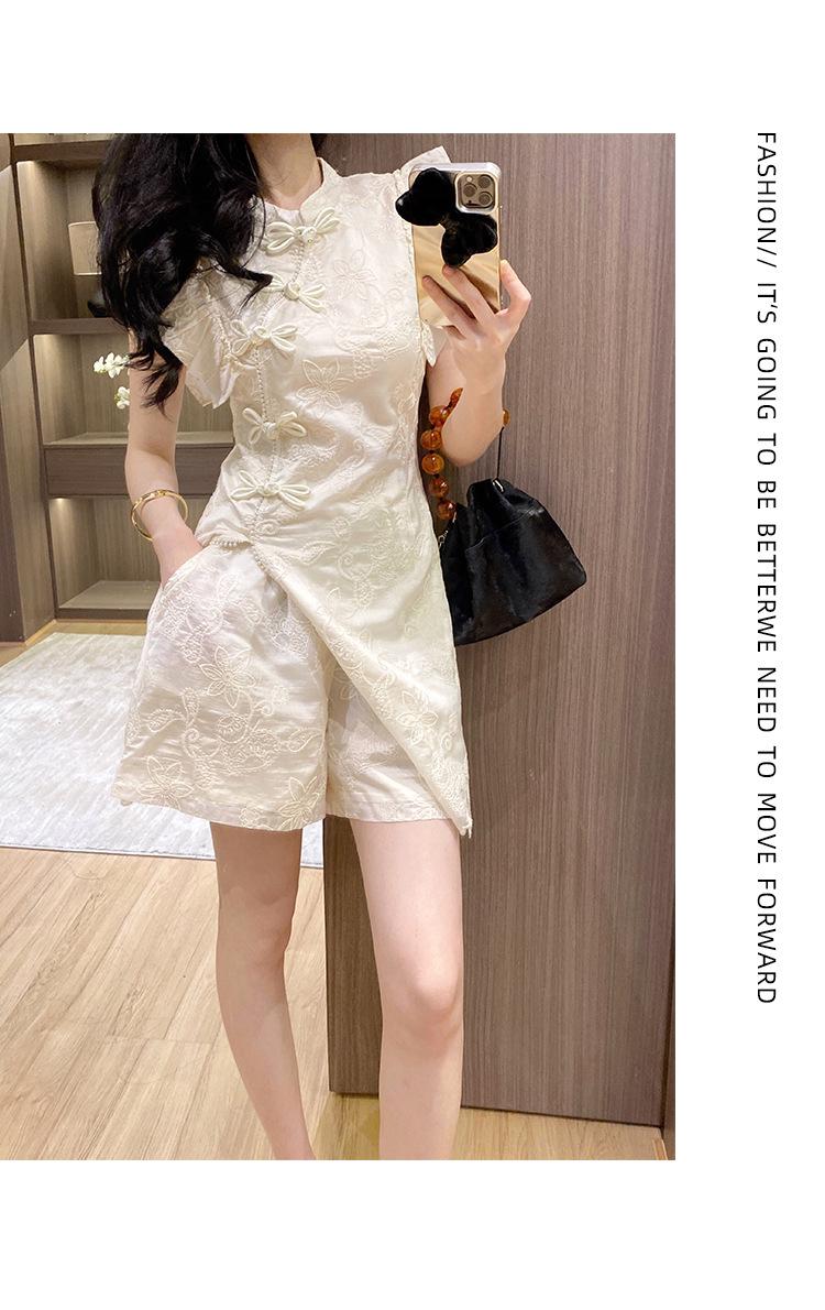 Nuevo Estilo Chino Vestido Estilo Nacional Mujer Pequeño 2025 Nuevo Hebilla Abertura Top Shorts Vestido de Dos Piezas