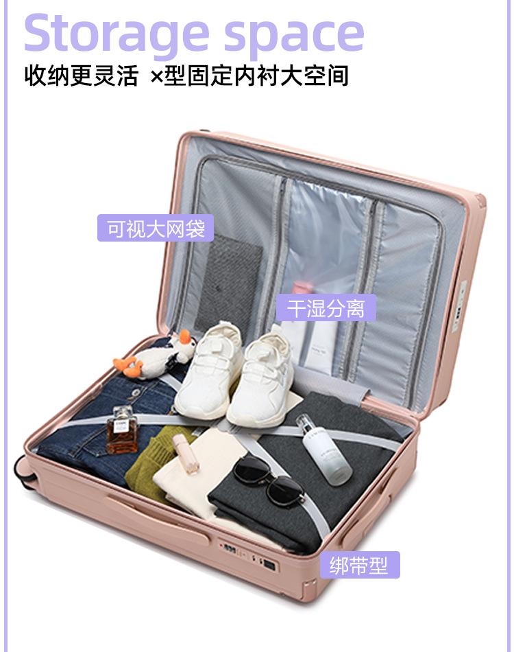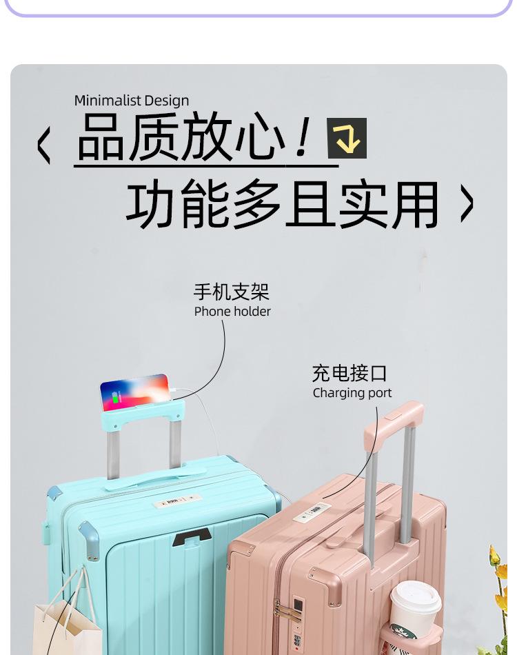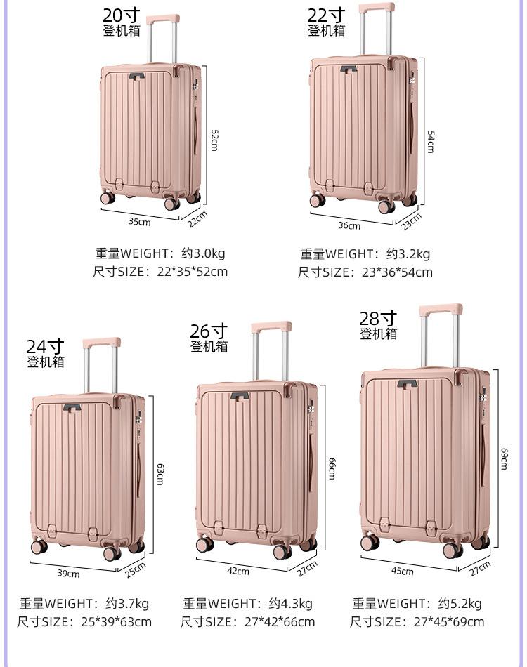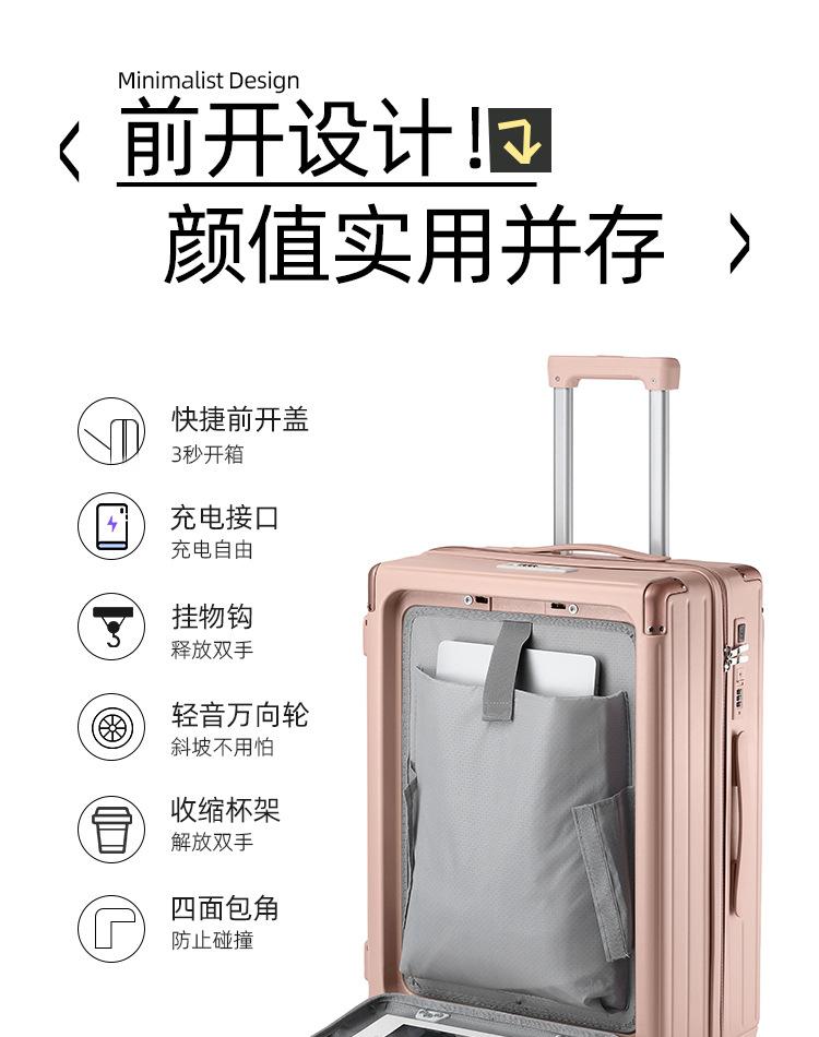 Maleta con apertura frontal de 20 pulgadas, pequeña, multifuncional, de 24 pulgadas, con contraseña y ruedas