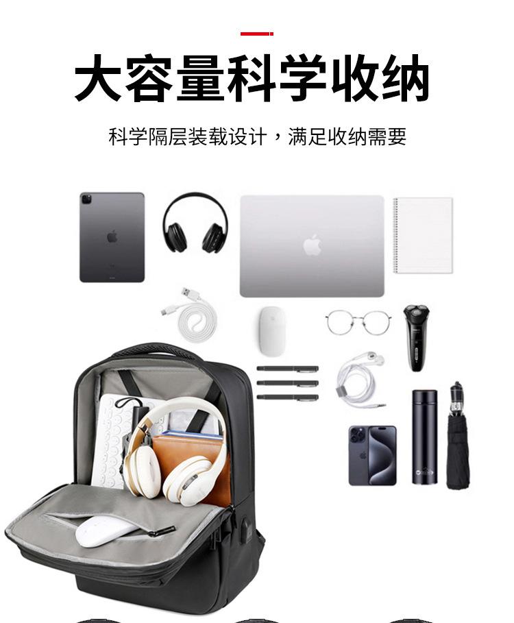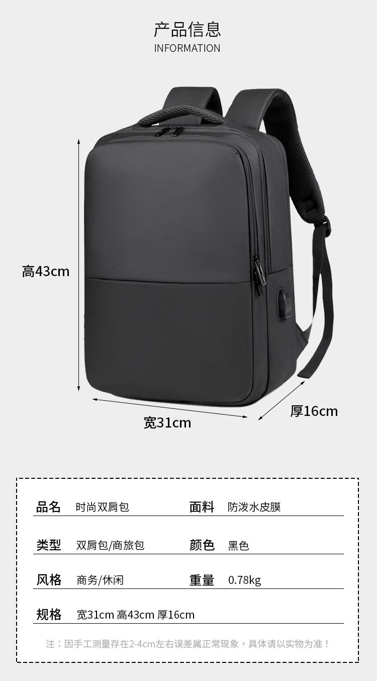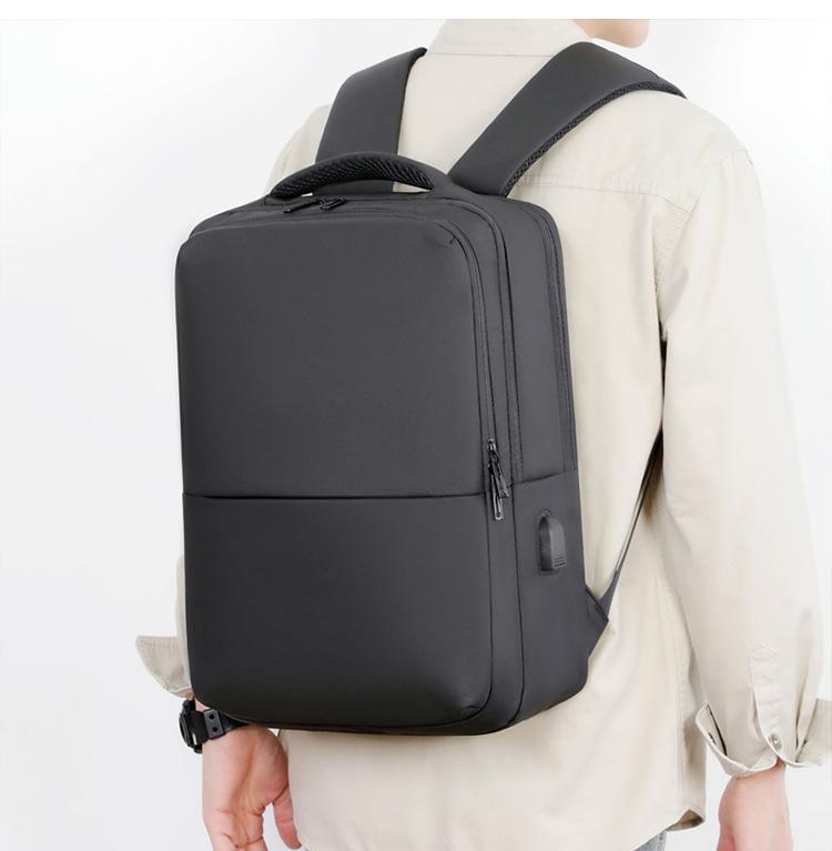 Mochila de negocios y ocio para hombre, sencilla, de gran capacidad, para uso diario, con expansión para ordenador de color sólido.