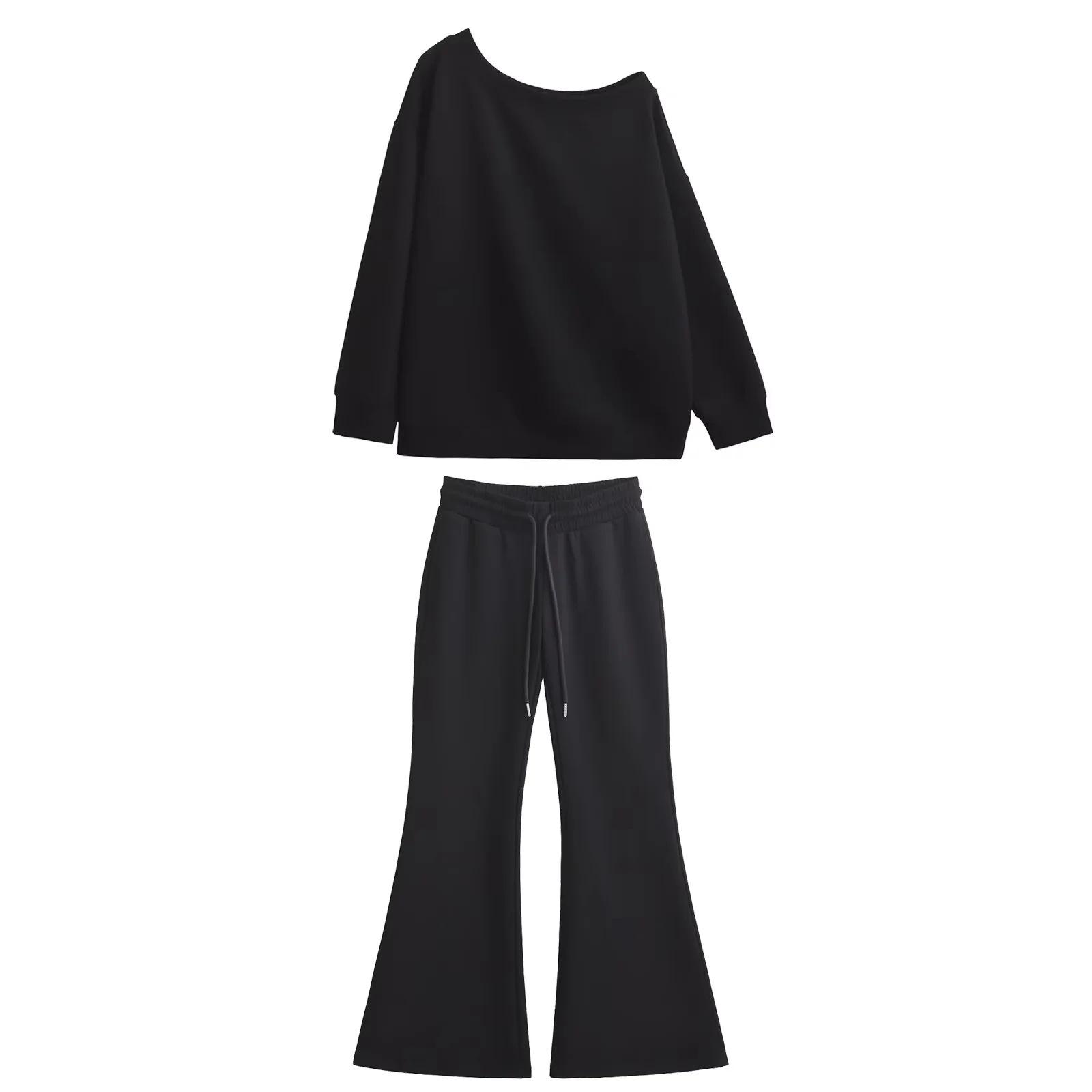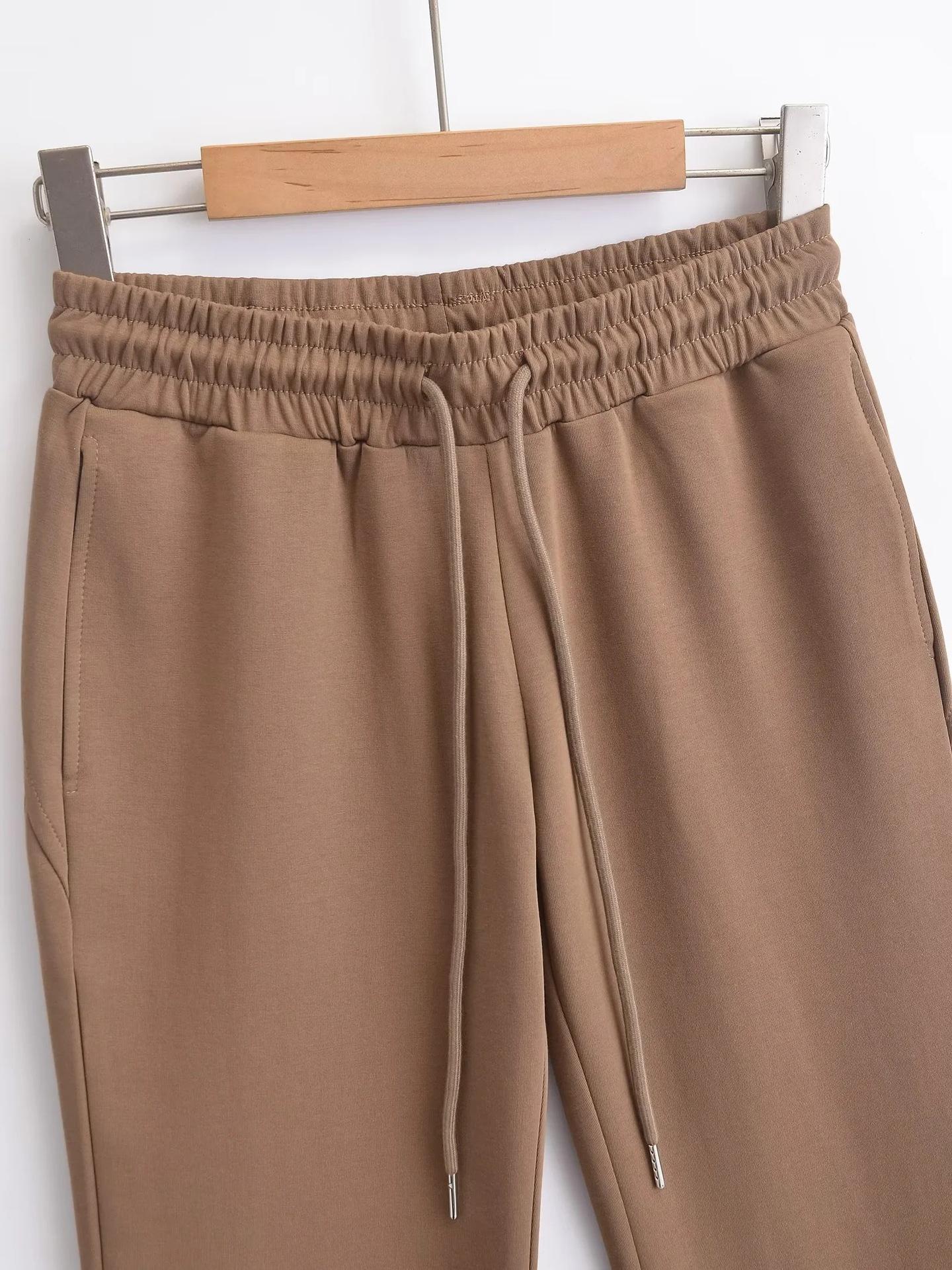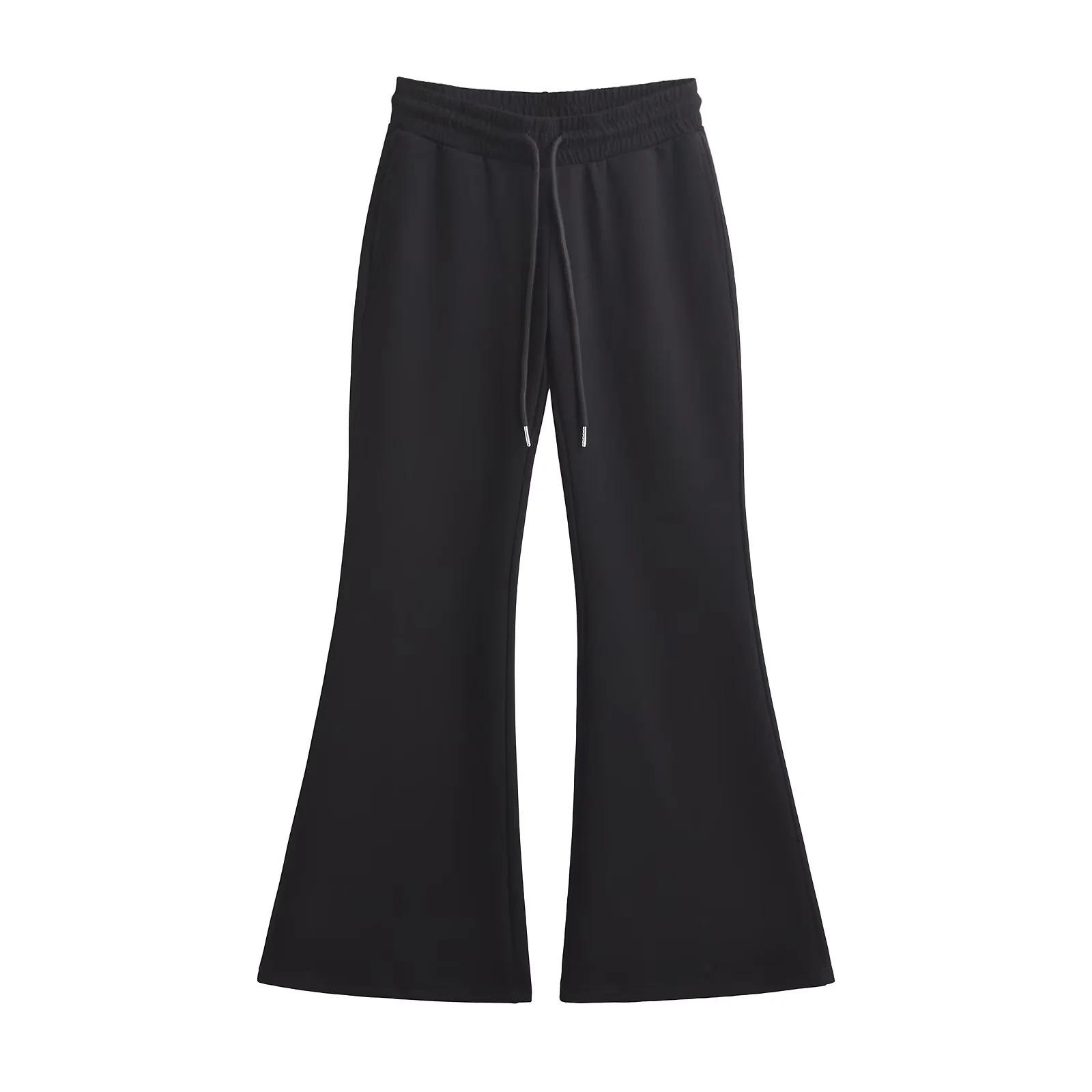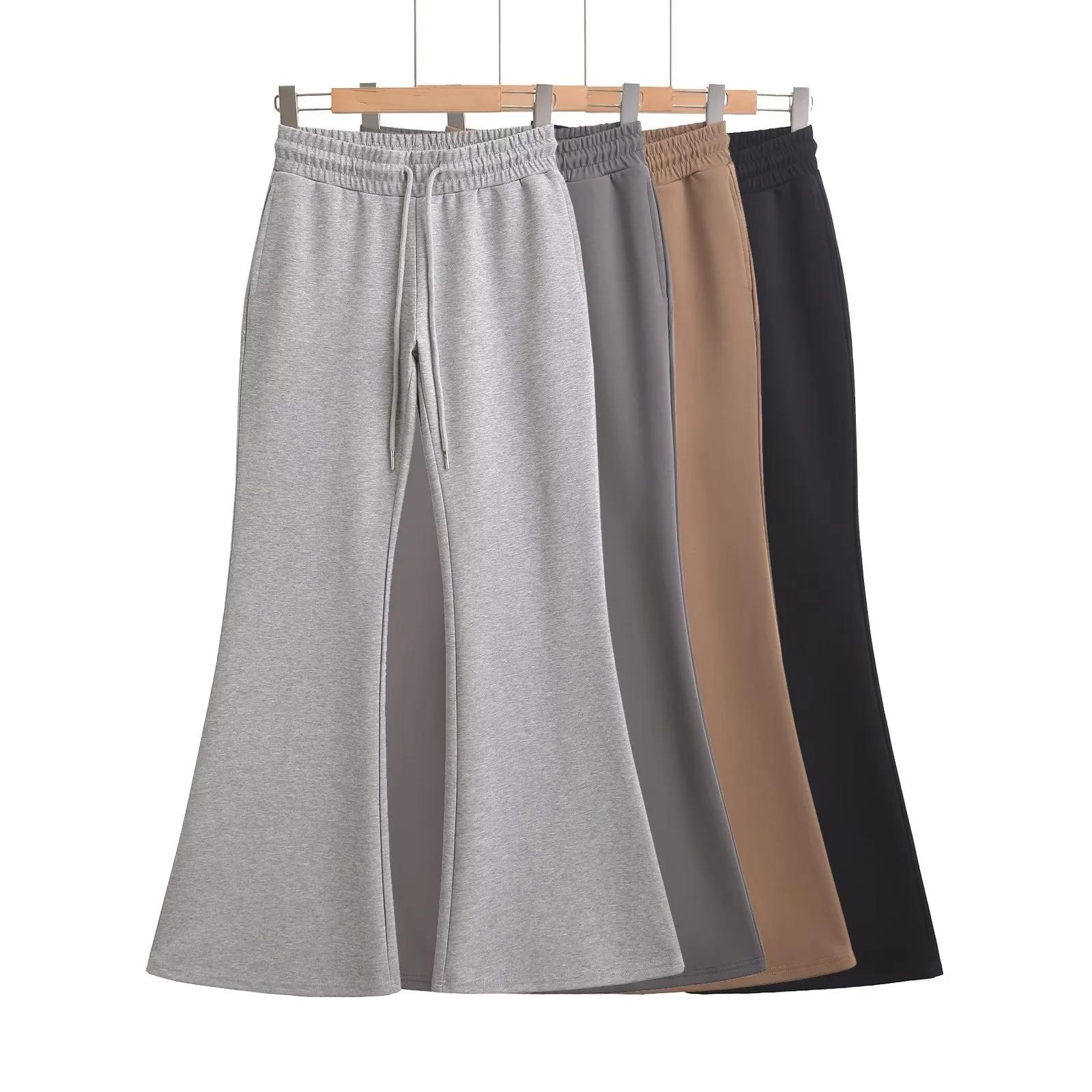 Pantalones deportivos elásticos de estilo europeo y americano, con cordón ajustable, para adelgazar, informales, para correr, con pierna ancha, para yoga, de cintura baja, para mujer.