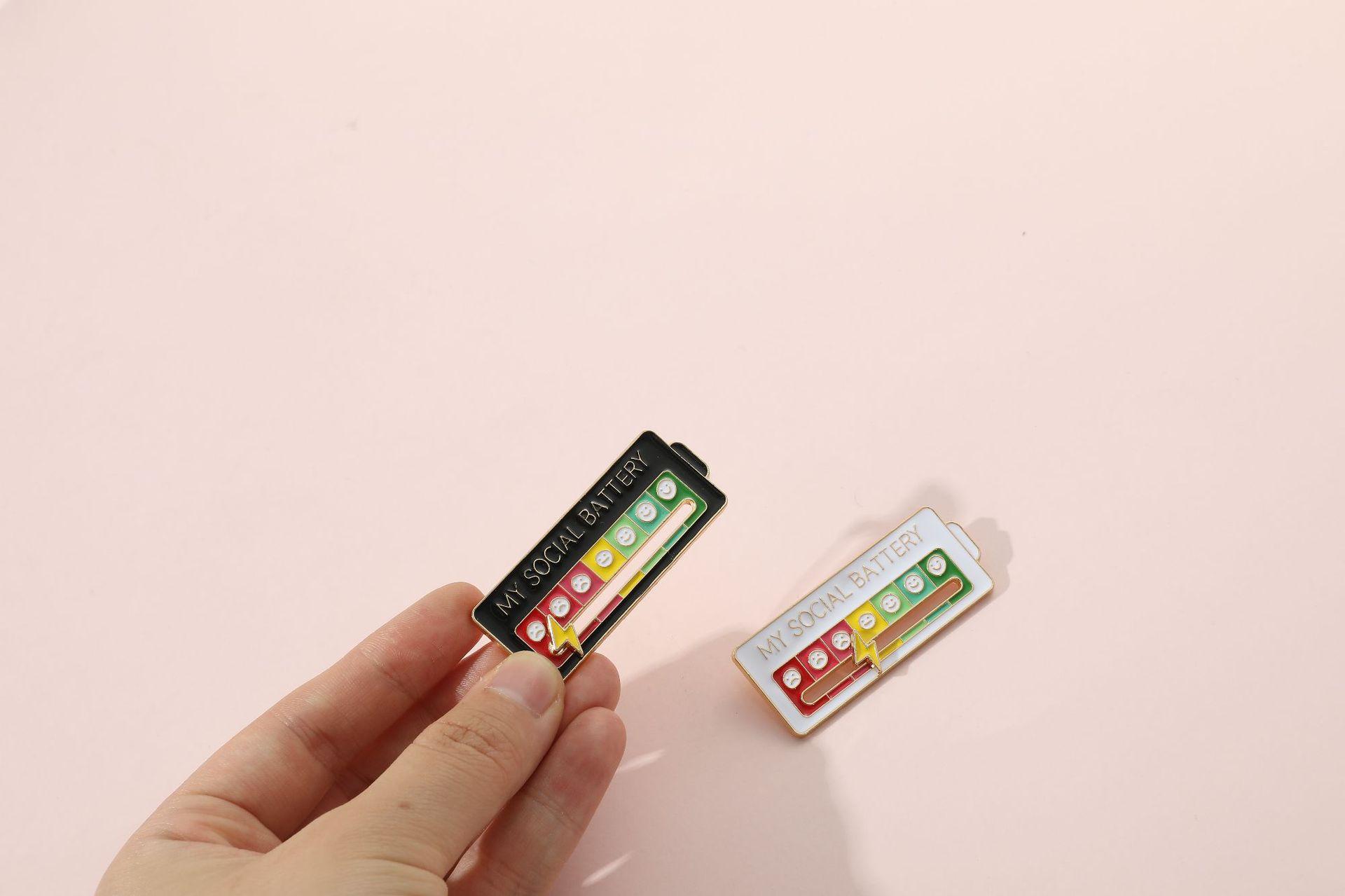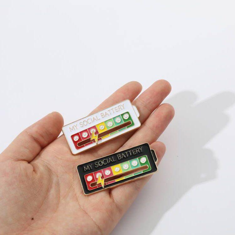 Explosiones transfronterizas MI BATERÍA SOCIAL Conversión de estado de ánimo Broche de metal Deslizante Personalizado Poder social