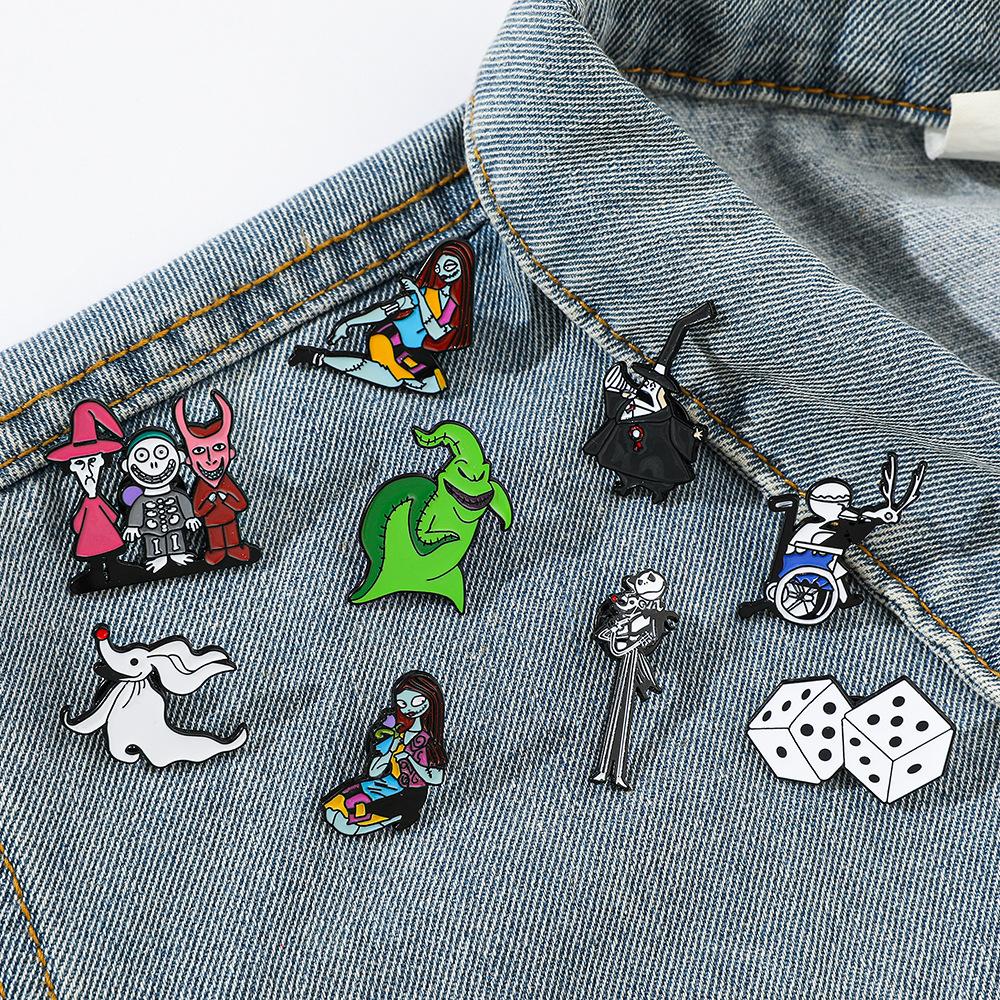 Películas Thriller Clásicas Europeas y Americanas y Series de TV Insignia Metálica de Dibujos Animados de Halloween Pesadilla antes de Navidad Broche Personaje Jack