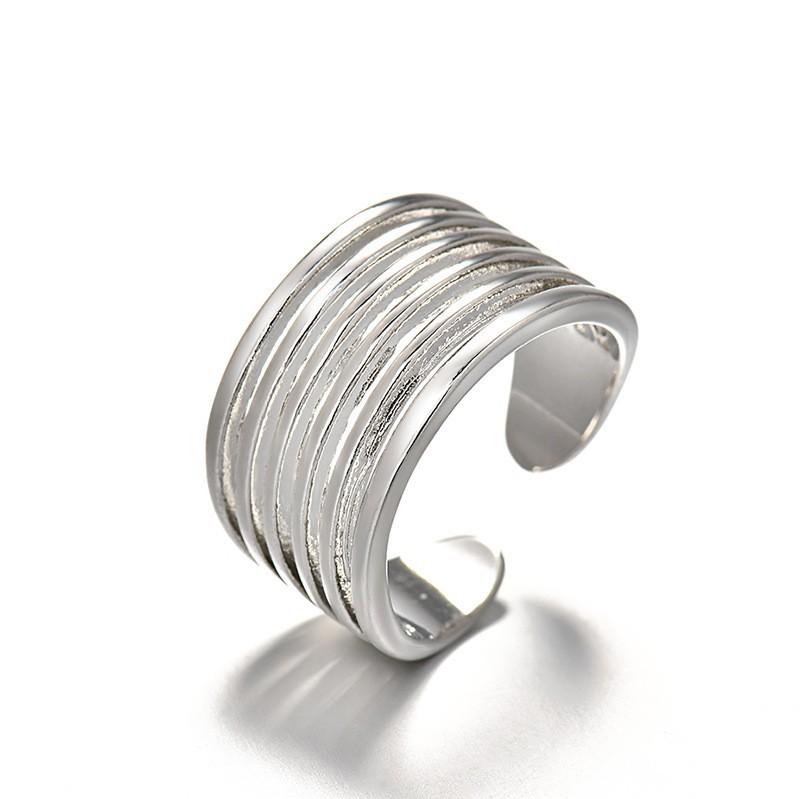 Anillo de línea multicapa simple sin decoloración de estilo europeo y americano, anillo de nicho con sentido de alta calidad, versión ancha, anillo de dedo exagerado del pueblo de Chaozhou