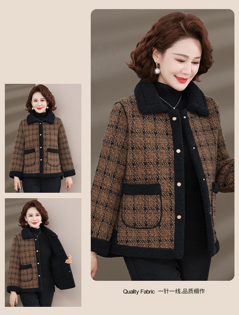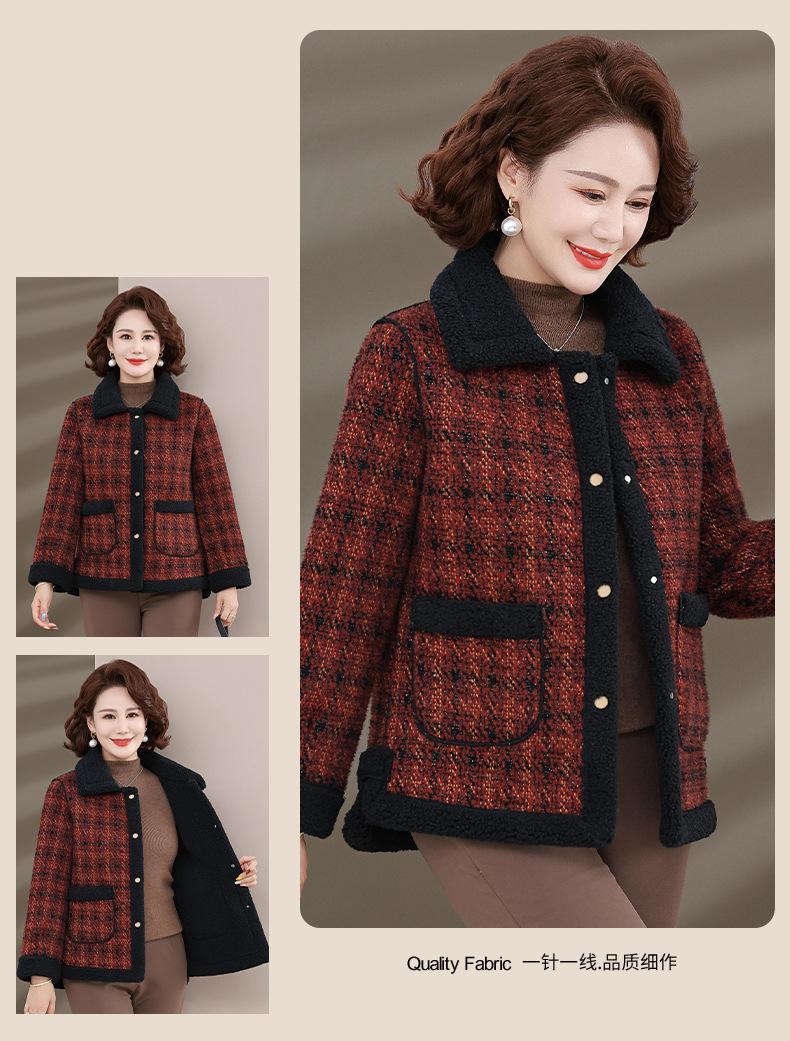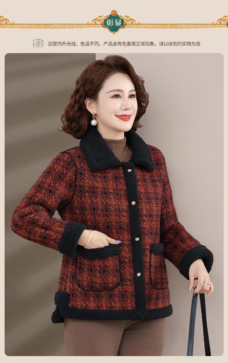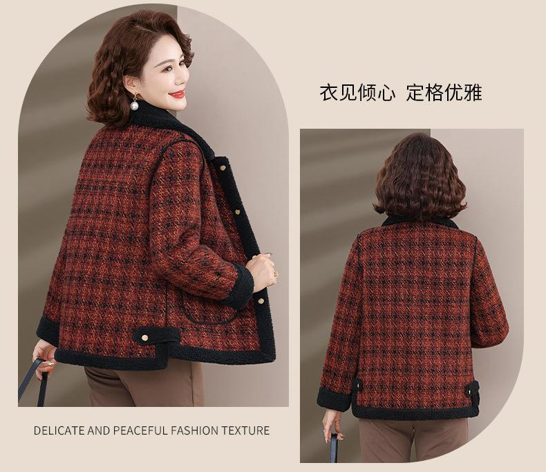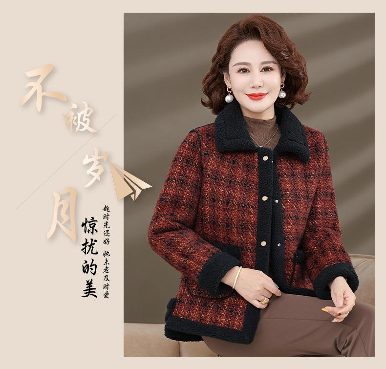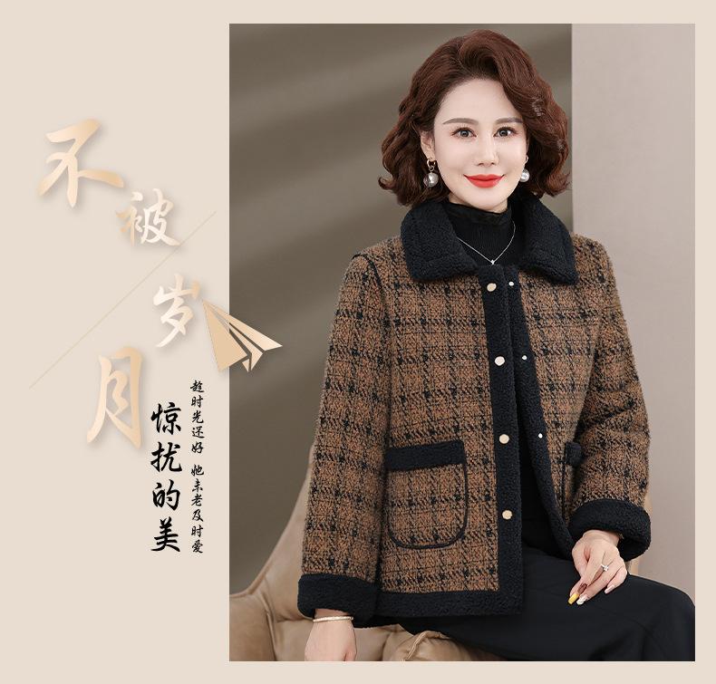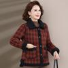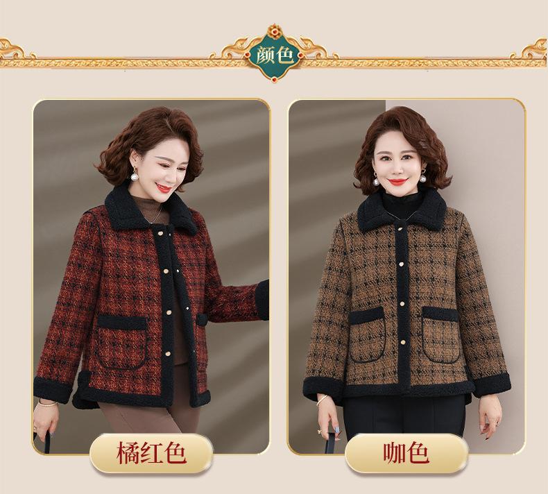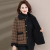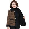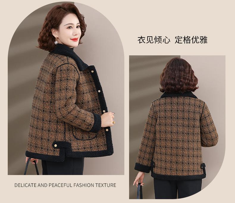 Abrigo de cachemir de visón con solapa y forro polar de invierno para madres, abrigo de lana a cuadros estilo occidental para mujeres de mediana edad y mayores, otoño e invierno.