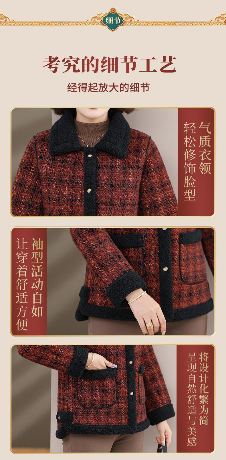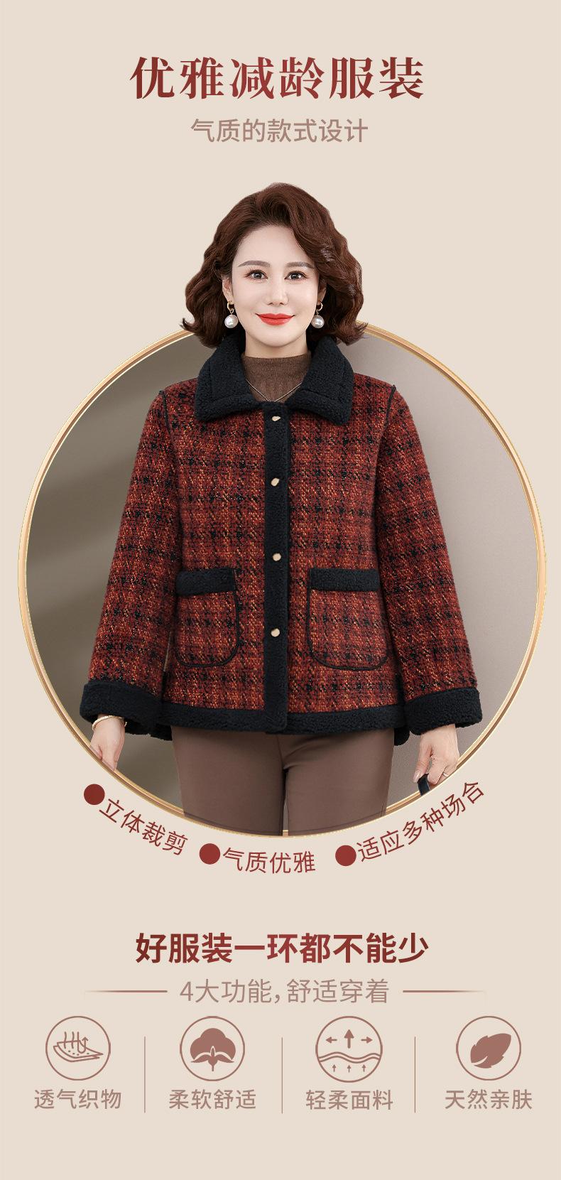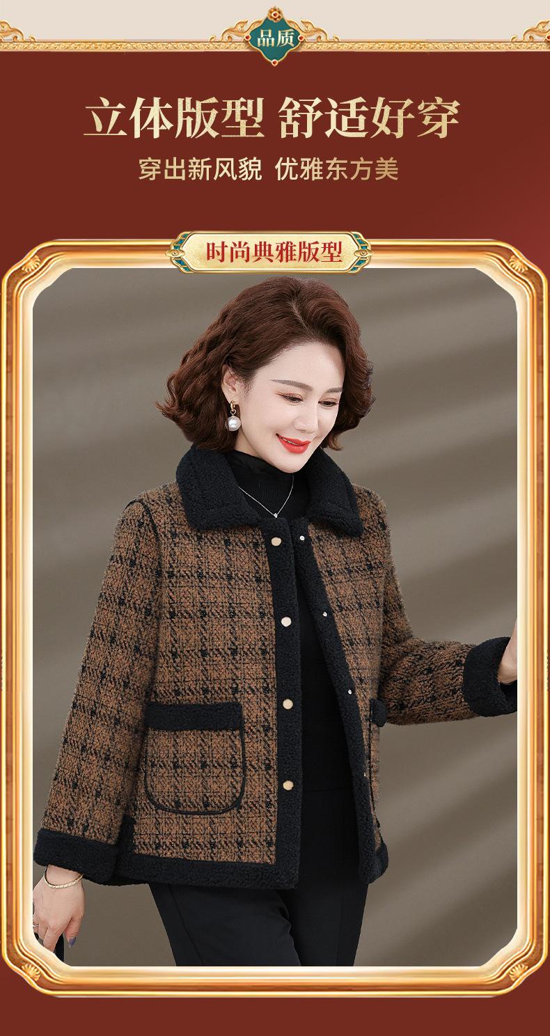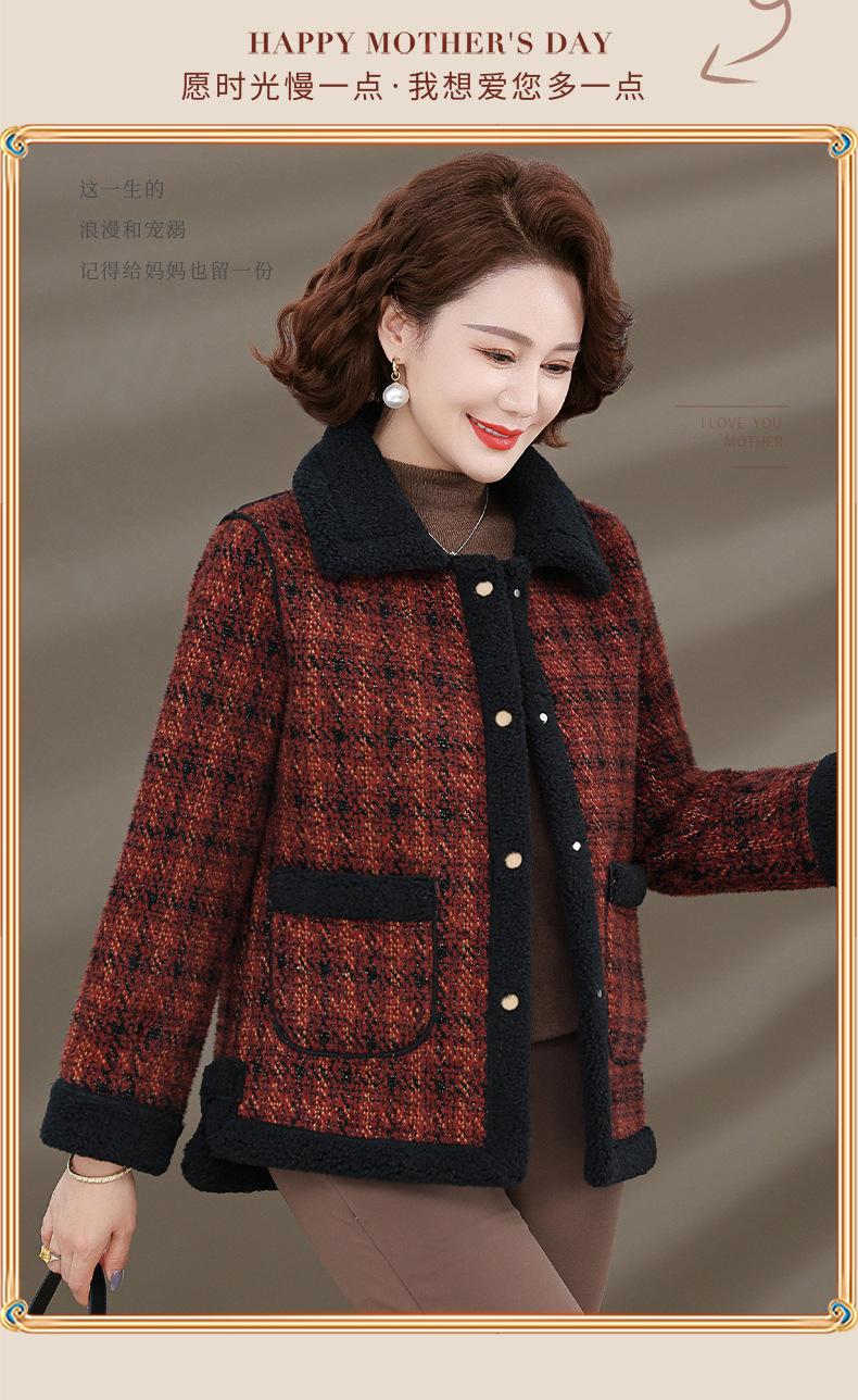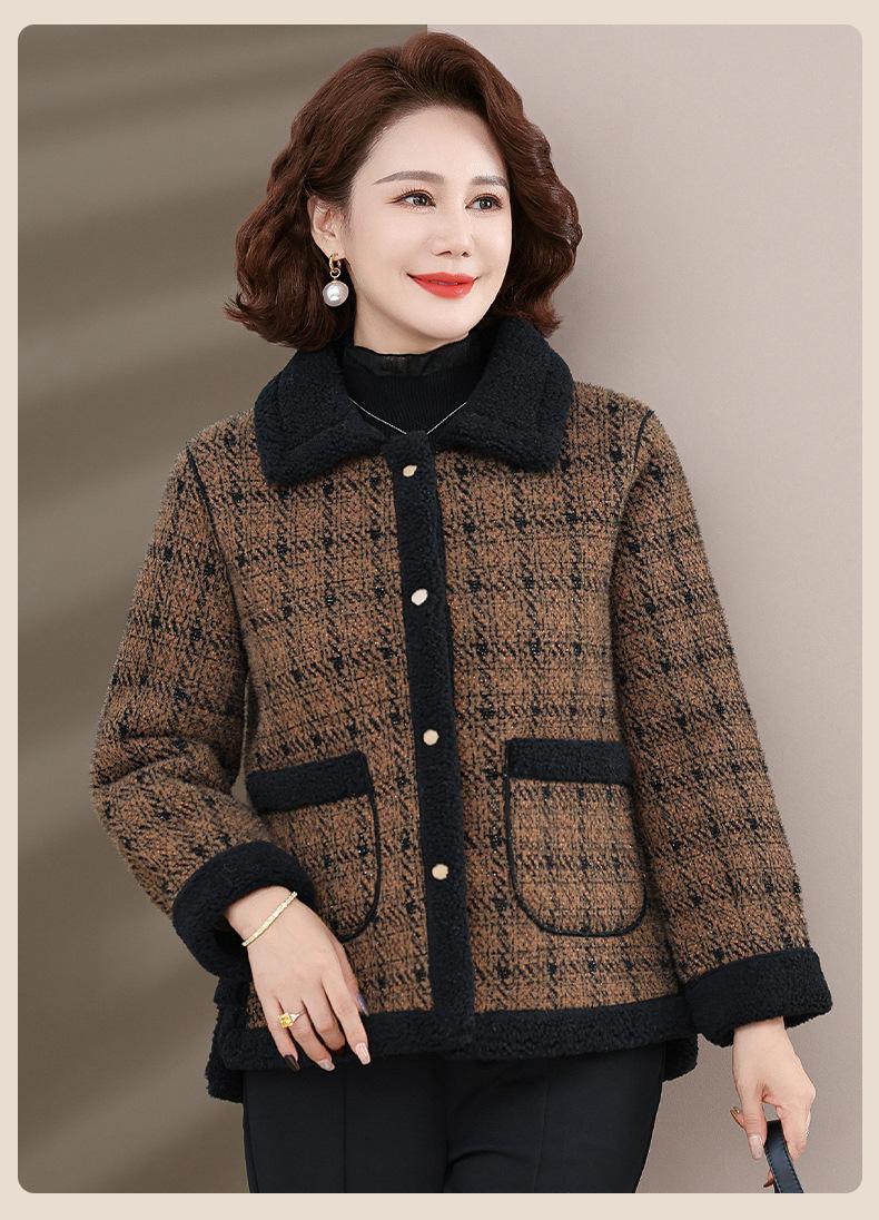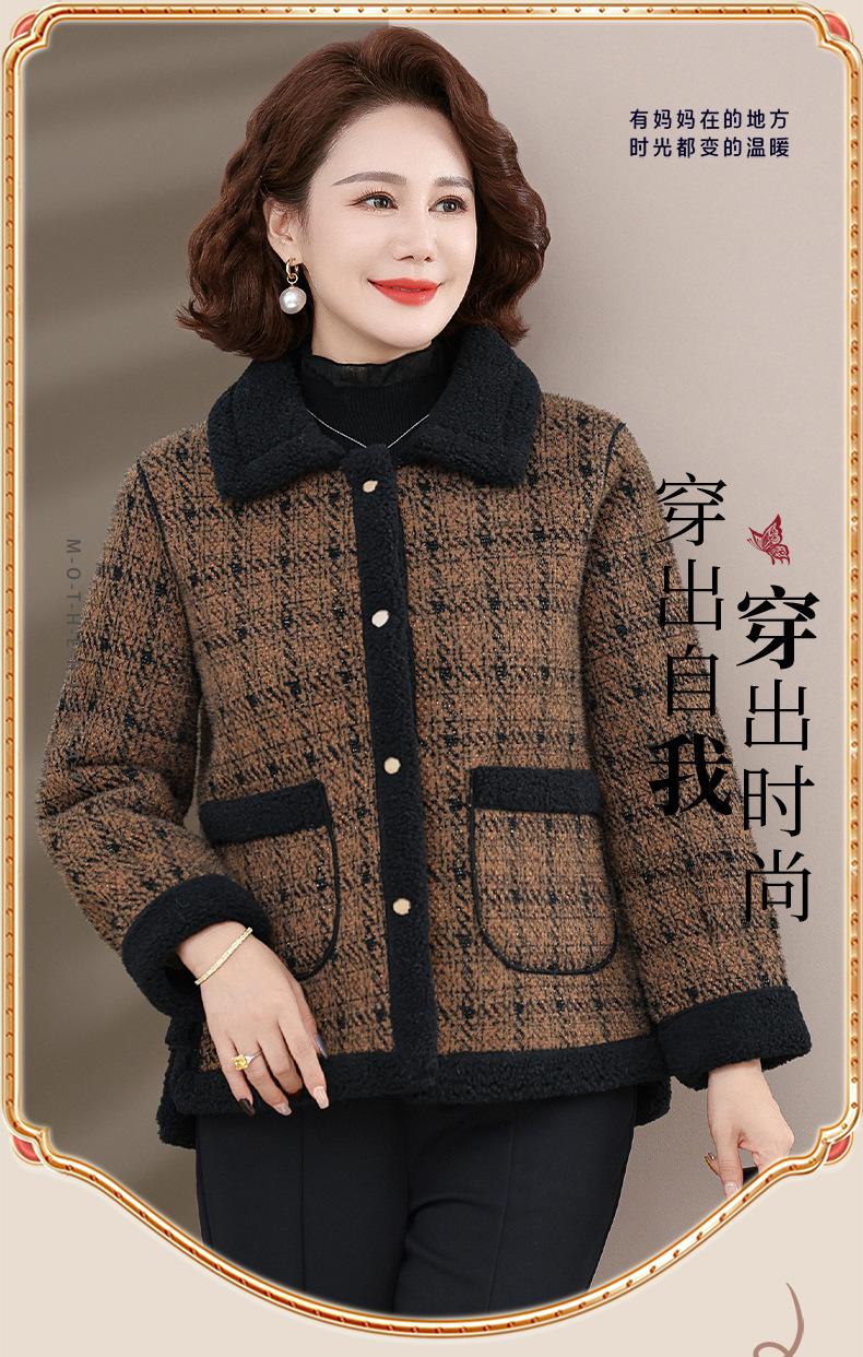 Abrigo de cachemir de visón con solapa y forro polar de invierno para madres, abrigo de lana a cuadros estilo occidental para mujeres de mediana edad y mayores, otoño e invierno.