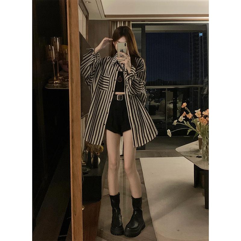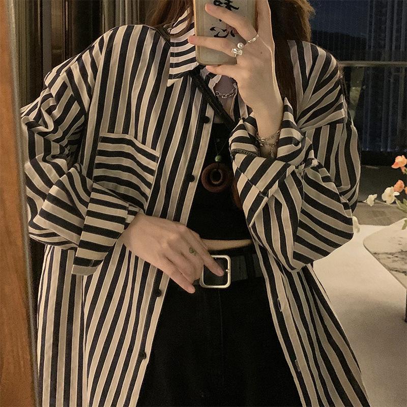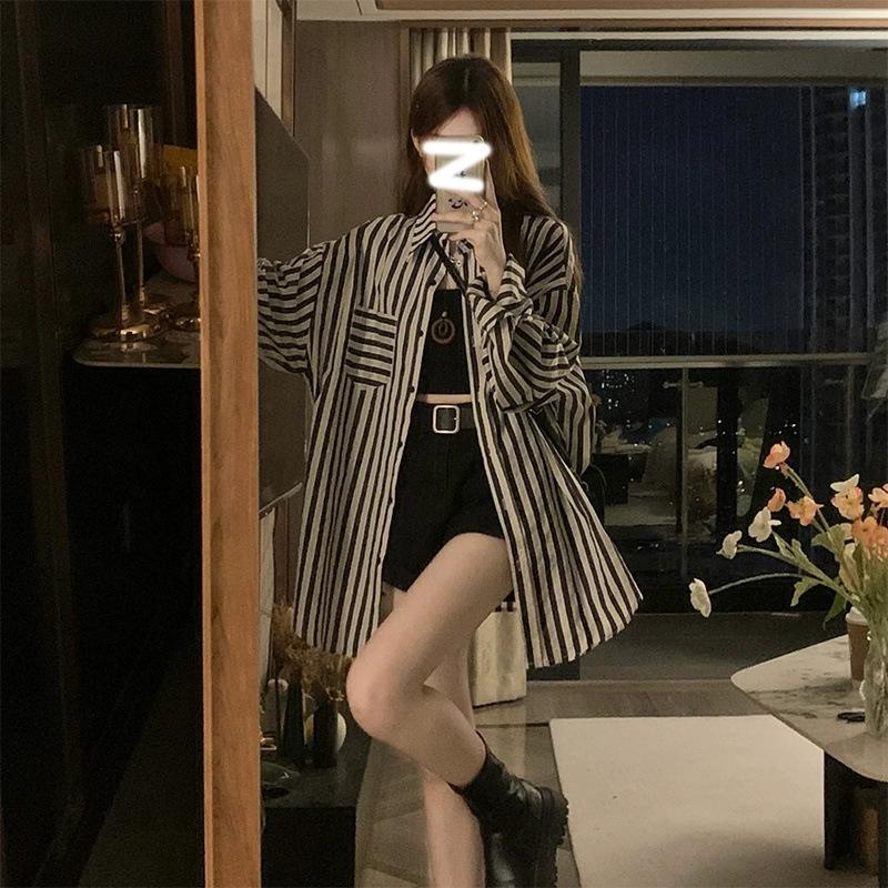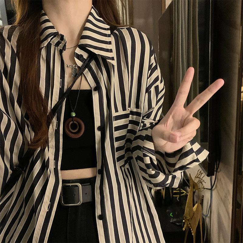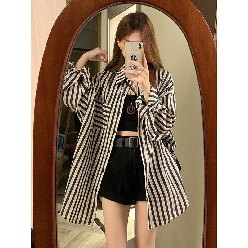 Camisa a rayas con protección solar para mujer, diseño nuevo de verano, estilo informal, holgado, de manga larga, estilo nicho, a la moda