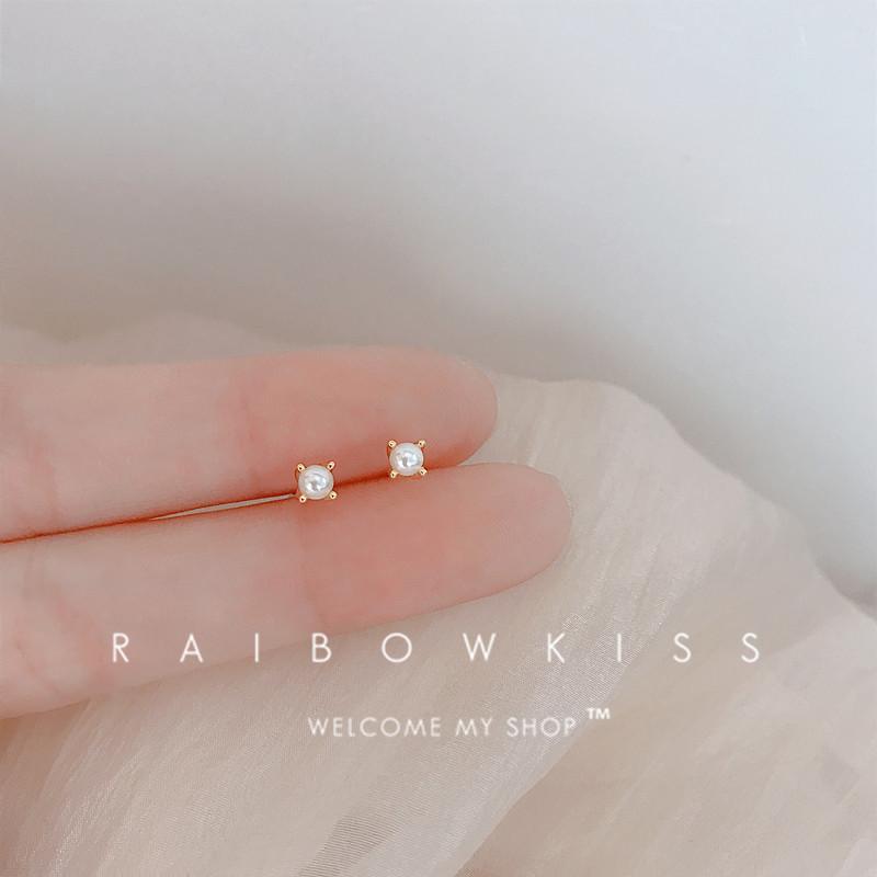 Pendientes de plata de ley 925 nuevos con forma de perla pequeña invisible de cuatro garras, estilo japonés, ligeros, de lujo, exquisito temperamento, para niña
