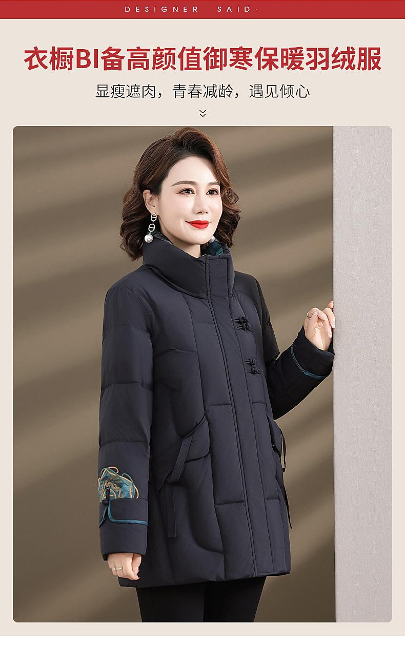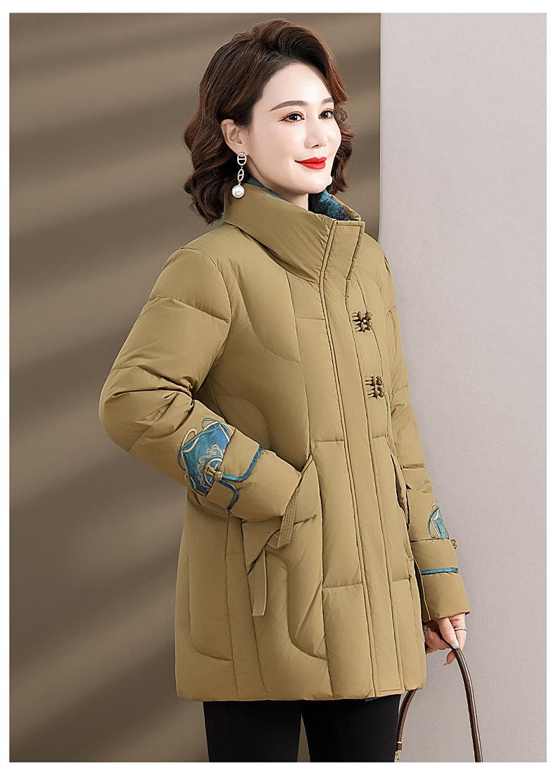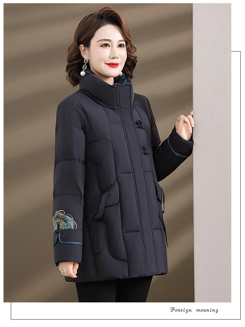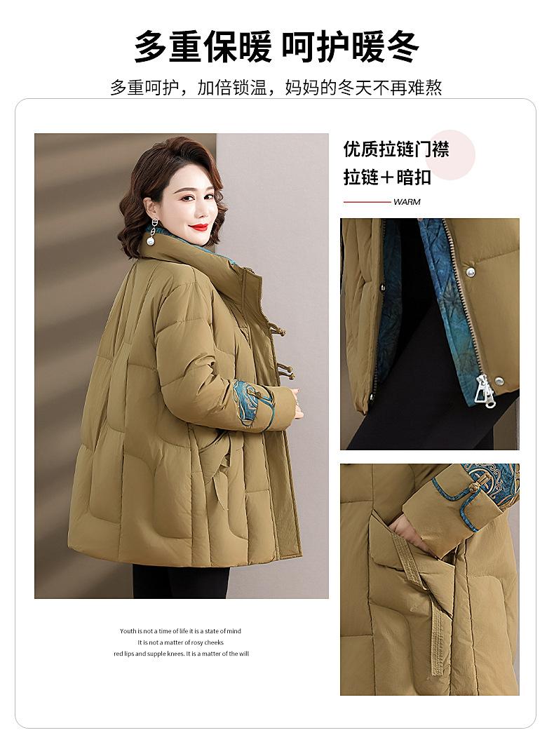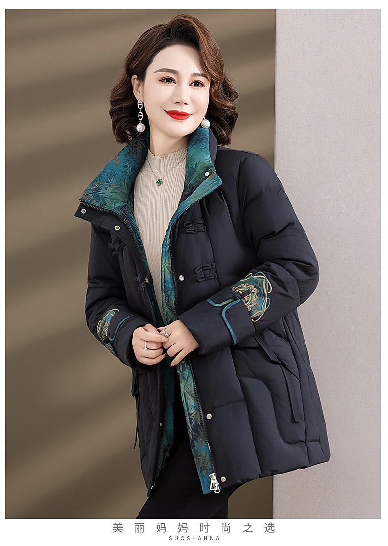 Ropa de otoño e invierno para mamá Nuevo estilo chino estilo nacional chamarra de plumón para mujer de mediana edad de 50 años chamarra de plumón de pato de longitud media de invierno con hebilla