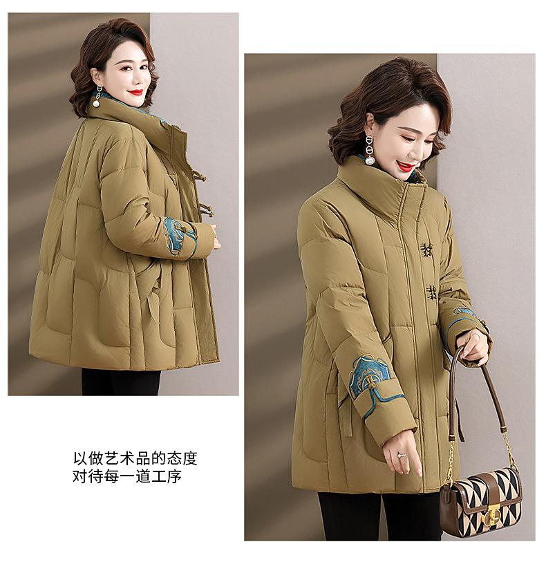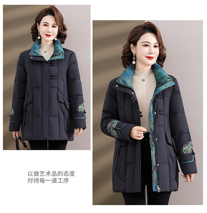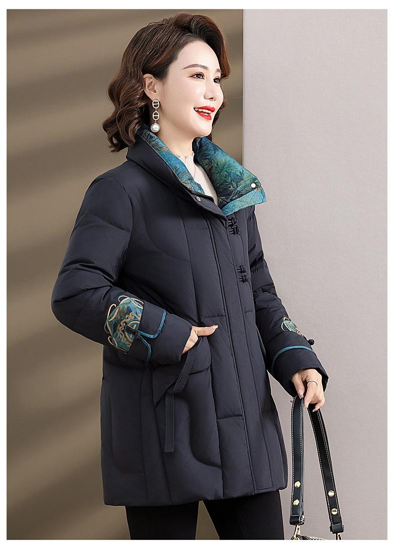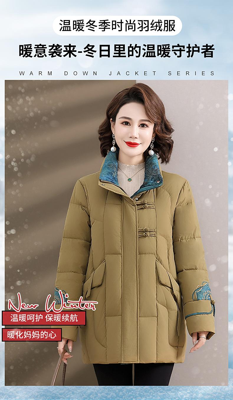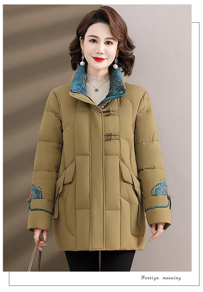 Ropa de otoño e invierno para mamá Nuevo estilo chino estilo nacional chamarra de plumón para mujer de mediana edad de 50 años chamarra de plumón de pato de longitud media de invierno con hebilla