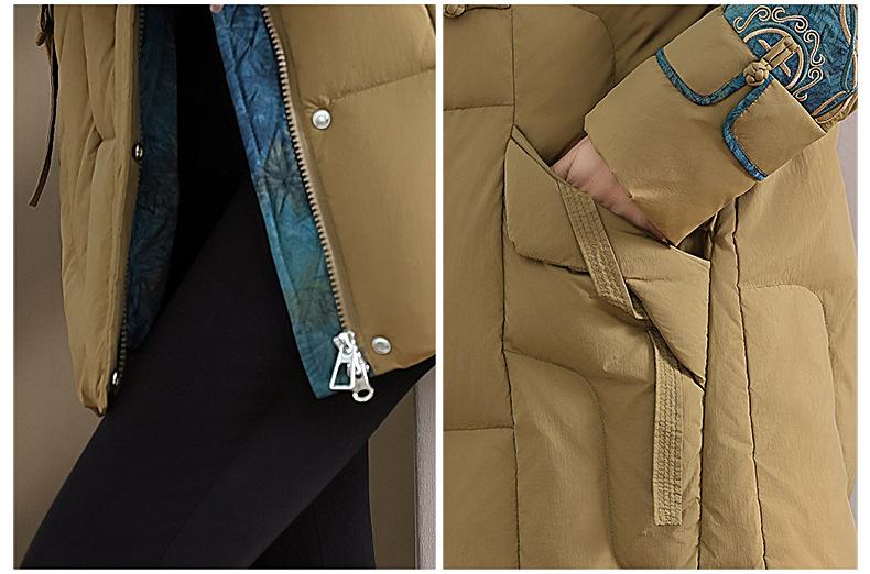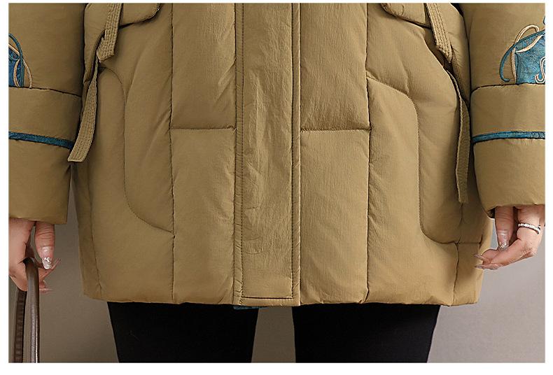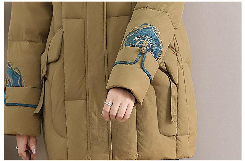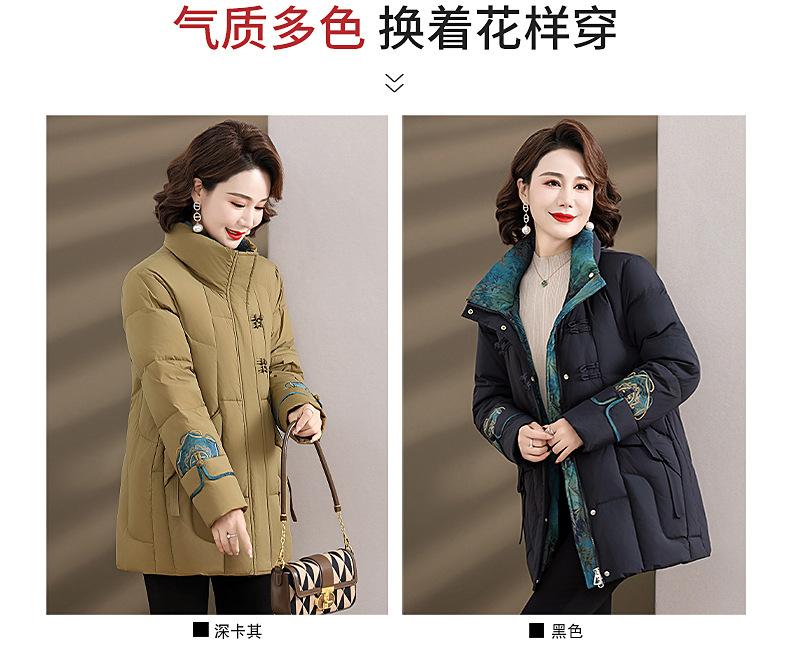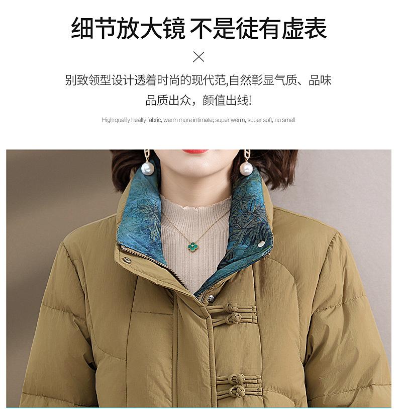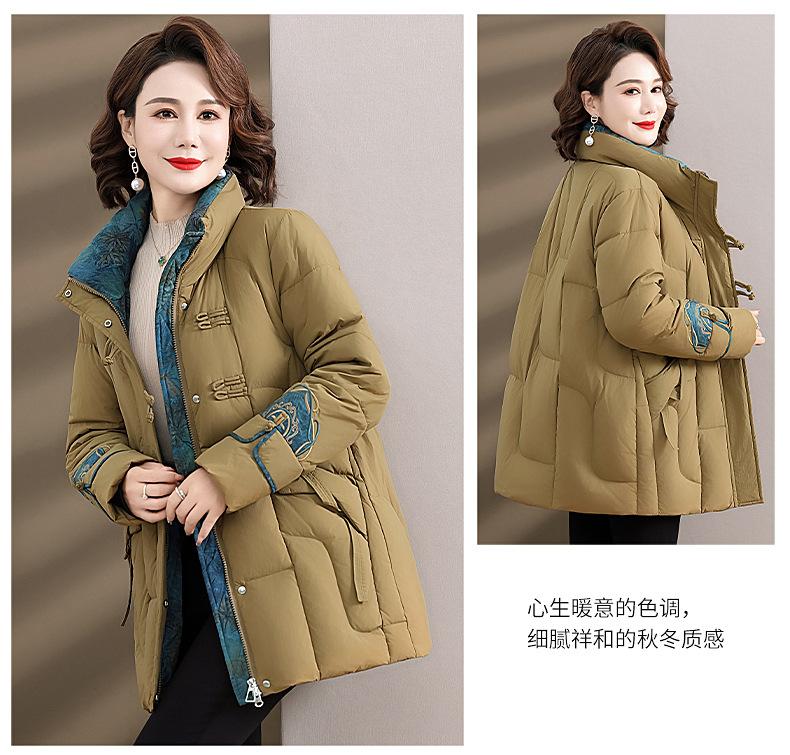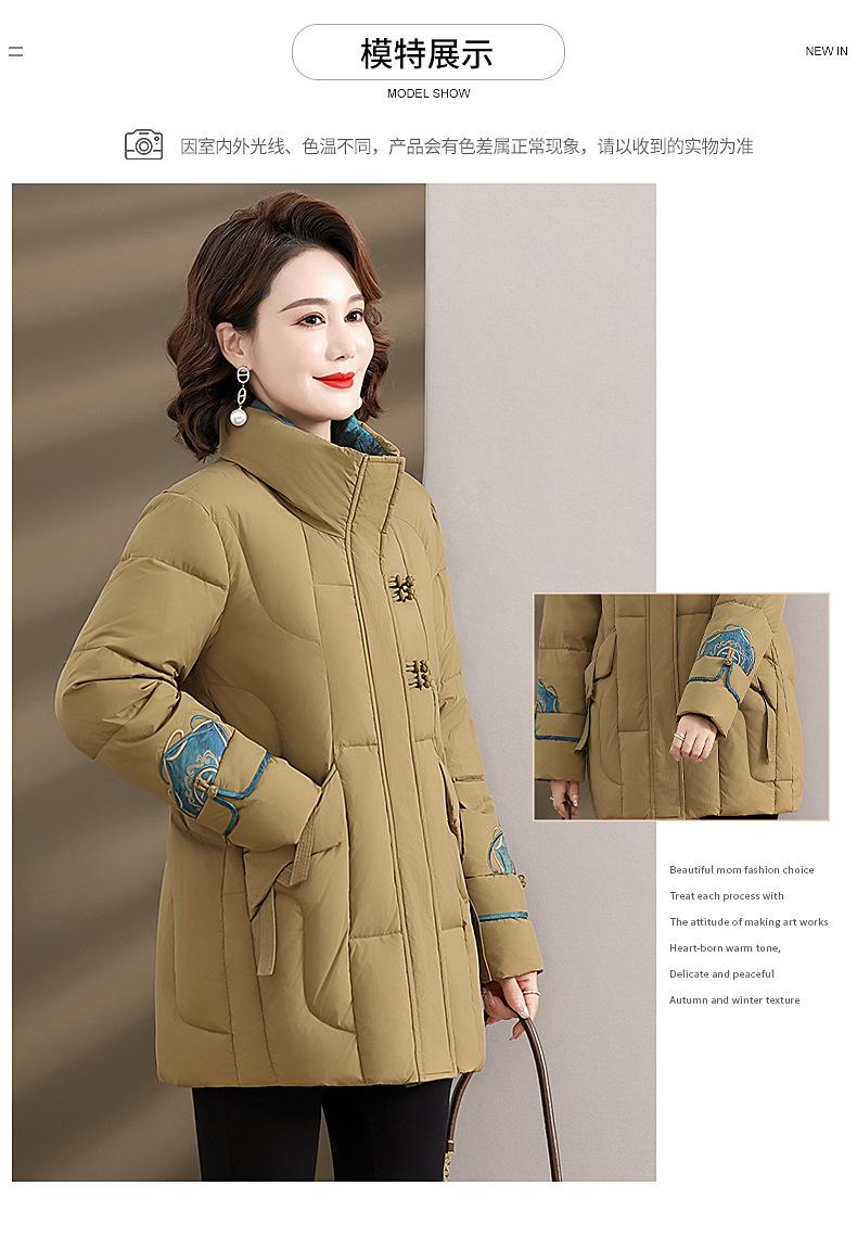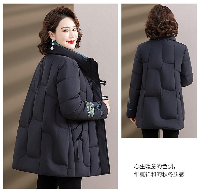 Ropa de otoño e invierno para mamá Nuevo estilo chino estilo nacional chamarra de plumón para mujer de mediana edad de 50 años chamarra de plumón de pato de longitud media de invierno con hebilla