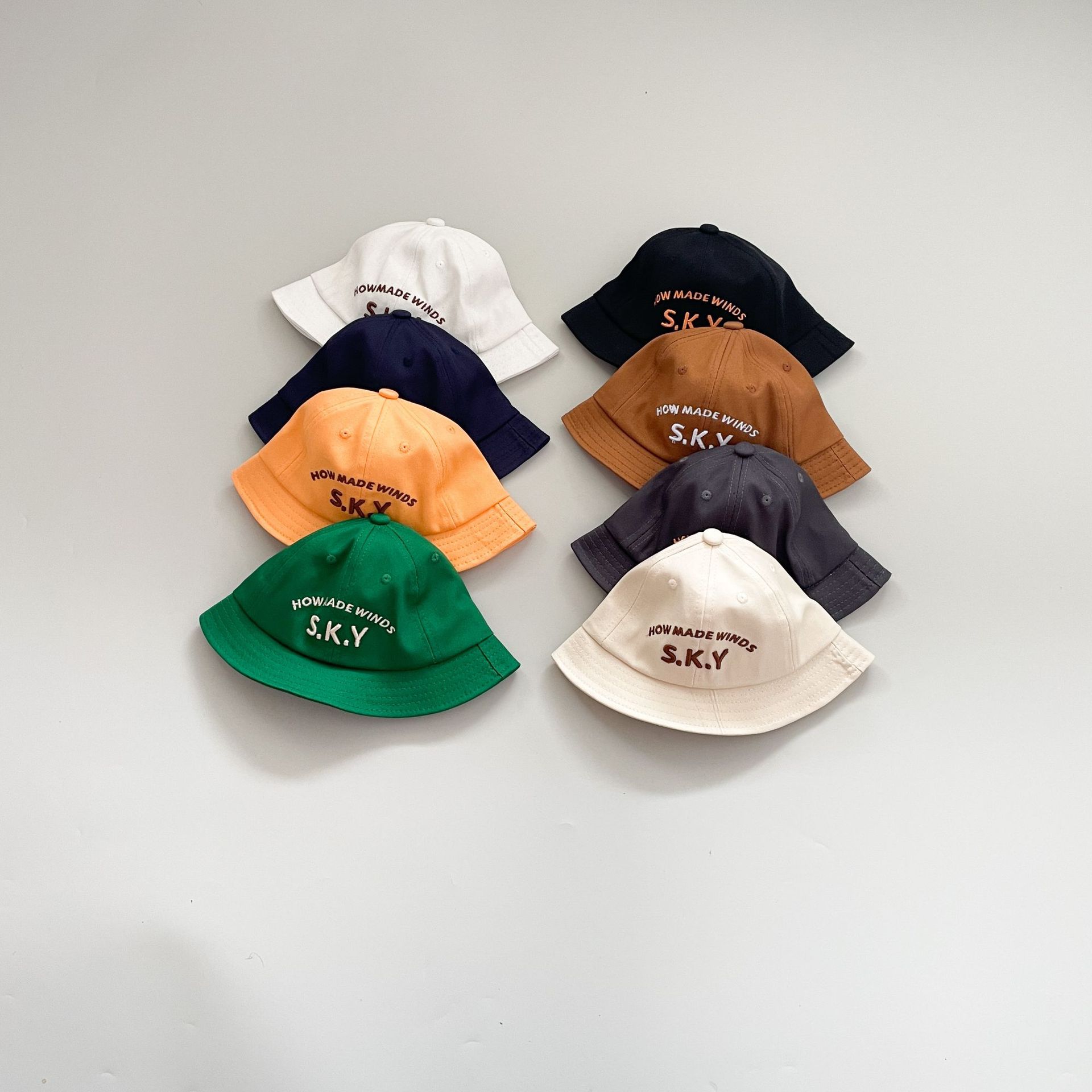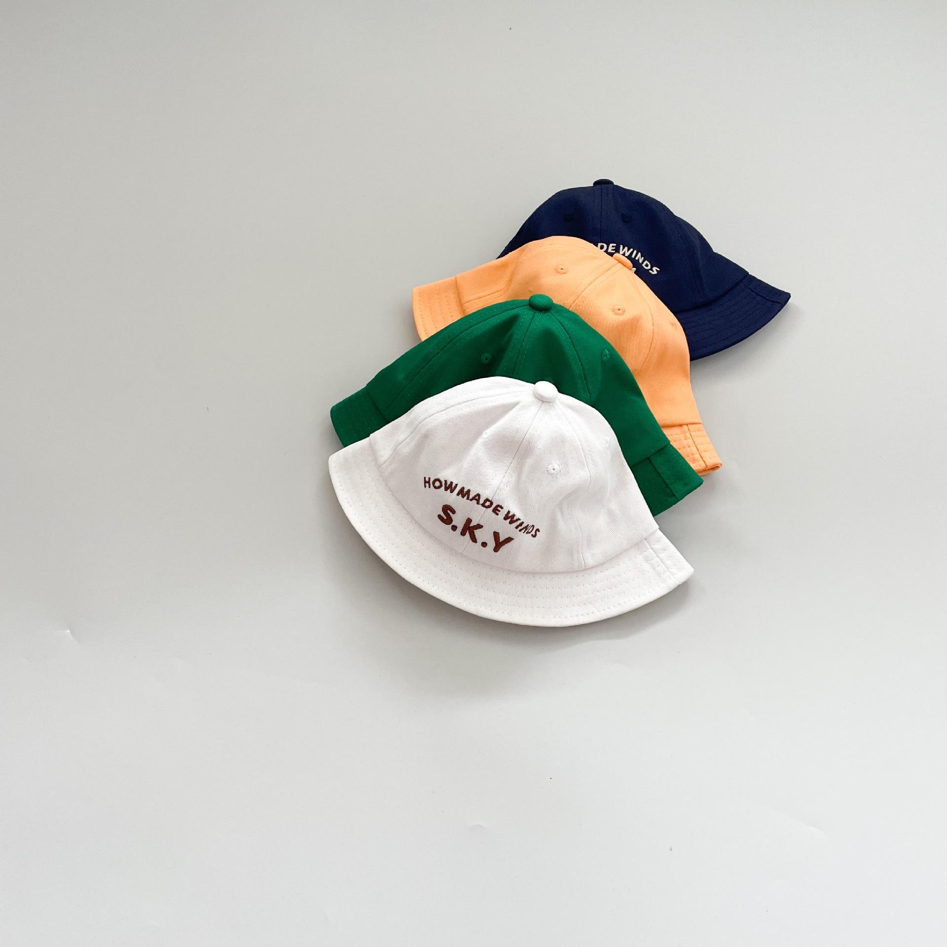 Sombrero de pescador para niños, protección solar de primavera, sombrero grande para niños y niñas, sombrero de ala ancha de algodón con letras coreanas.
