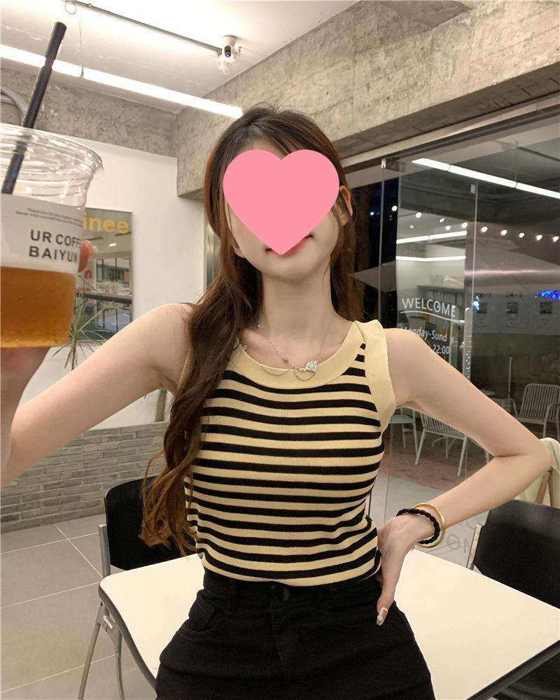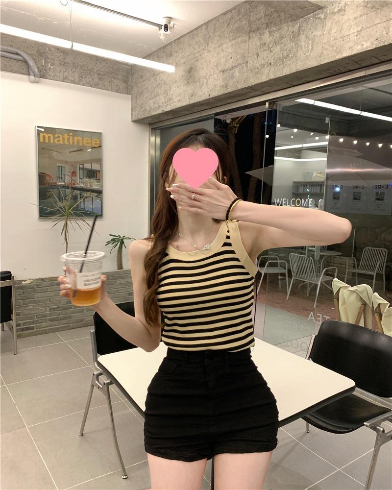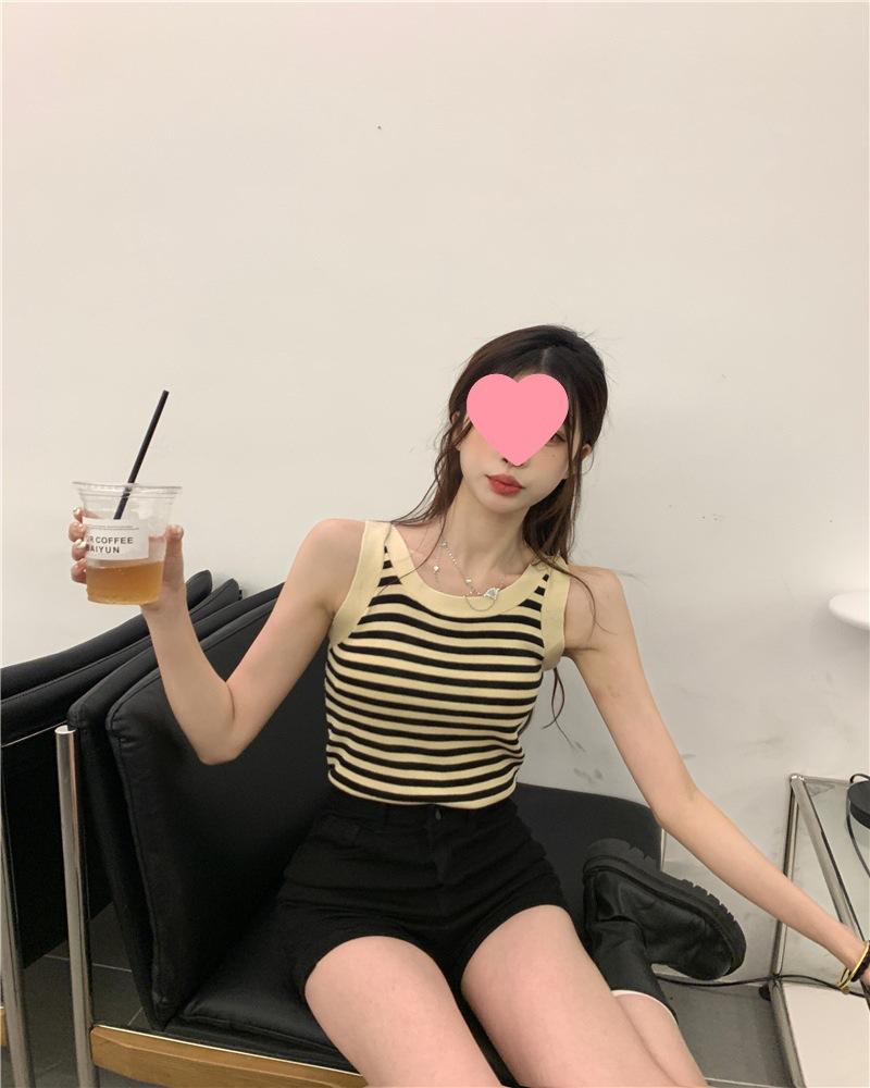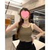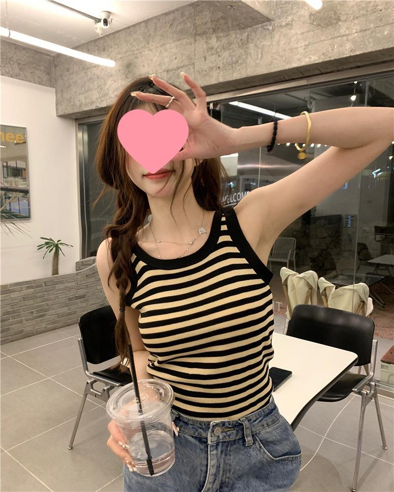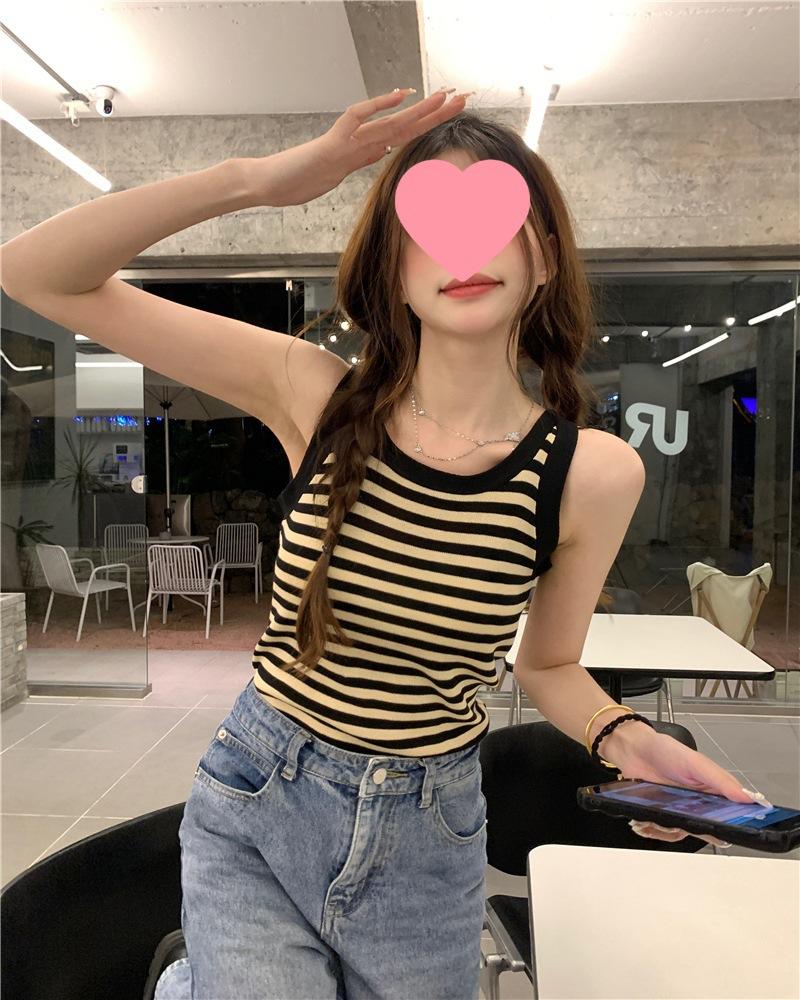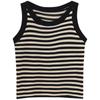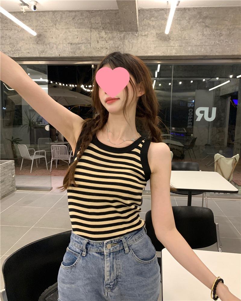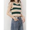 Chaleco de punto a rayas retro de primavera y verano para mujer, prenda exterior básica, sin mangas, diseño adelgazante, elegante, prenda exterior corta.