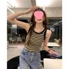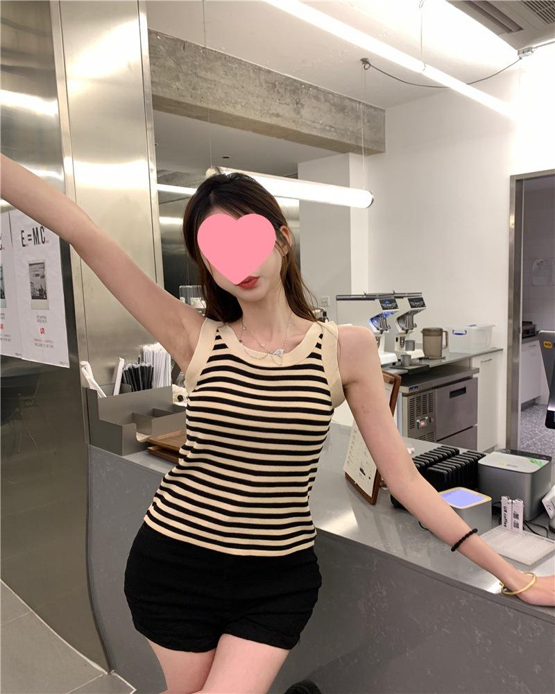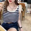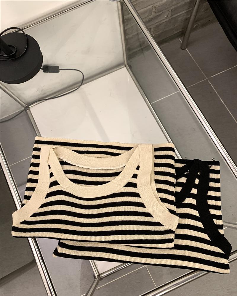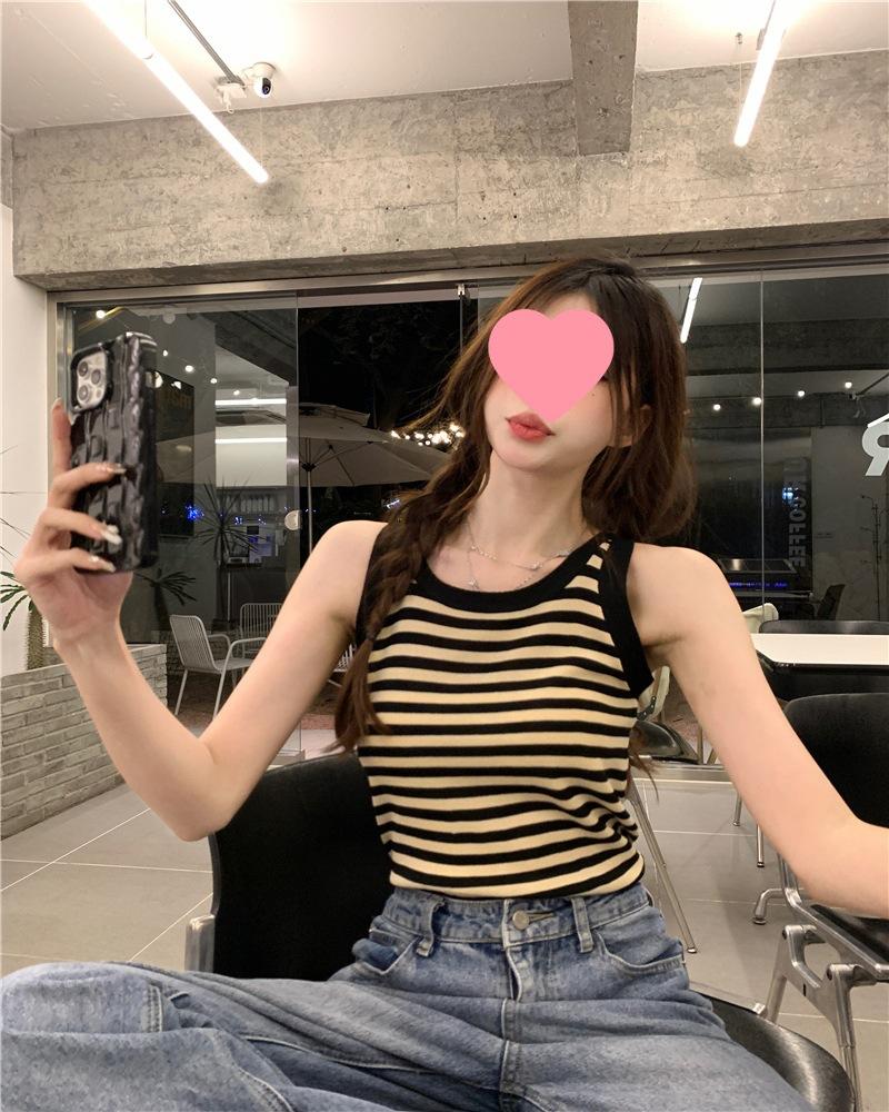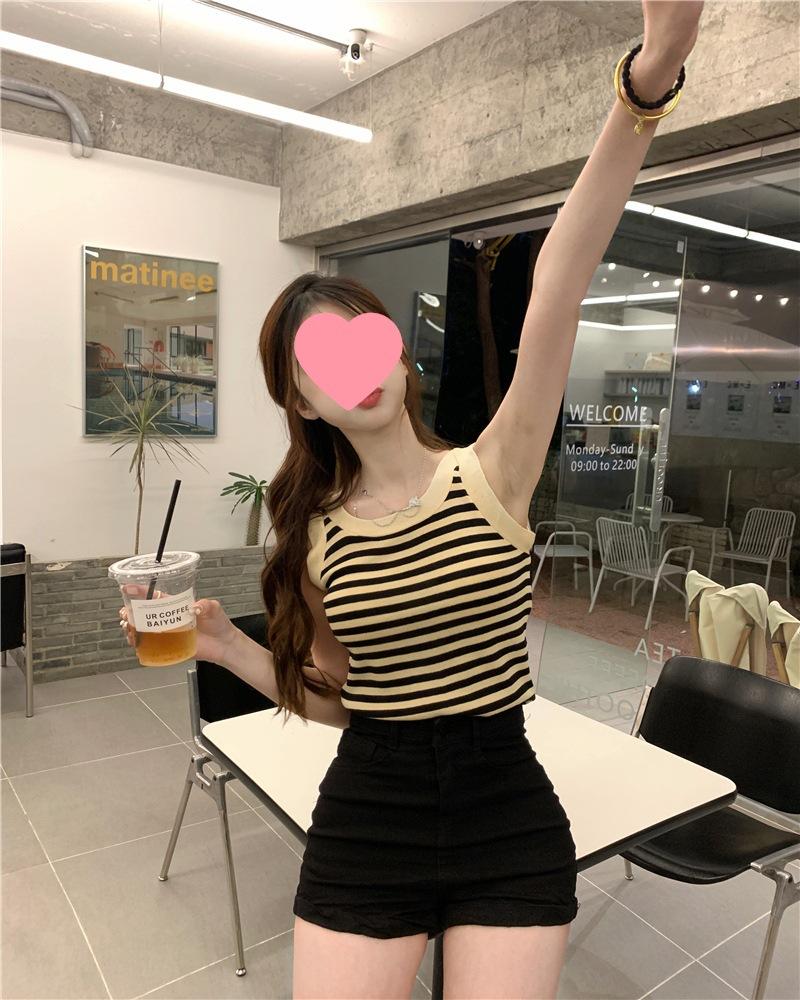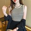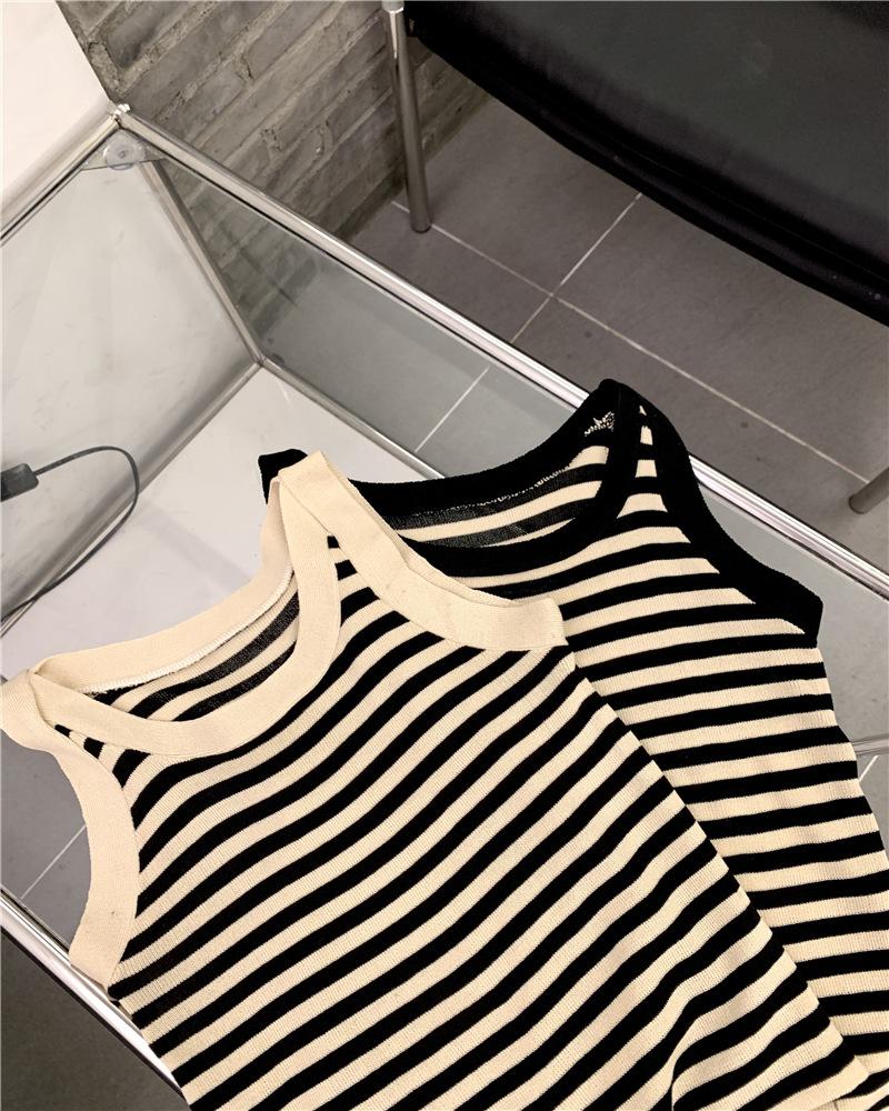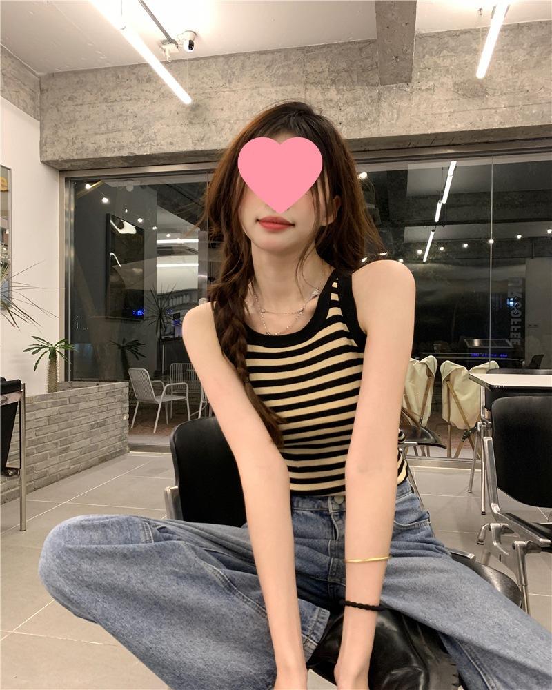 Chaleco de punto a rayas retro de primavera y verano para mujer, prenda exterior básica, sin mangas, diseño adelgazante, elegante, prenda exterior corta.