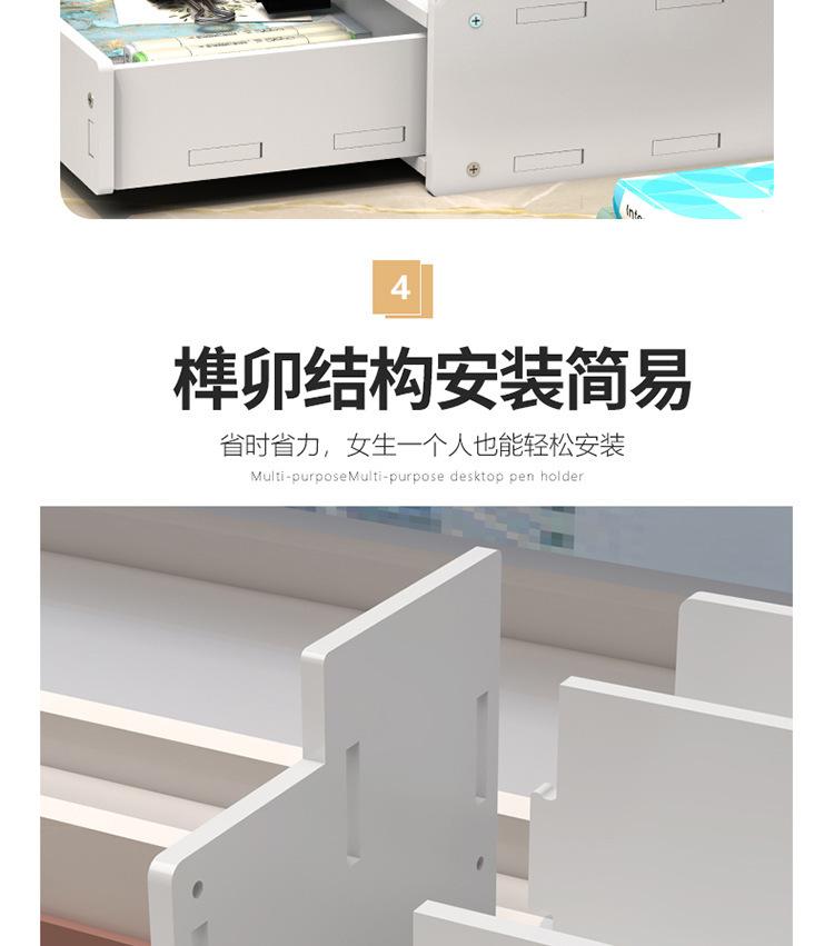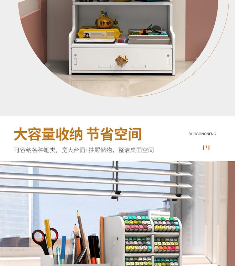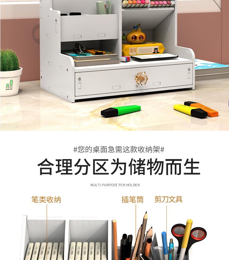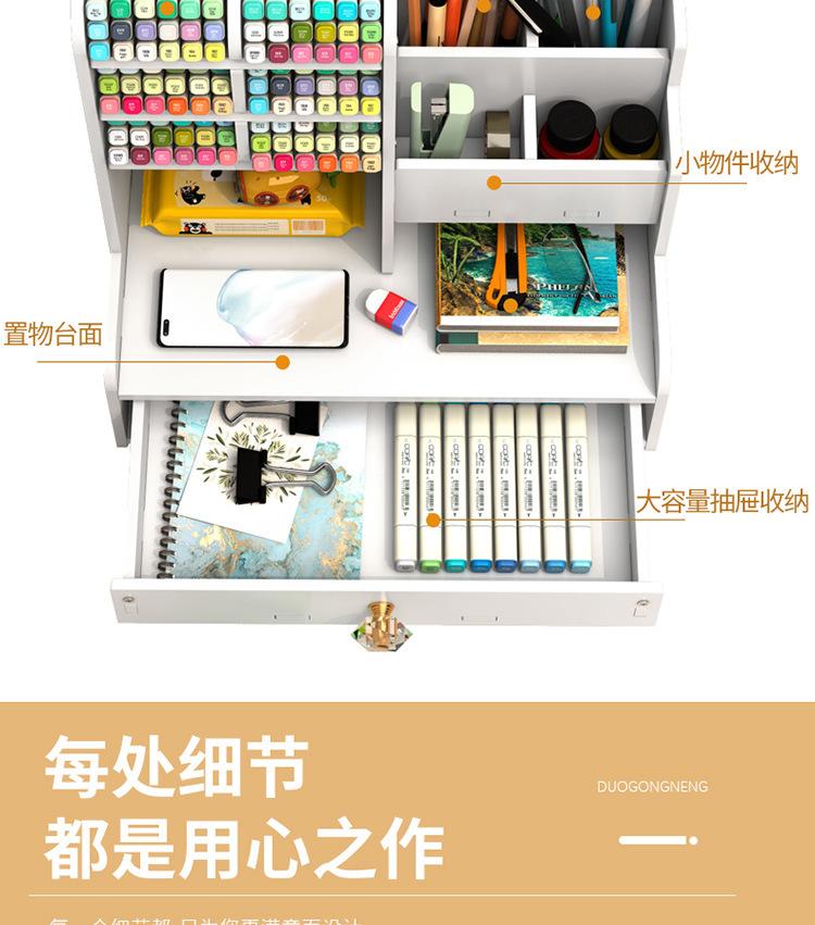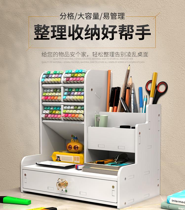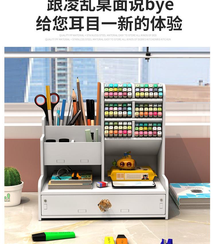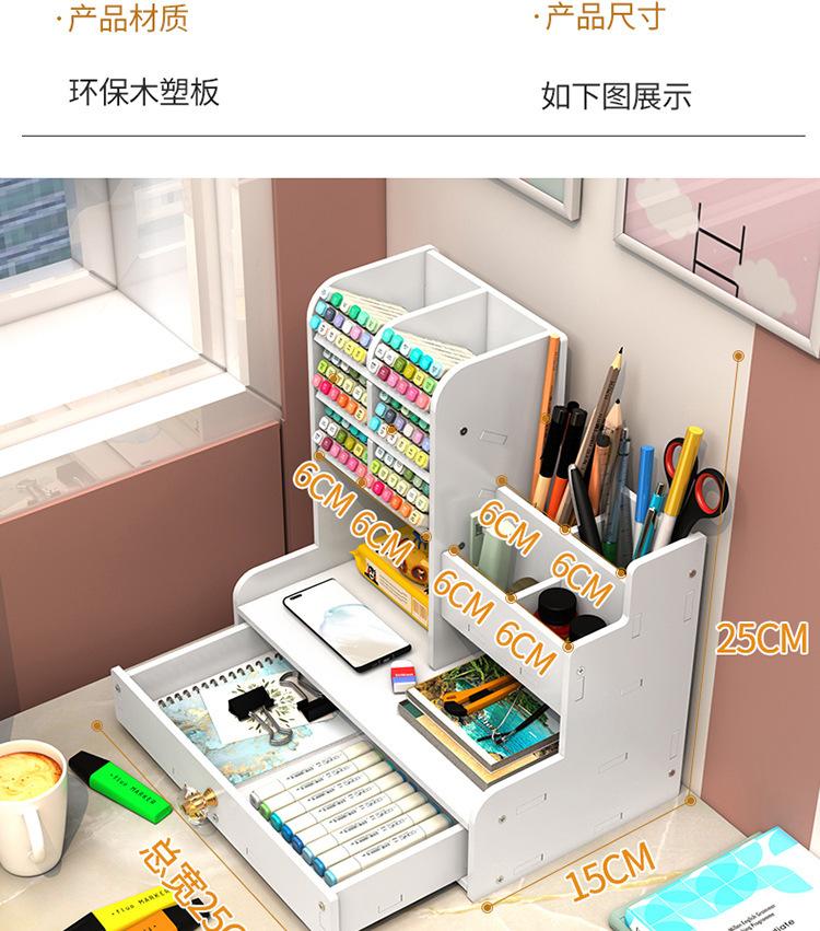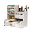 Caja de papelería multifuncional con cajón y estante multirejilla, cubo oblicuo para bolígrafos, caja de almacenamiento para rotuladores de escritorio para niños