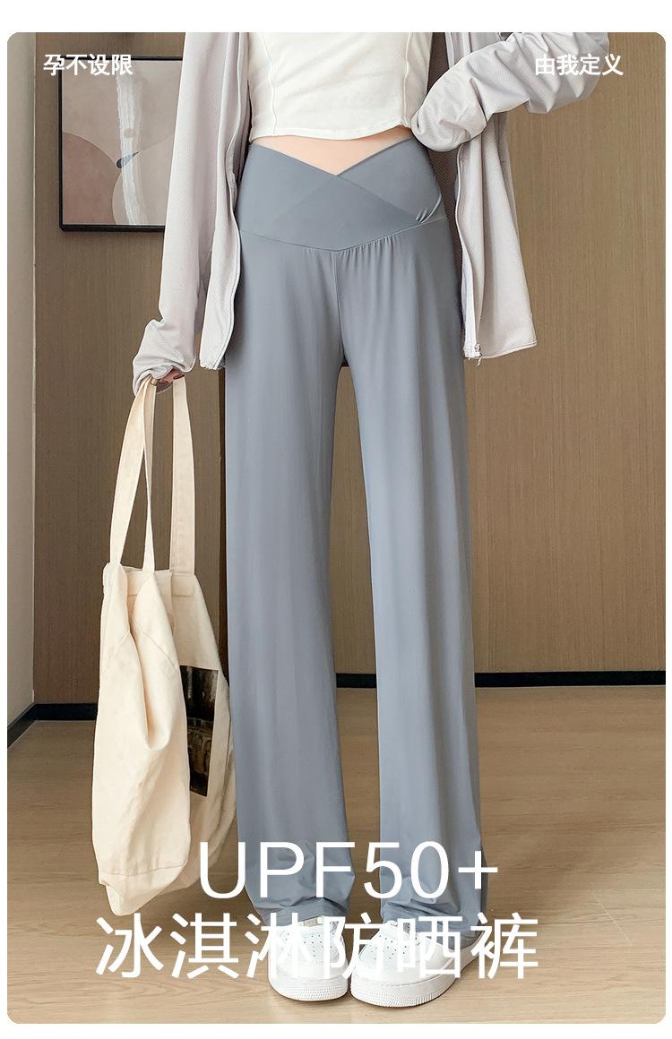 Pantalones de Mujer Embarazada Verano Delgados Ropa Exterior Cintura Baja Pantalones de Pierna Ancha para Mujer Embarazada Primavera y Otoño Pantalones de Protección Solar Ropa de Mujer Embarazada