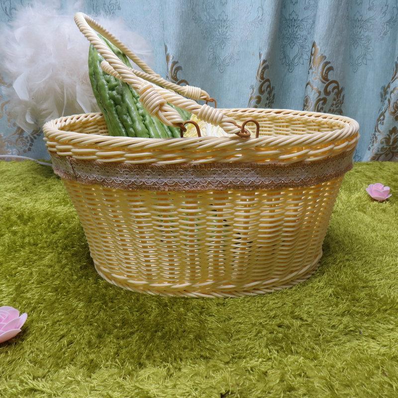 Cesta de Almacenamiento de Fruta Tejida de Ratán Almacenamiento a Mano Ratán Tejido de Imitación Cesta de Almacenamiento Cesta de Exhibición de Fruta Pan de Supermercado