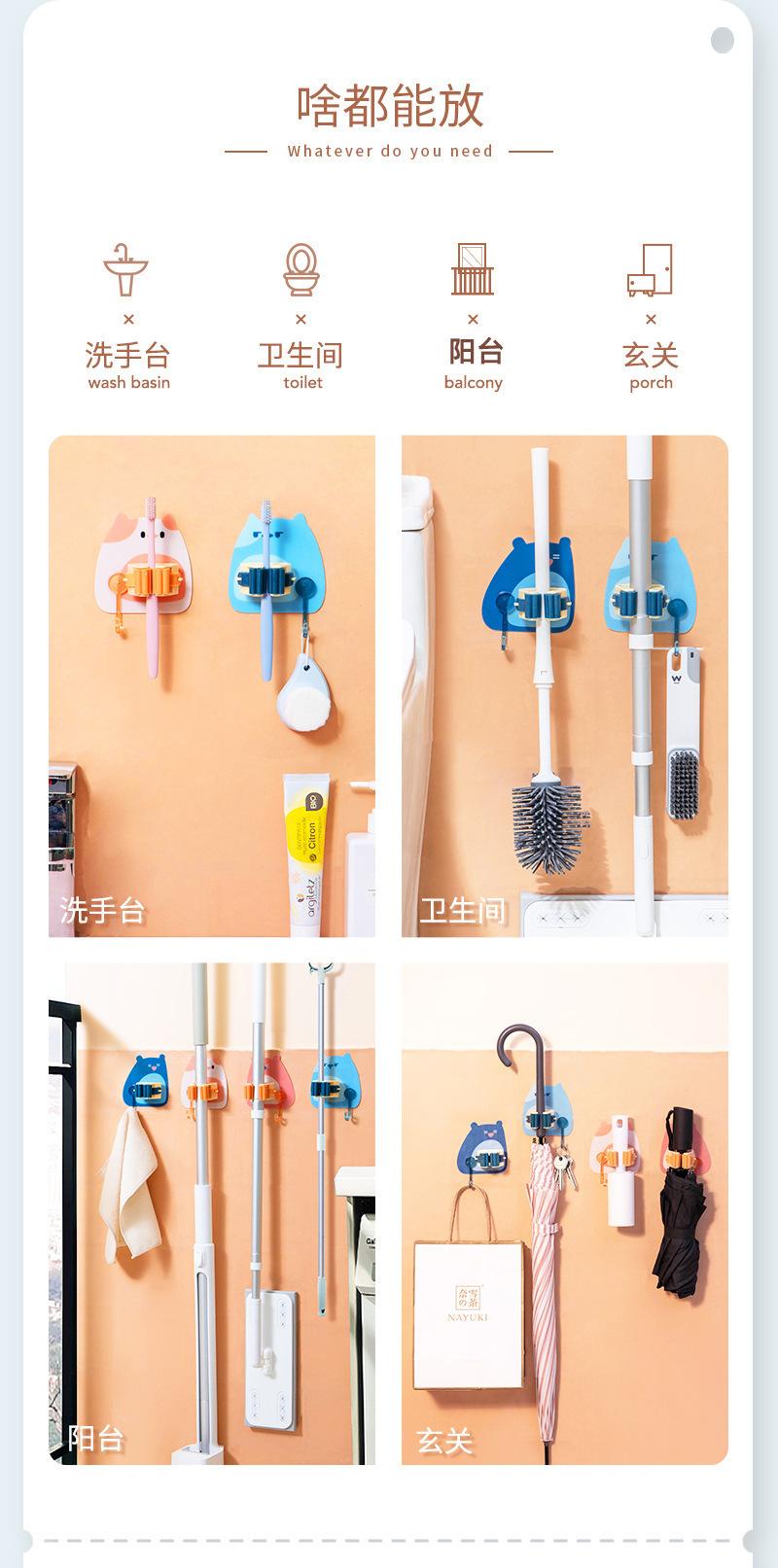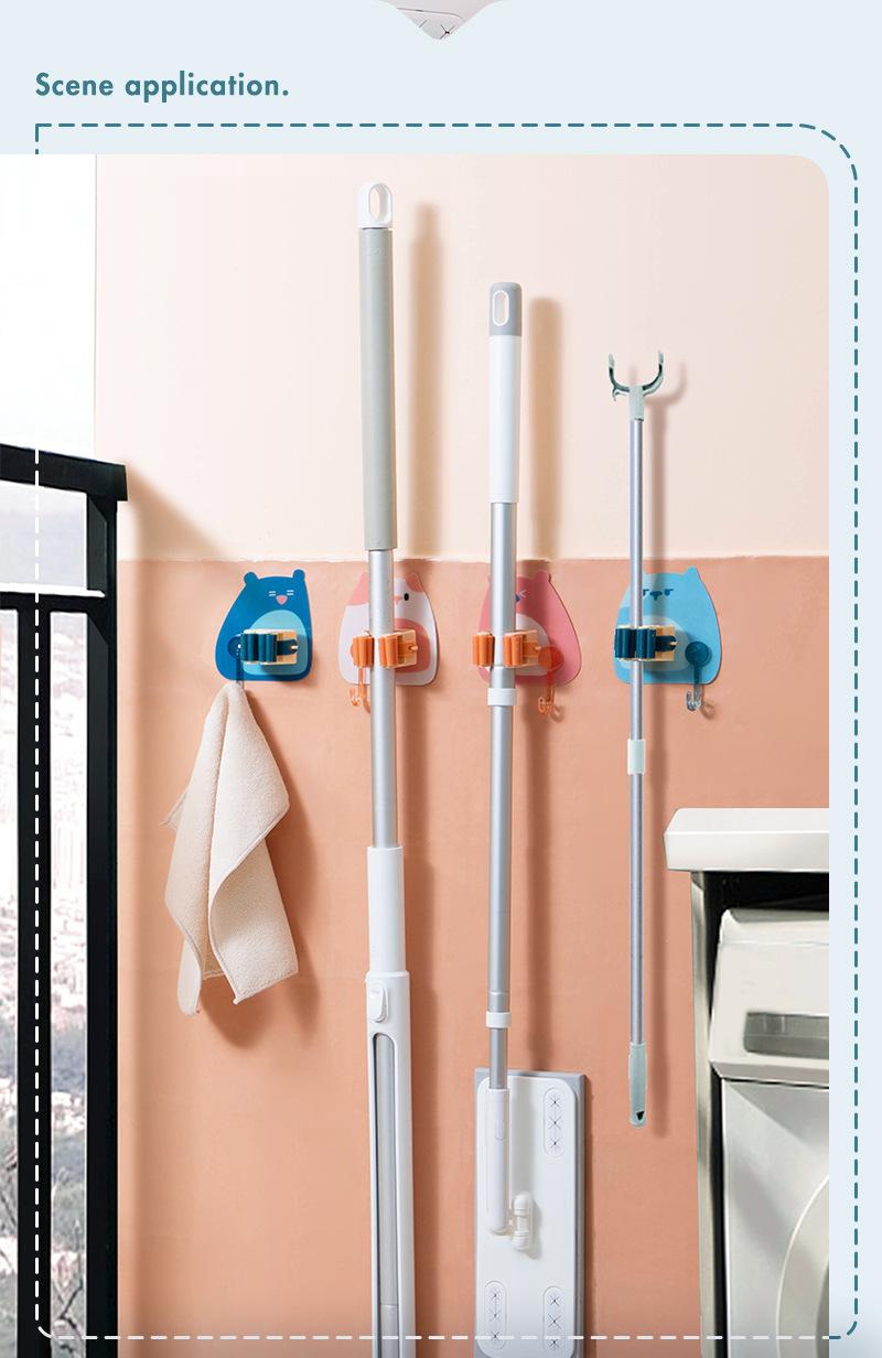Nuevo gancho clip para trapeador montado en pared, fuerte, sin costuras, colgador para trapeador gratis, gancho de pared para baño, inodoro, venta al por mayor
