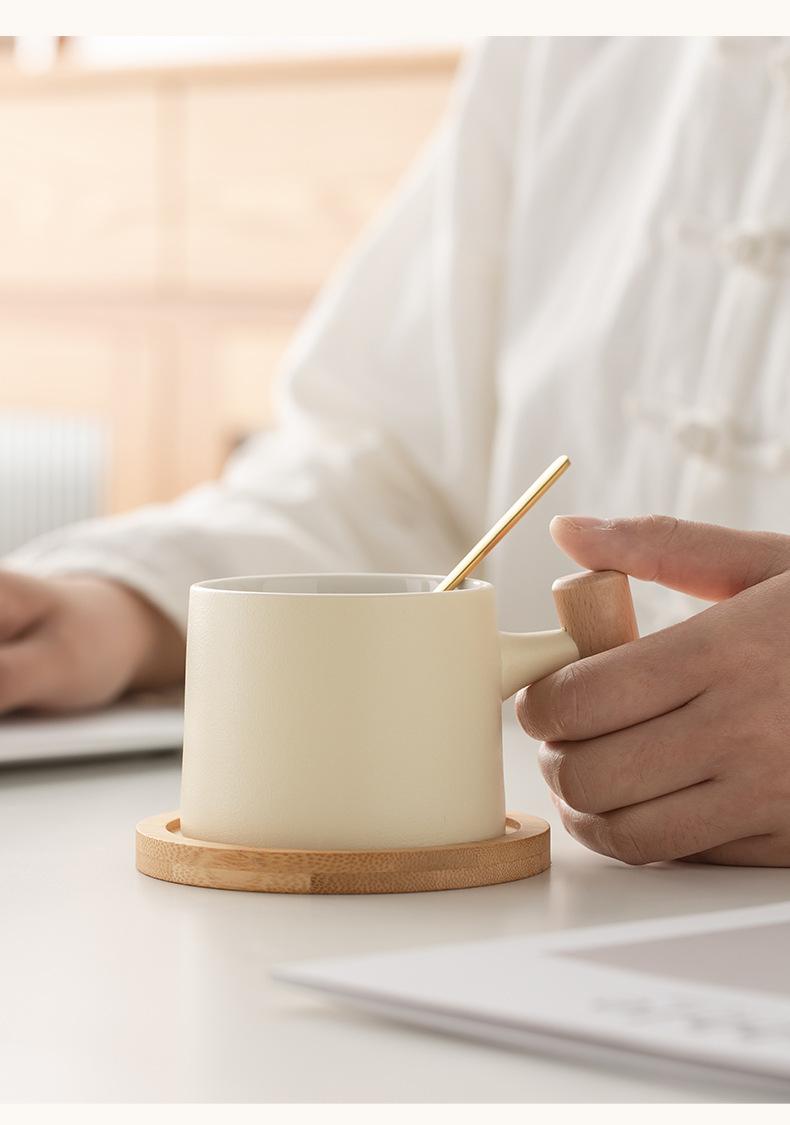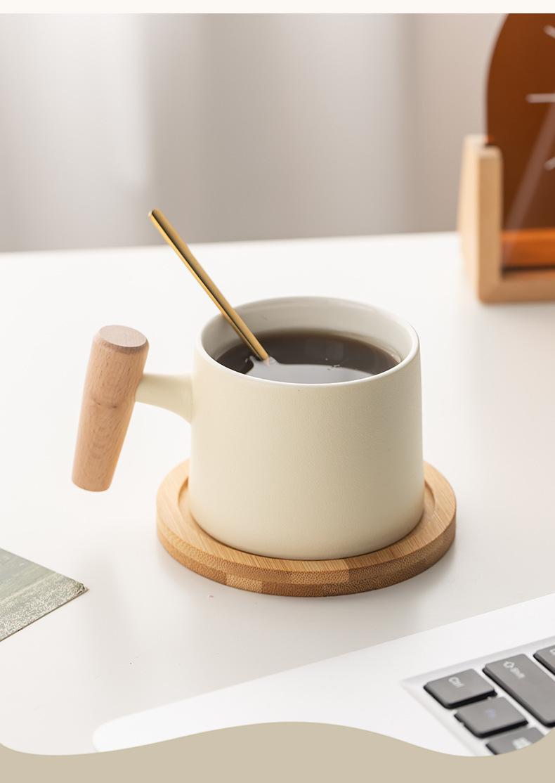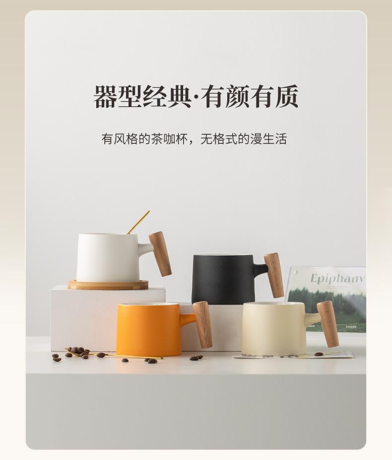Beige wooden handle tea cup, Orange wooden handle tea cup, White wooden handle tea cup, Black wooden handle te...