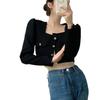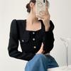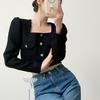 2025 Nuevo Estilo Temperamento Pequeño Delgado Más Fácil de Combinar Francés Casual Cuello Cuadrado Manga Larga Negro Chaqueta Corta Pequeña Fragancia para Mujer