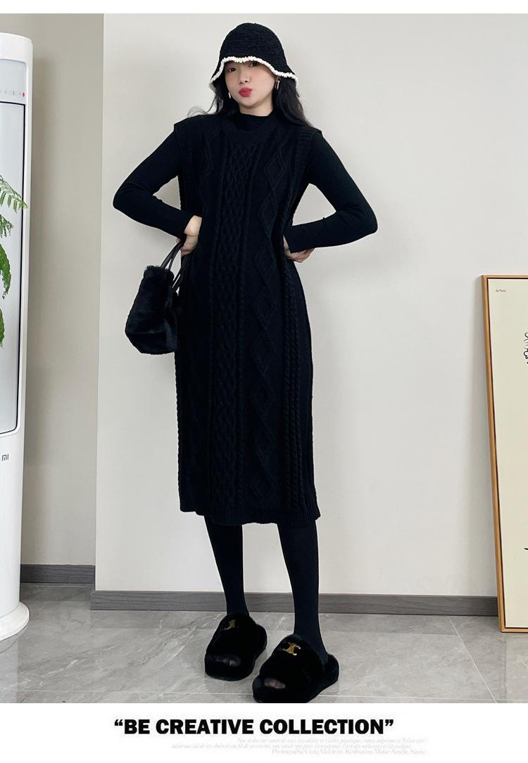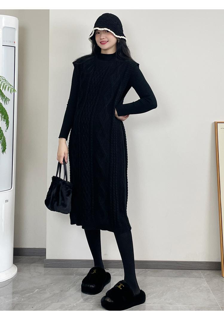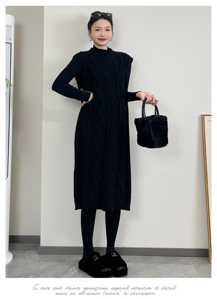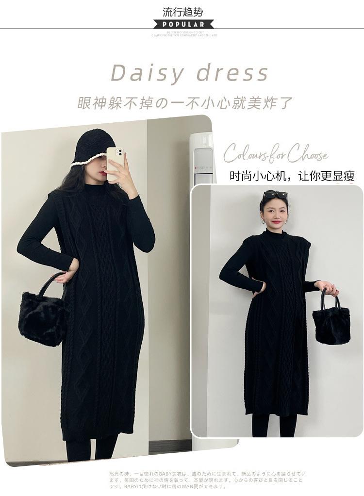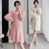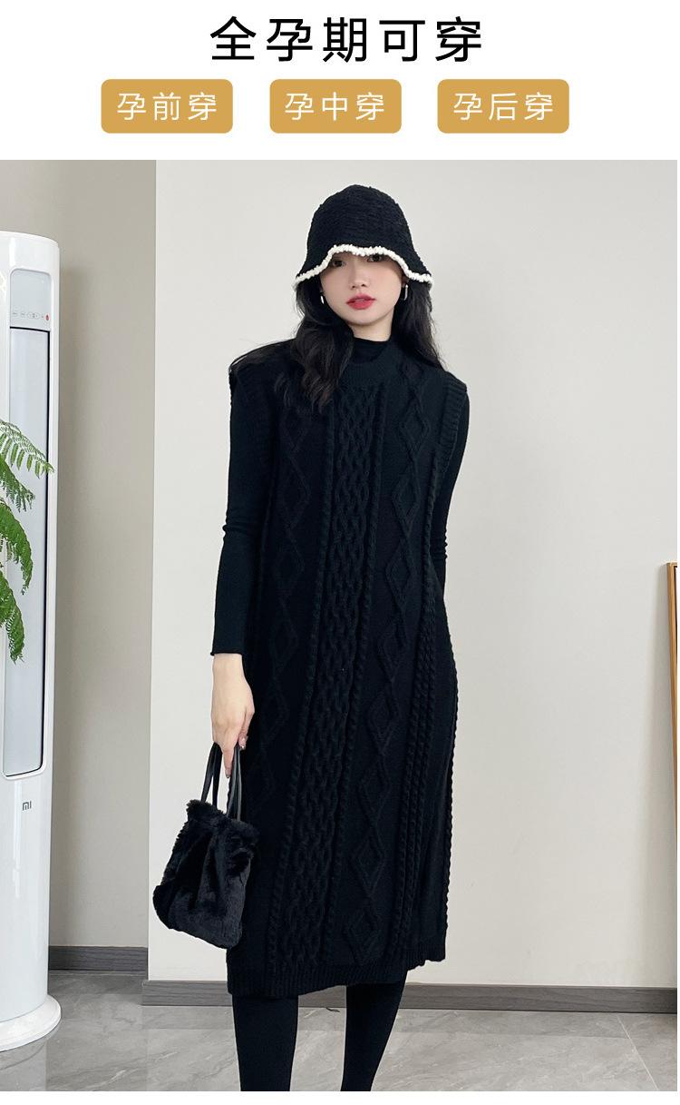 Vestido de maternidad 2024 otoño e invierno nuevo chaleco de punto elegante y holgado que combina con todo + camisa de fondo traje de mujer embarazada vestido de suéter
