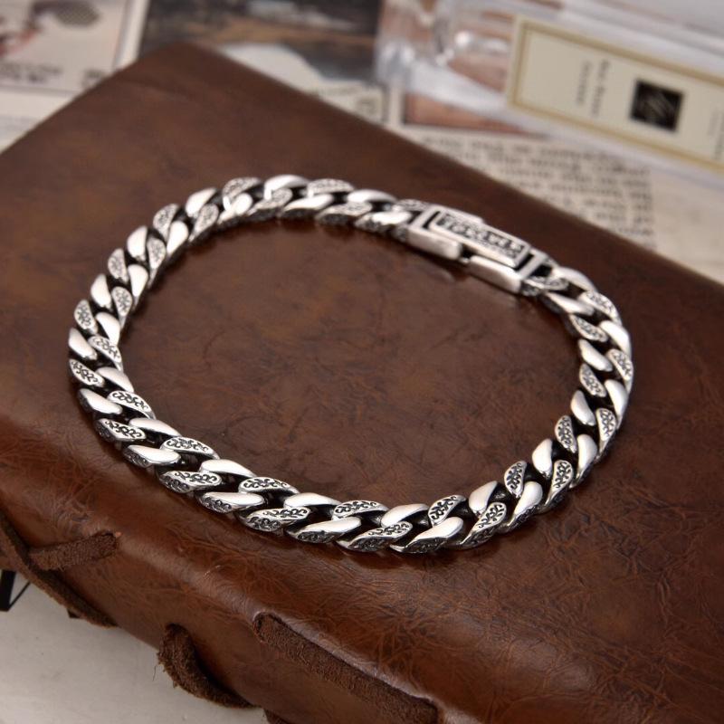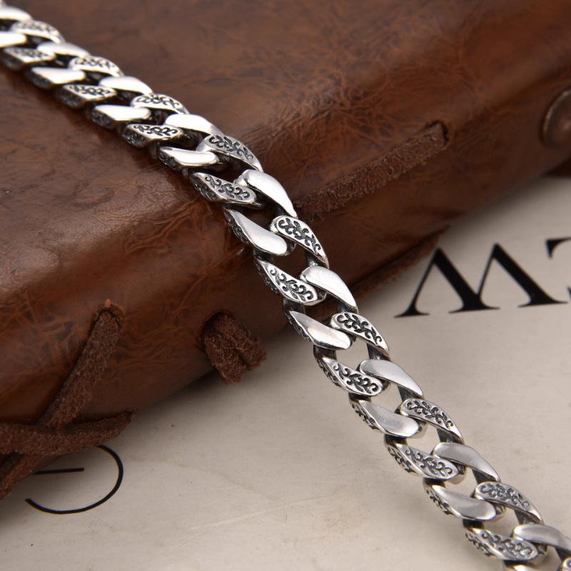 Pulsera Cubana Xiangxu para Hombre Regalo Año del Dragón Estilo Sencillo Atmosférico Patrón Hierba Tang Ancho de Cadena 7mm Salida de Fábrica