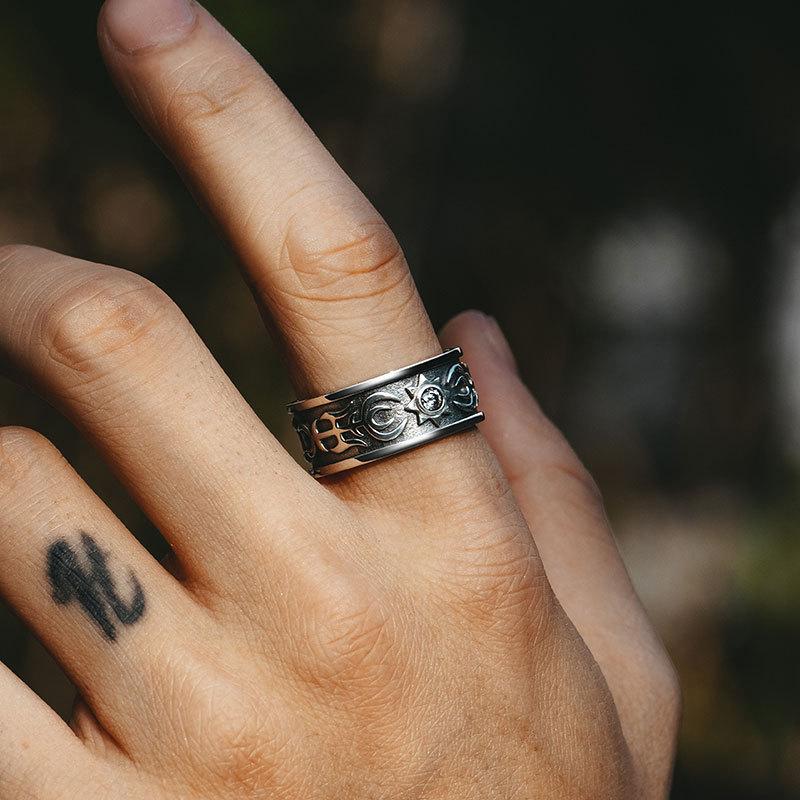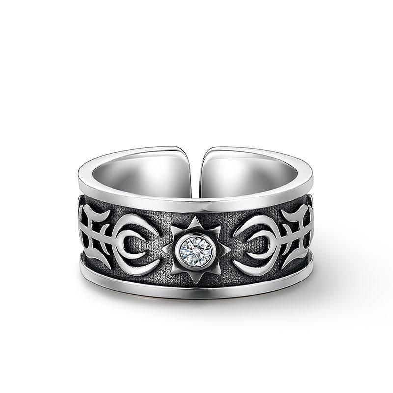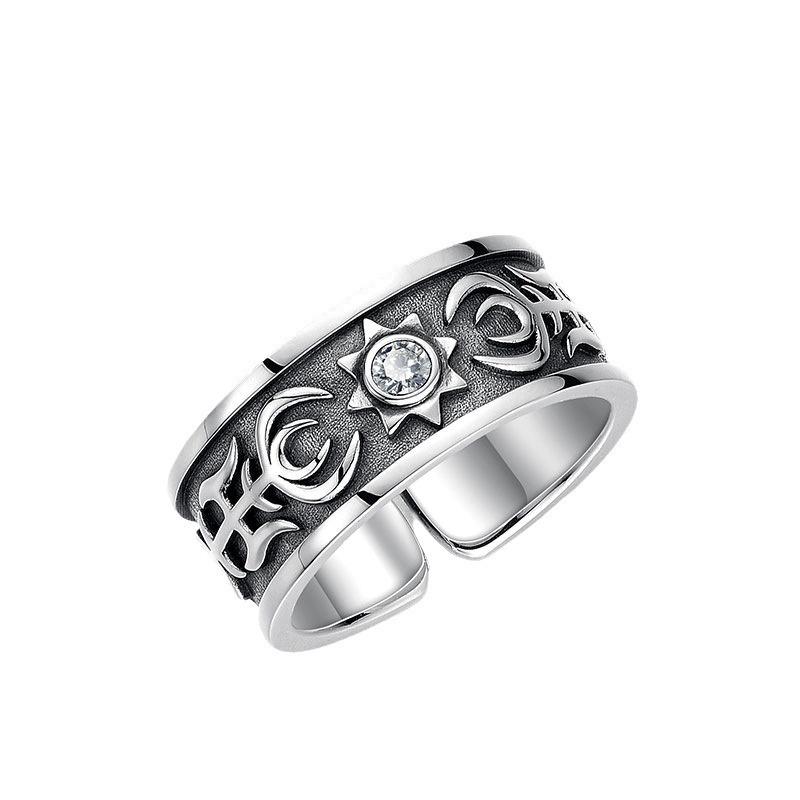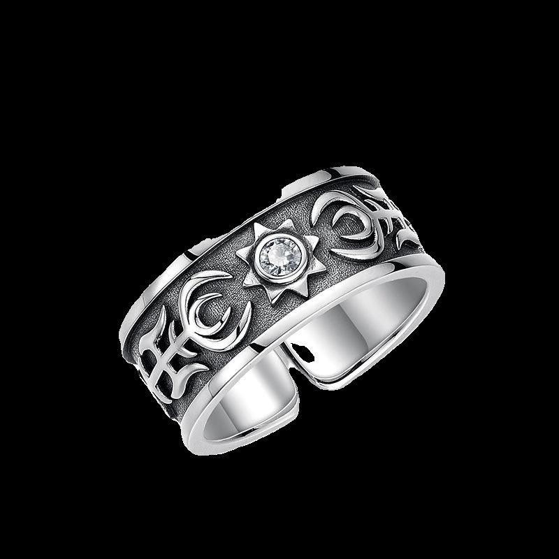 Anillo Vintage Relieve Tótem Sol Personalidad Simple Versátil Gama Alta Anillo Único Anillo Abierto Venta Directa de Fábrica