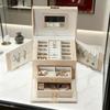 Caja de almacenamiento de joyas portátil multifuncional de doble capa, para collares, anillos y joyas, al por mayor, a prueba de polvo e impermeable.