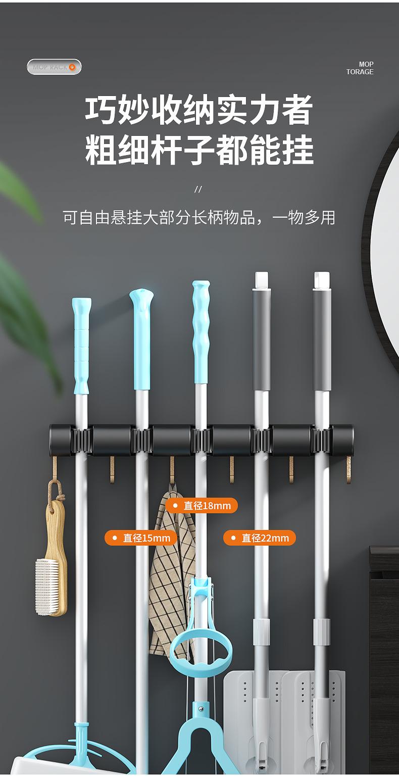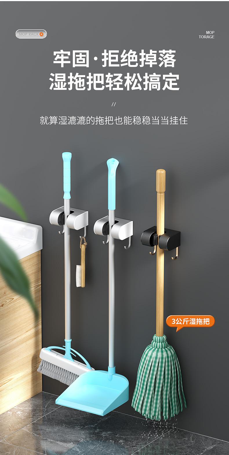 Gancho para trapeador, sin perforaciones, para colgar en la pared, para inodoro, con hebilla de fijación, para almacenamiento, adhesivo resistente, para colgar escobas.