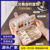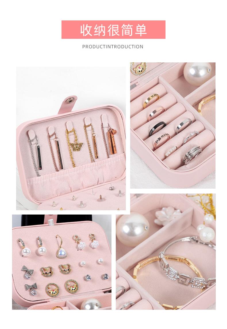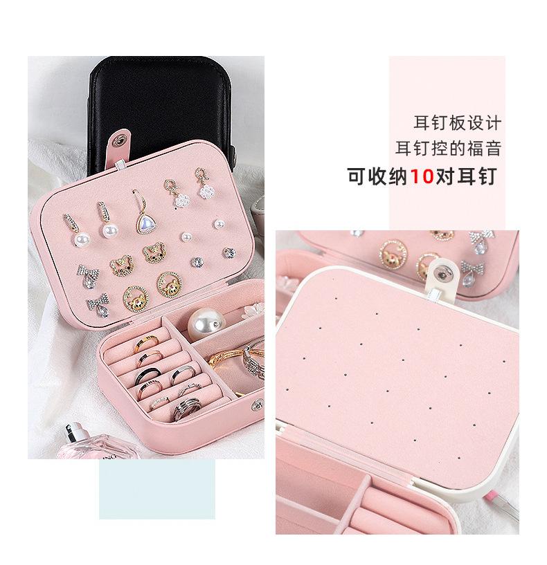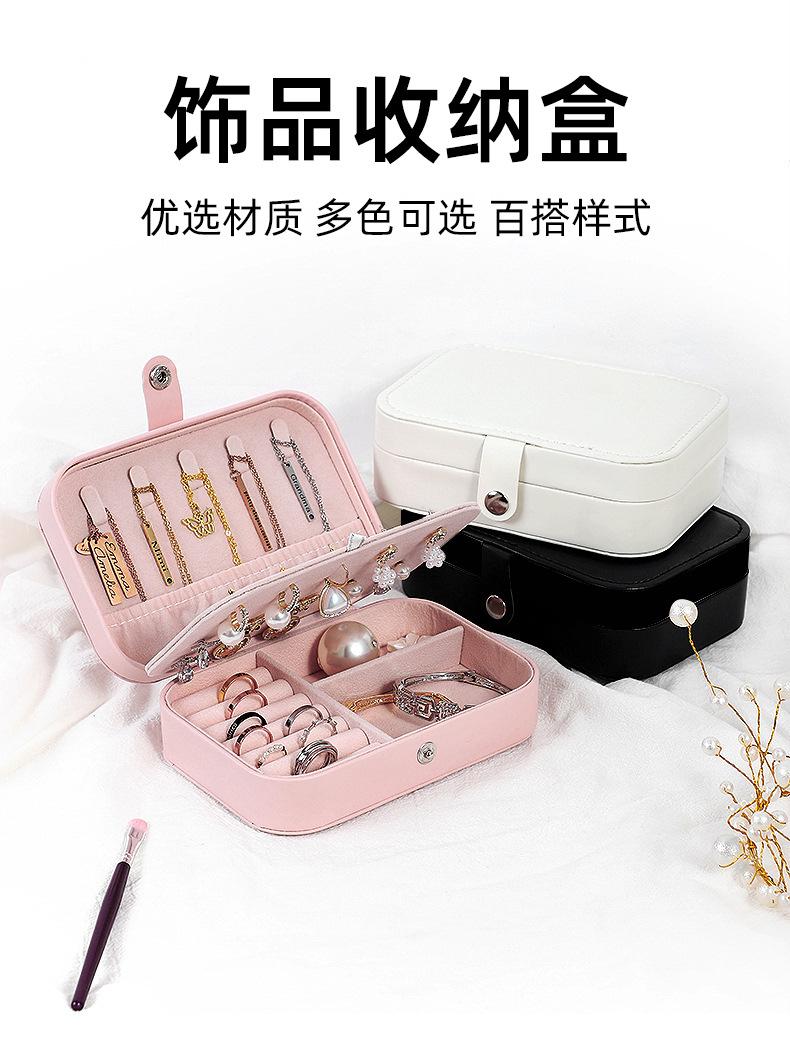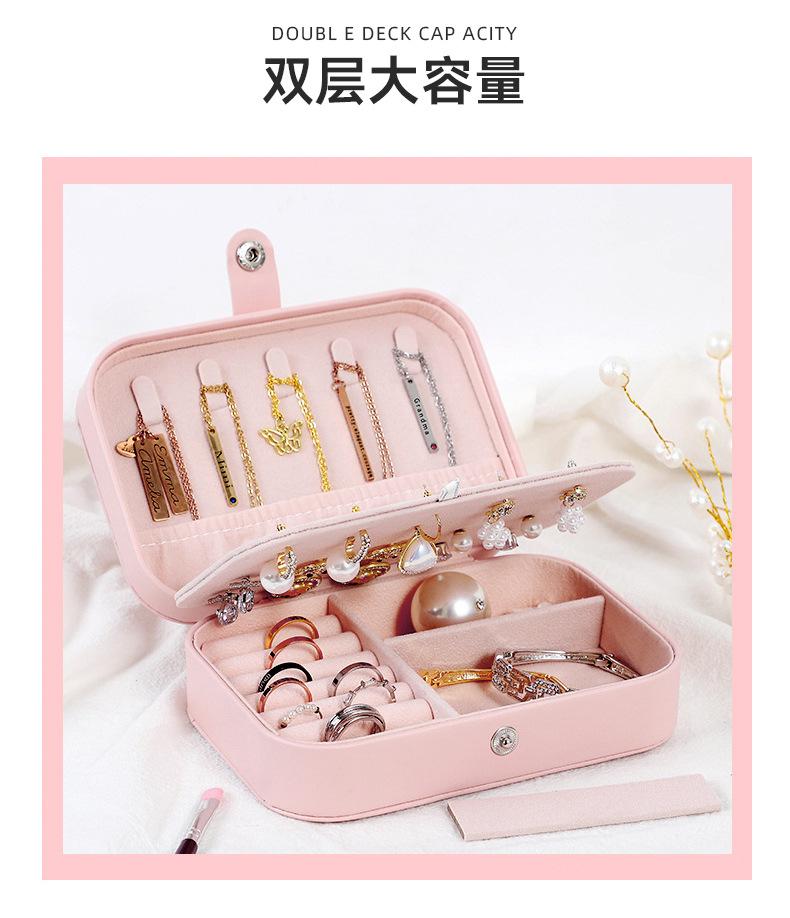 Caja de almacenamiento de joyas, portátil y compacta, exquisita caja de viaje para pendientes, anillos y collares, caja de escritorio de doble capa.