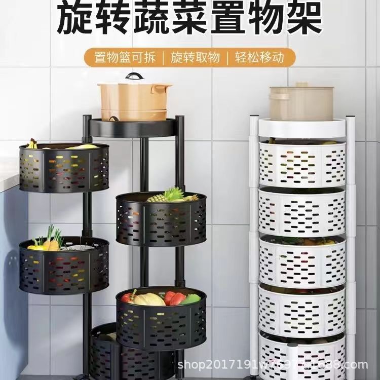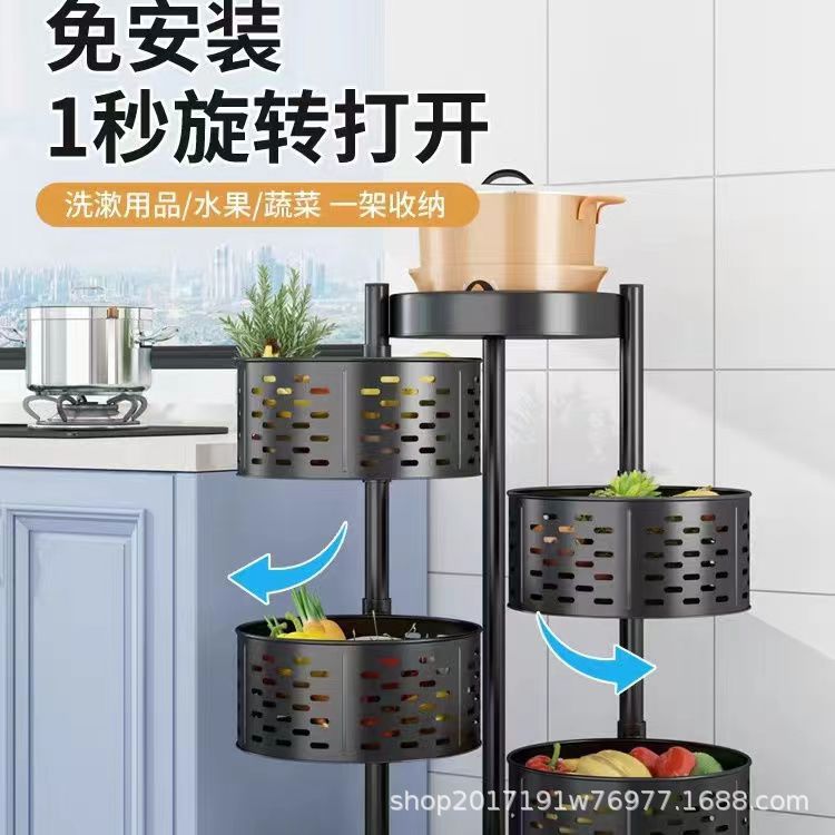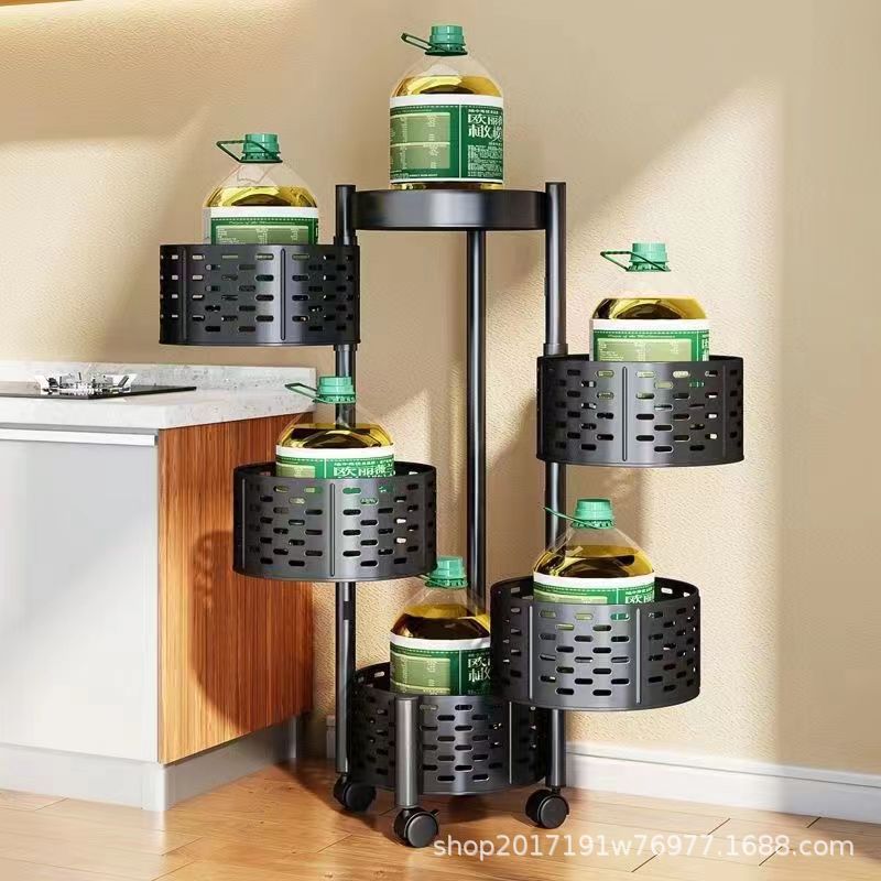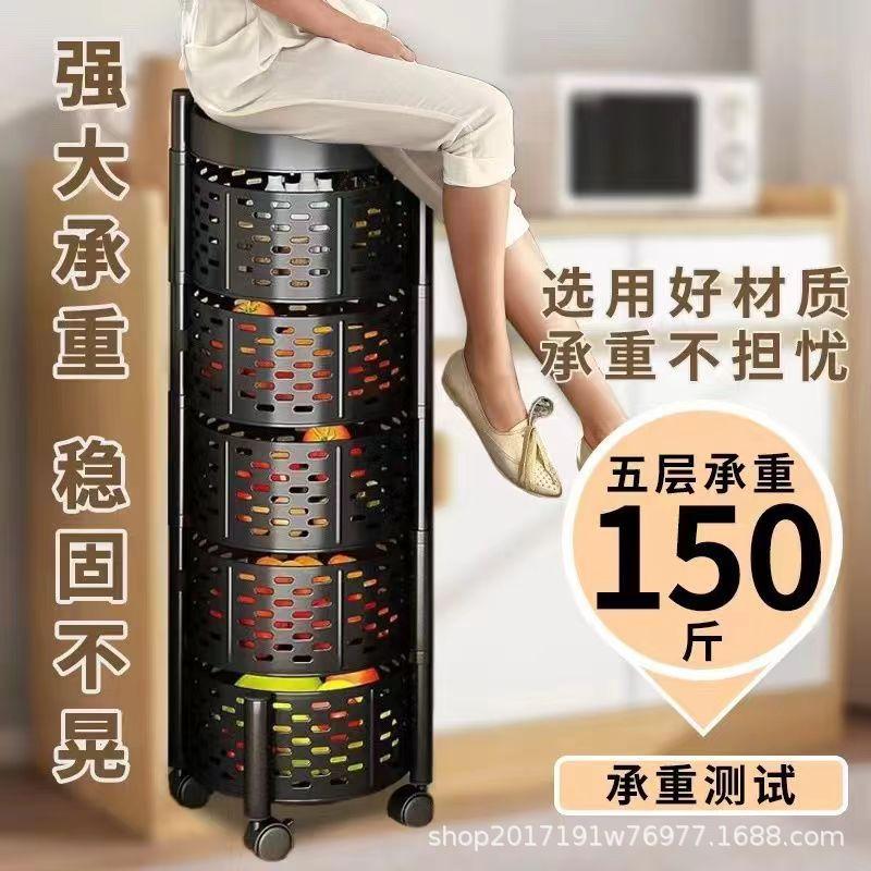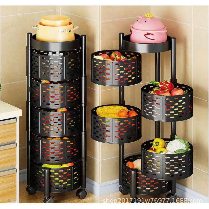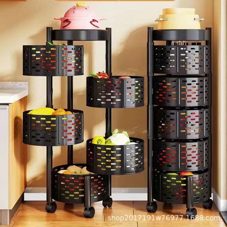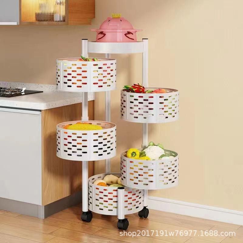 Estante de almacenamiento redondo multifuncional para frutas y verduras con ruedas, estante de almacenamiento de cocina giratorio de piso para el hogar, estante de frutas multicapa