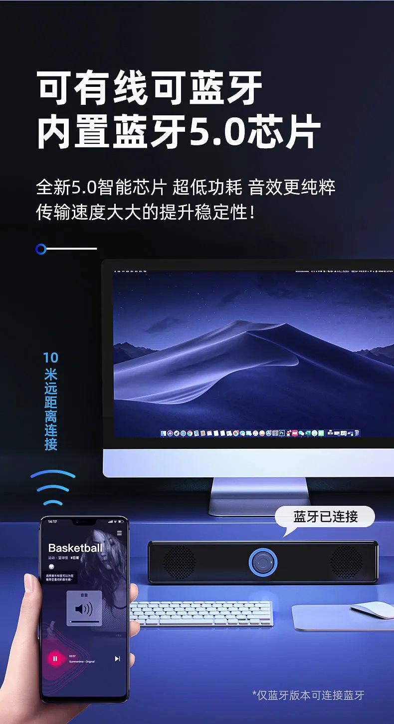 Audio para computadora de escritorio, altavoz pequeño para el hogar, altavoz doble, gran volumen, portátil, escritorio, largo, Bluetooth, subwoofer pesado