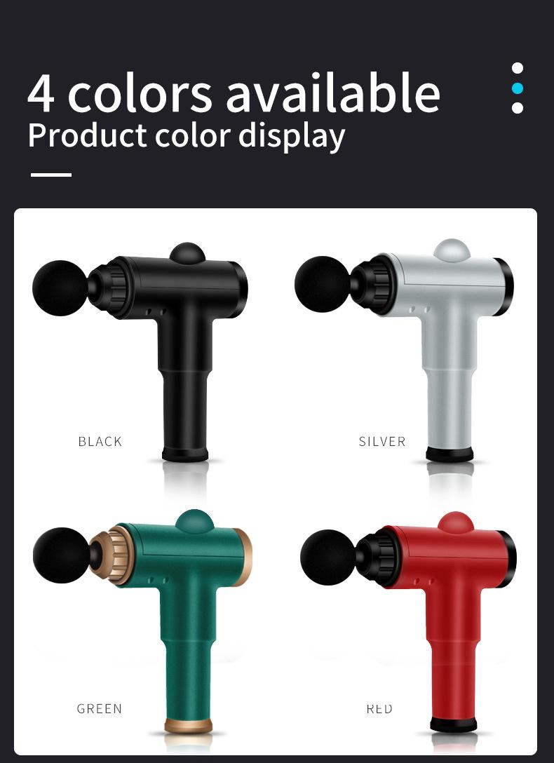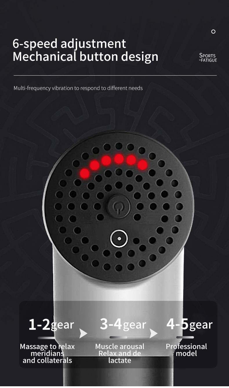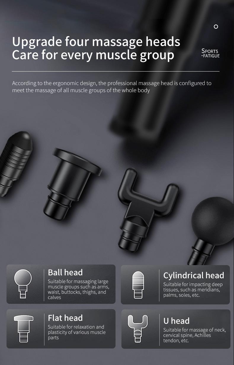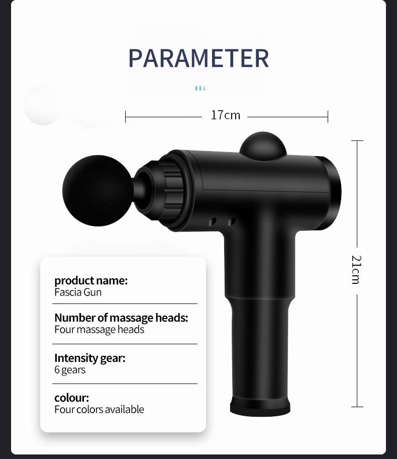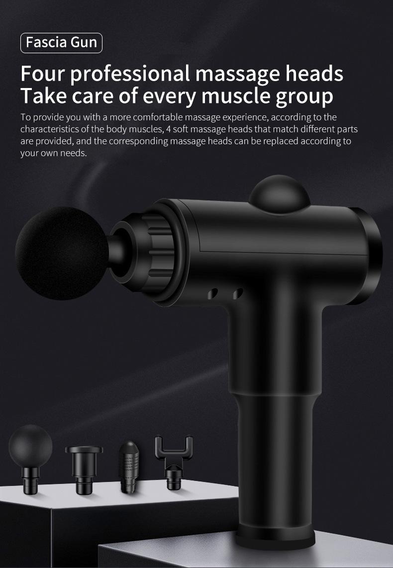 Configuración de pistola fascial de seis velocidades: unidad principal + cuatro cabezales de masaje + cargador + manual en chino/inglés + caja de color