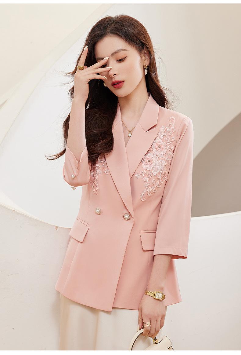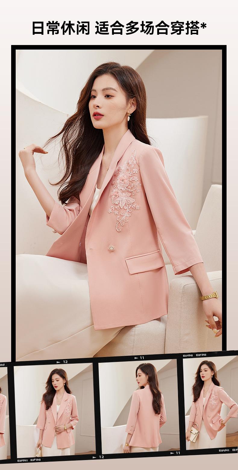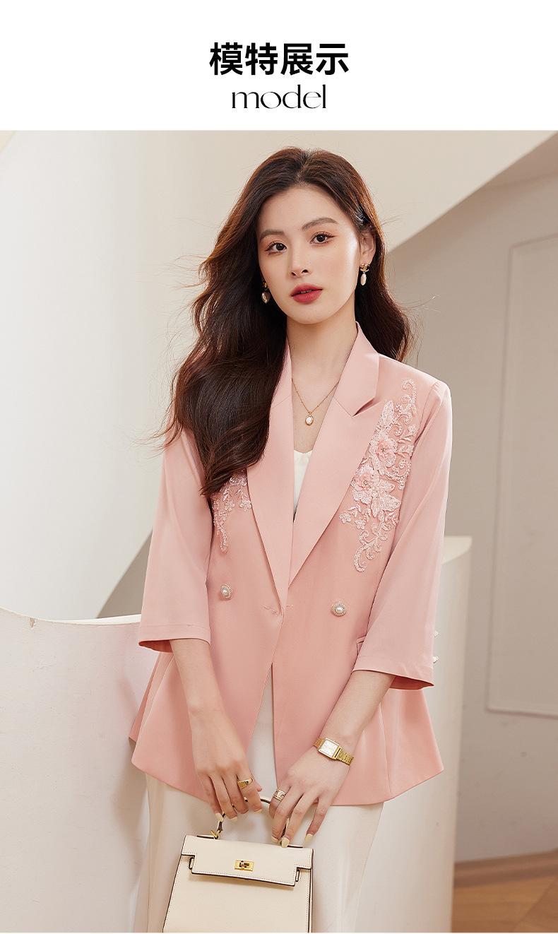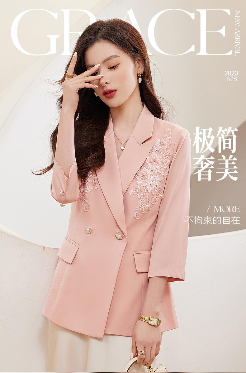 Chaqueta de traje de manga tres cuartos rosa nueva primavera y otoño 2023, moda casual para mujer, temperamento moderno, moda de viajero