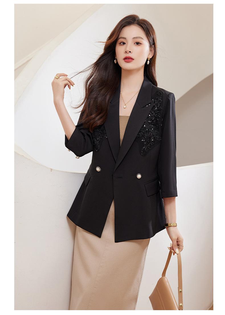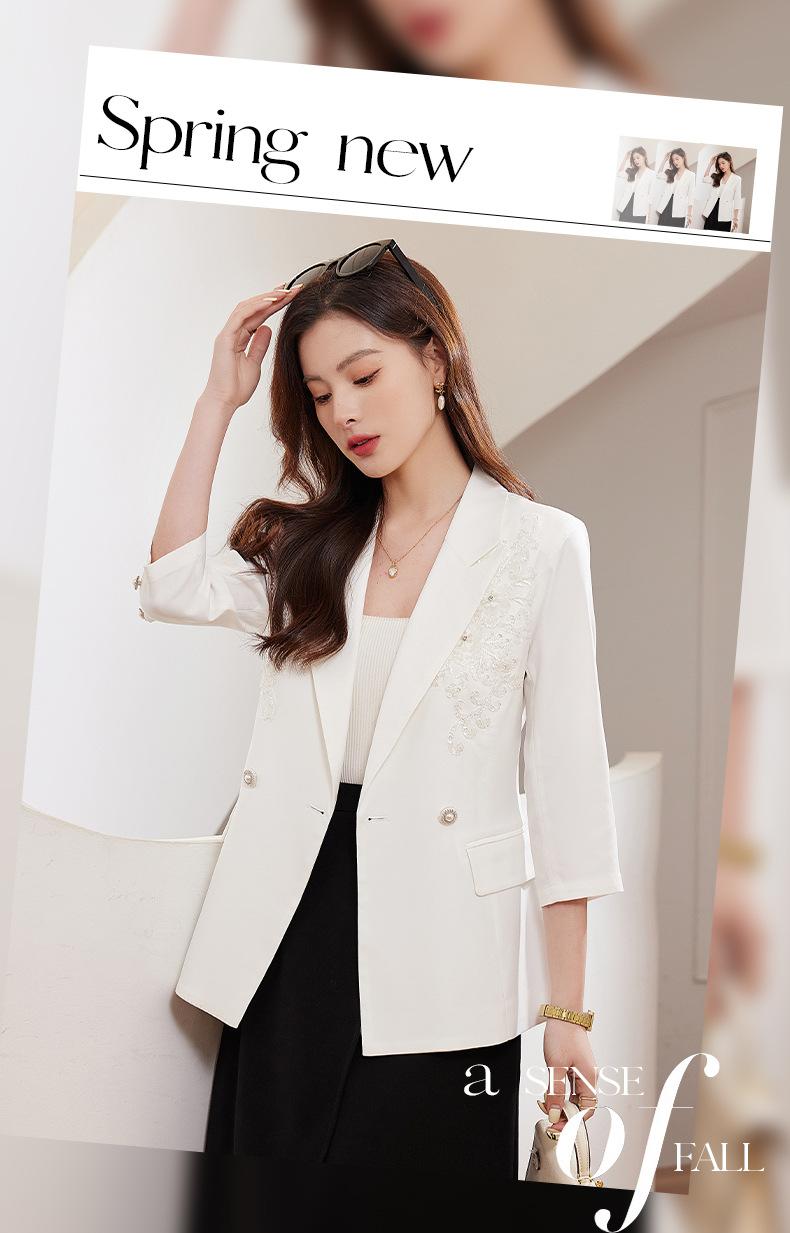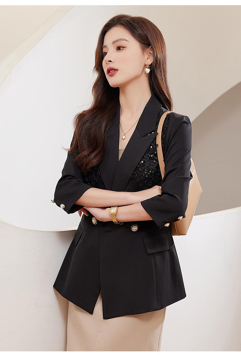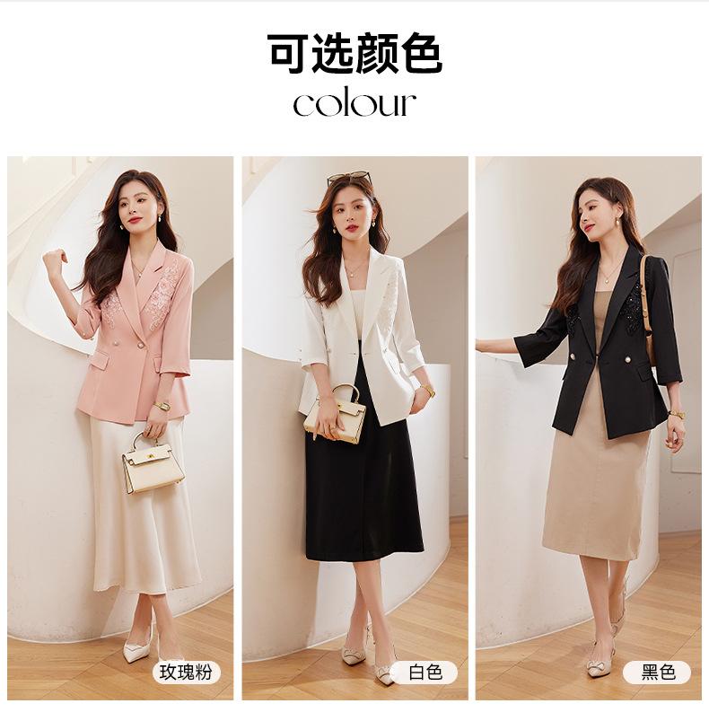 Chaqueta de traje de manga tres cuartos rosa nueva primavera y otoño 2023, moda casual para mujer, temperamento moderno, moda de viajero