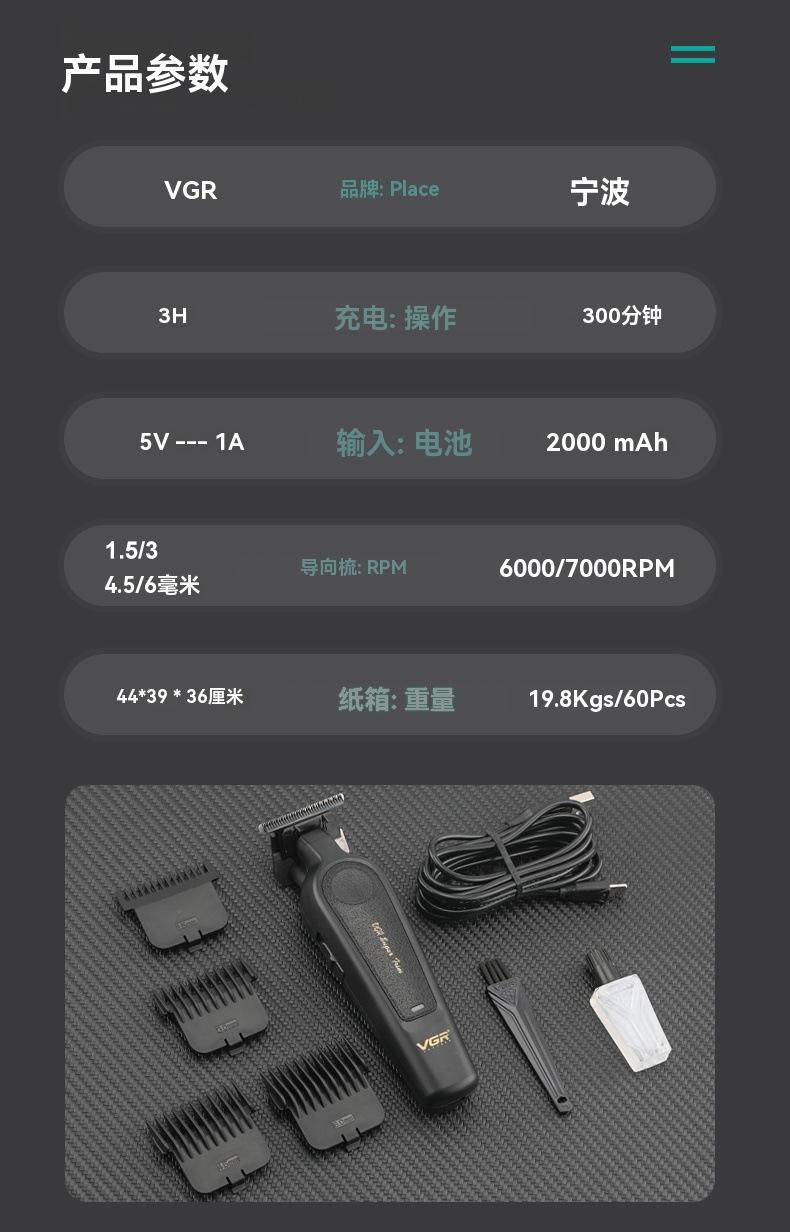 VGR995 Cortadora de cabello eléctrica transfronteriza, cortadora de cabello eléctrica para hombres con cabezal de aceite para el hogar, afeitadora recargable, cortadora eléctrica
