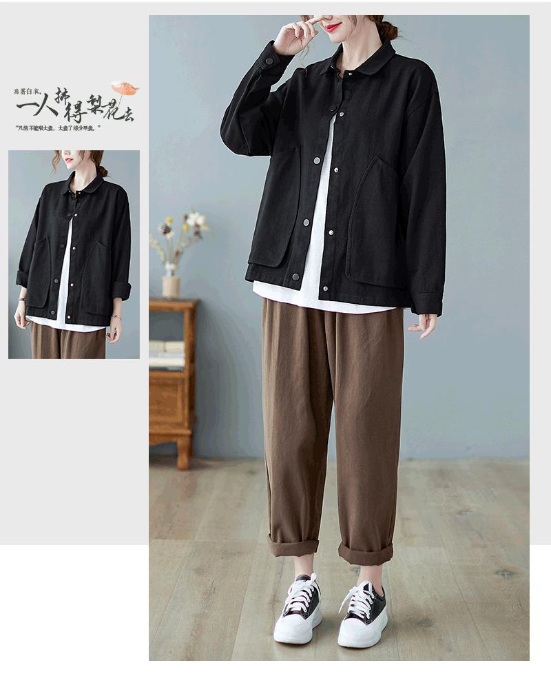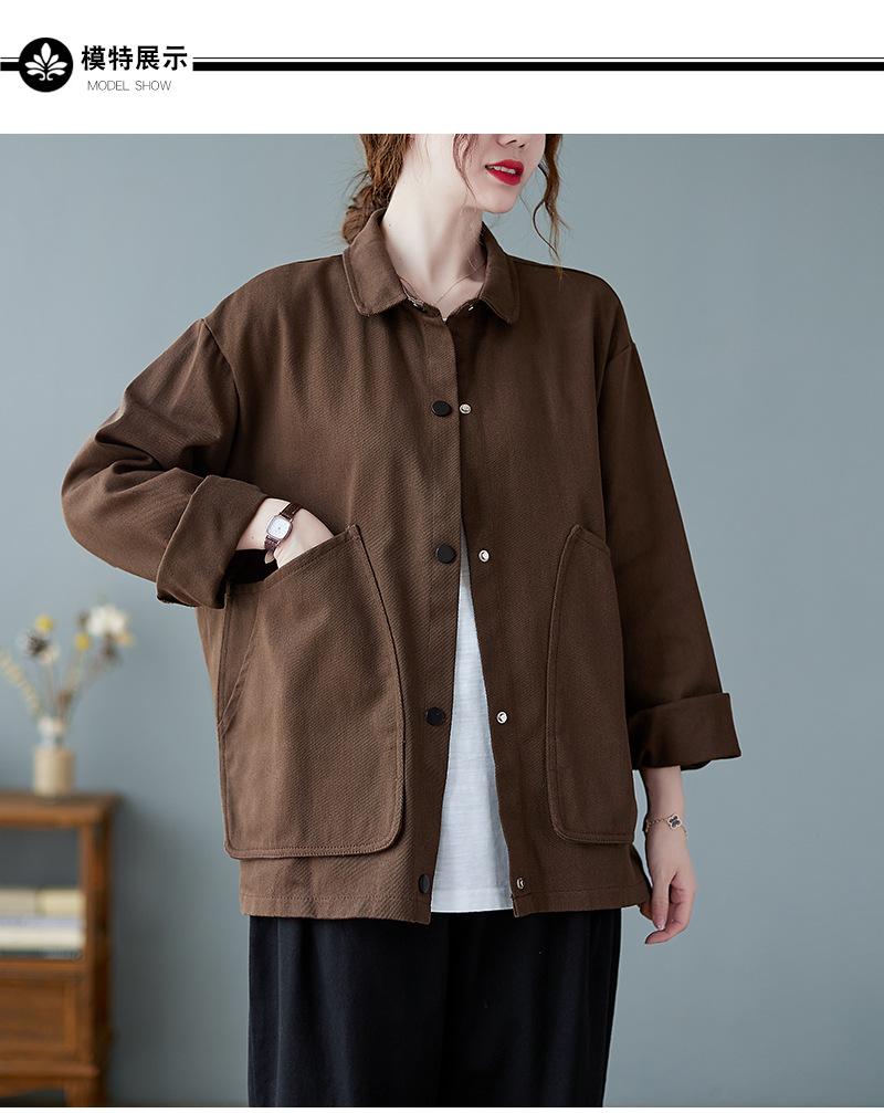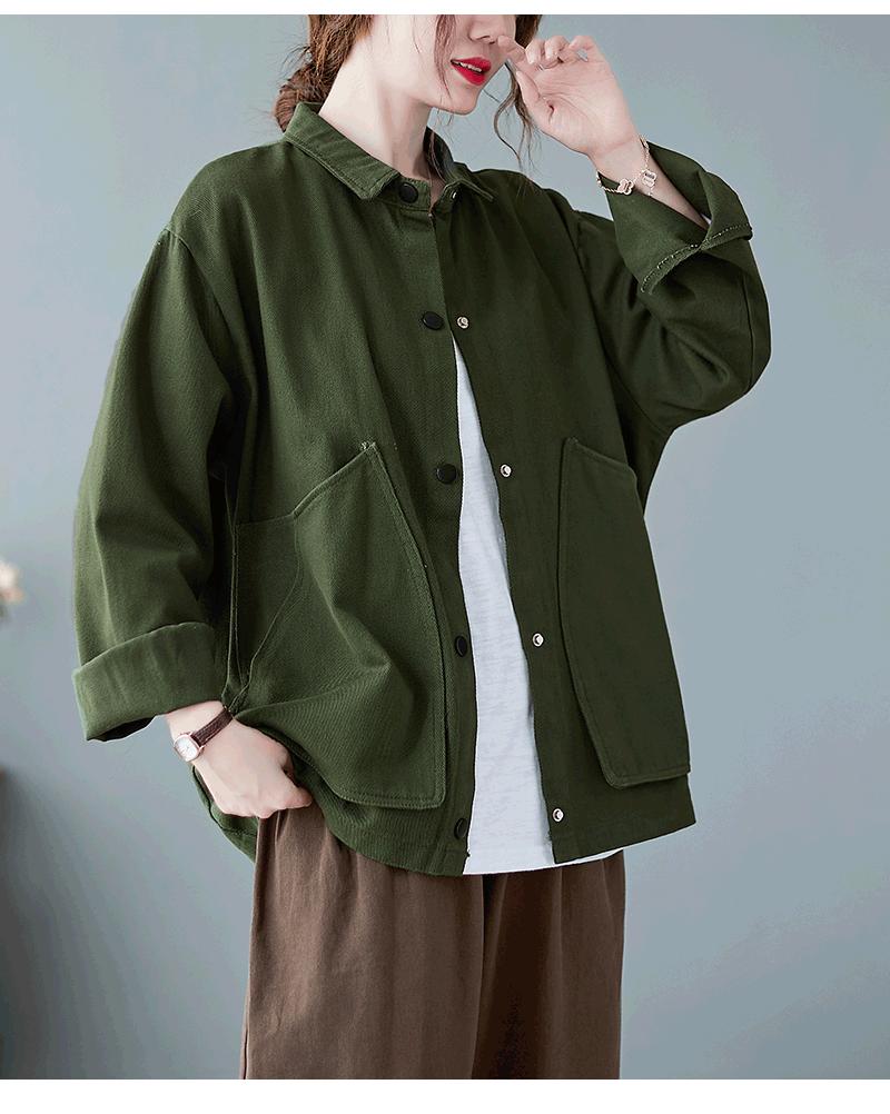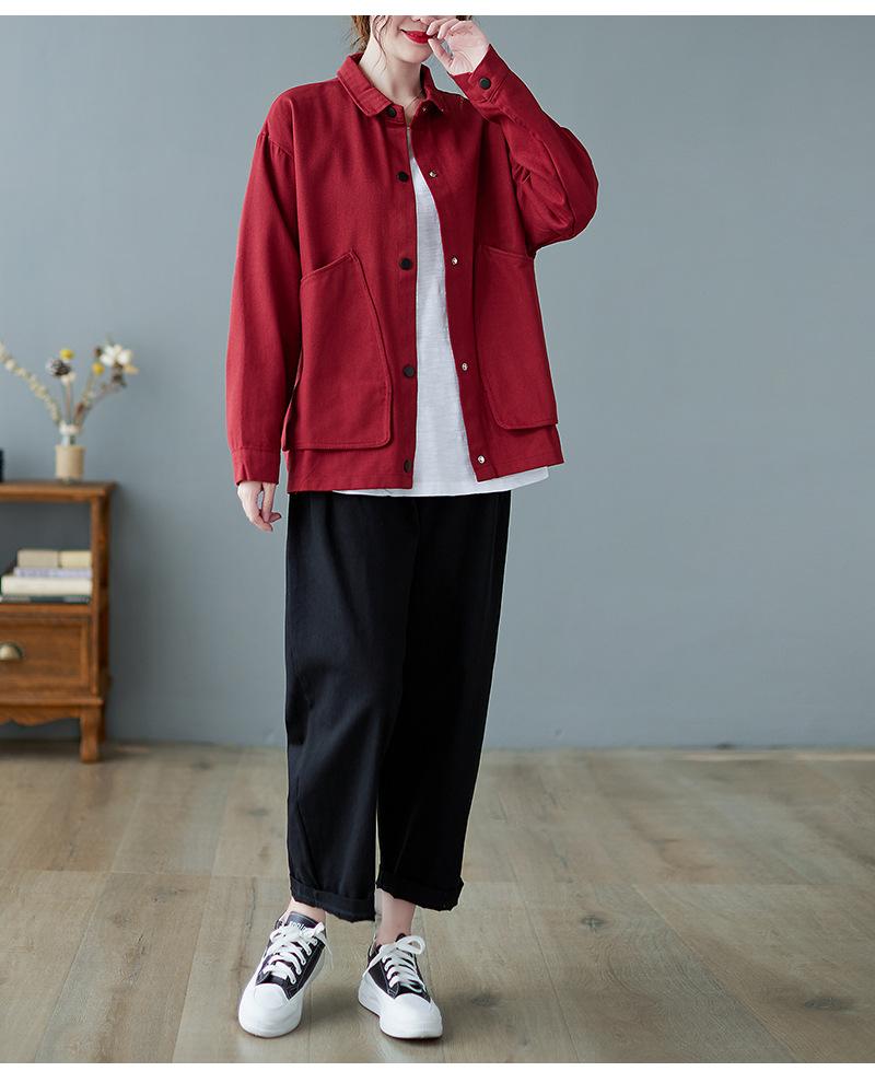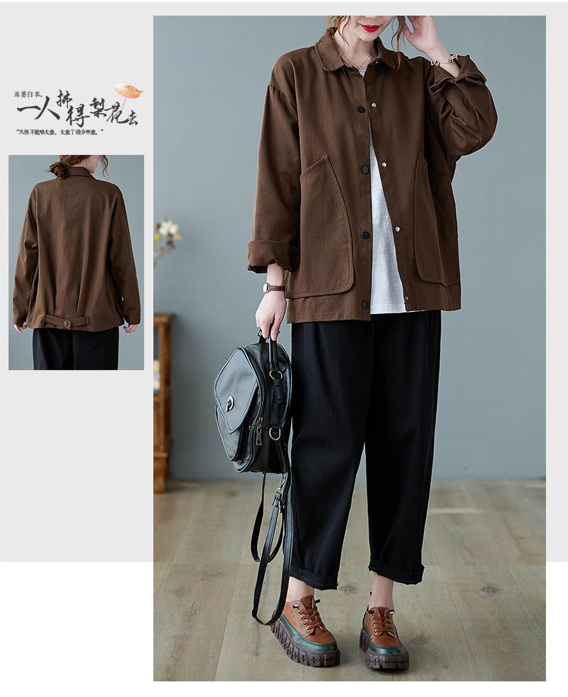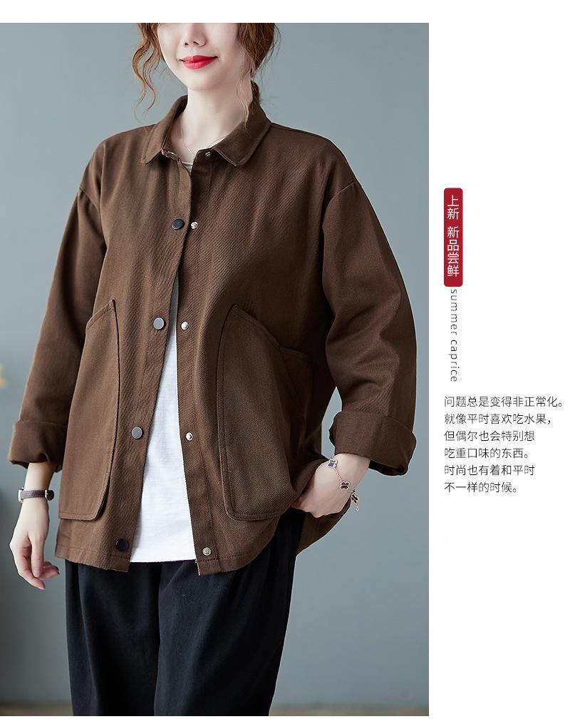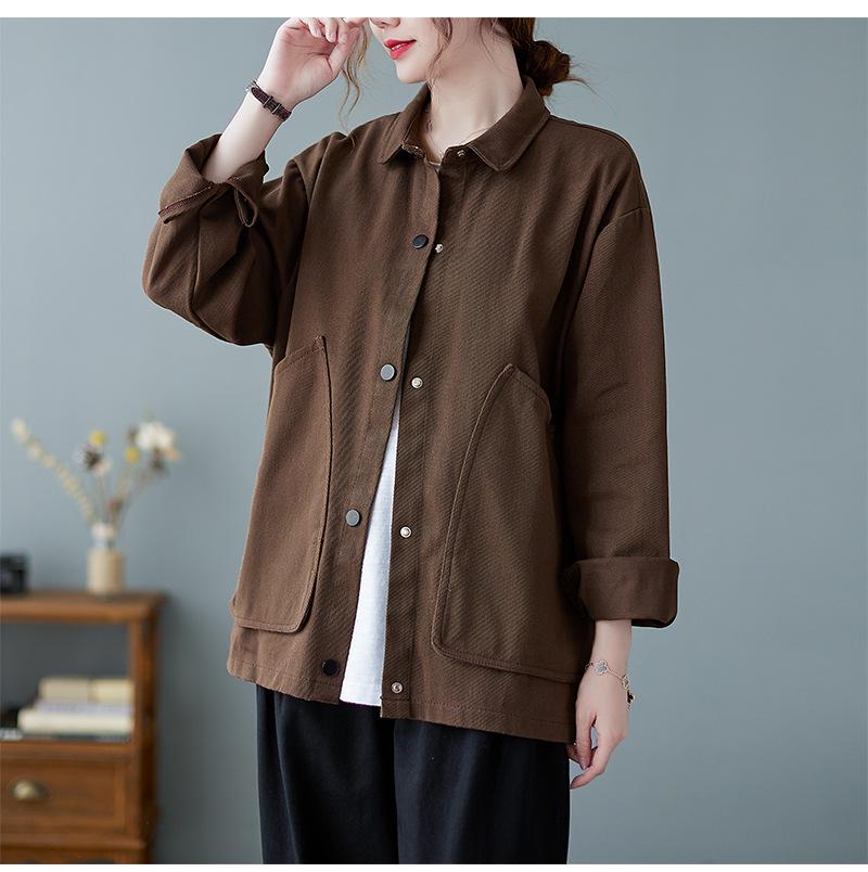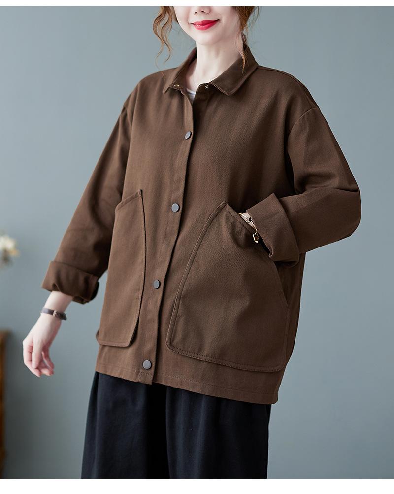 Abrigo corto de otoño 2024 con bolsillo grande, corte holgado y entallado, solapa de un solo botón, manga larga, top de una sola capa para mujer