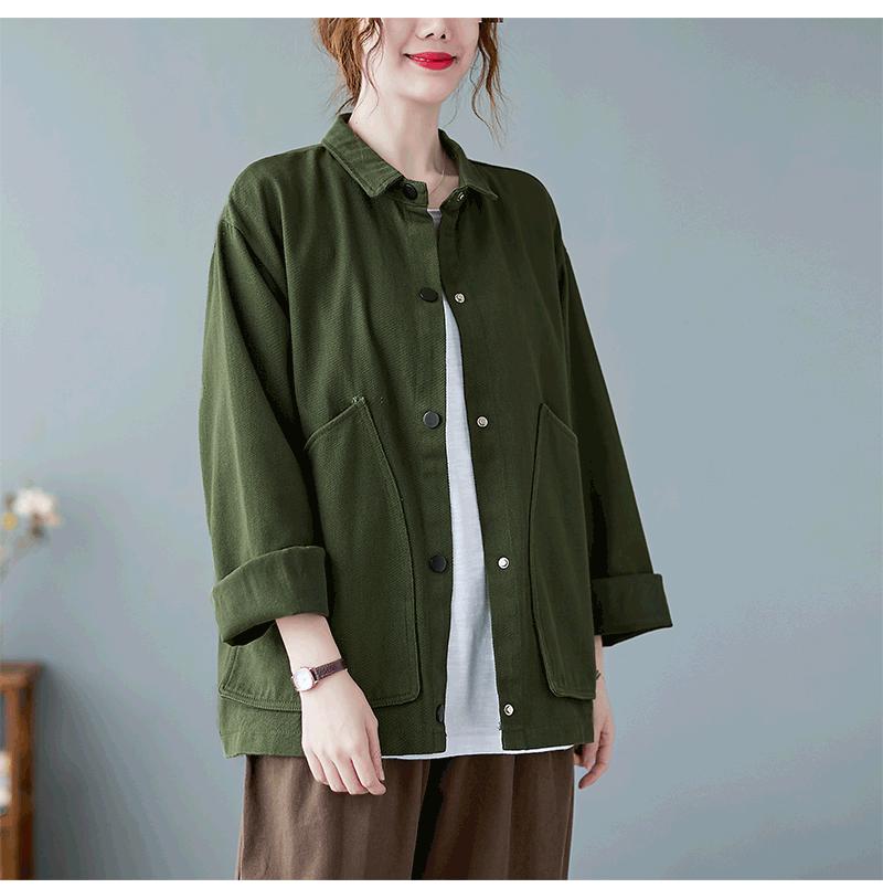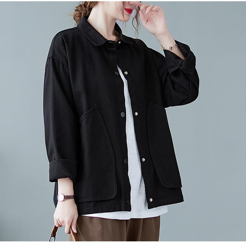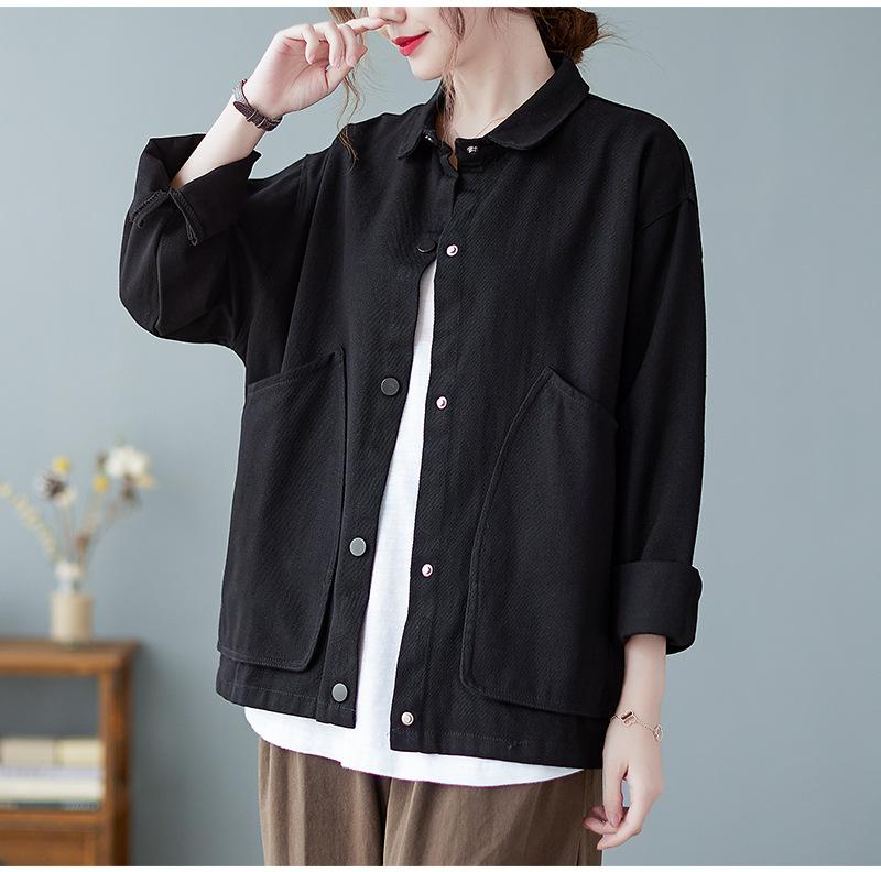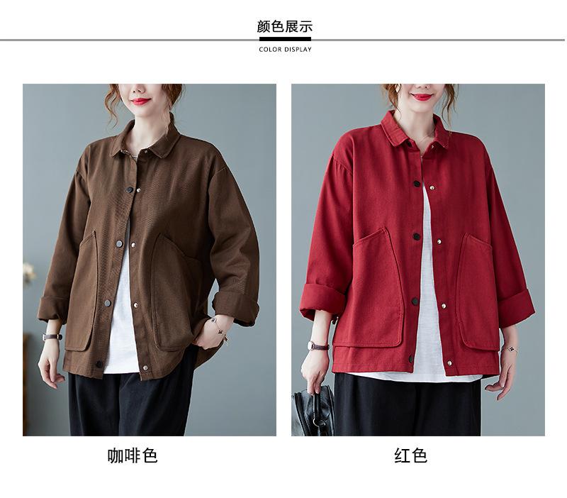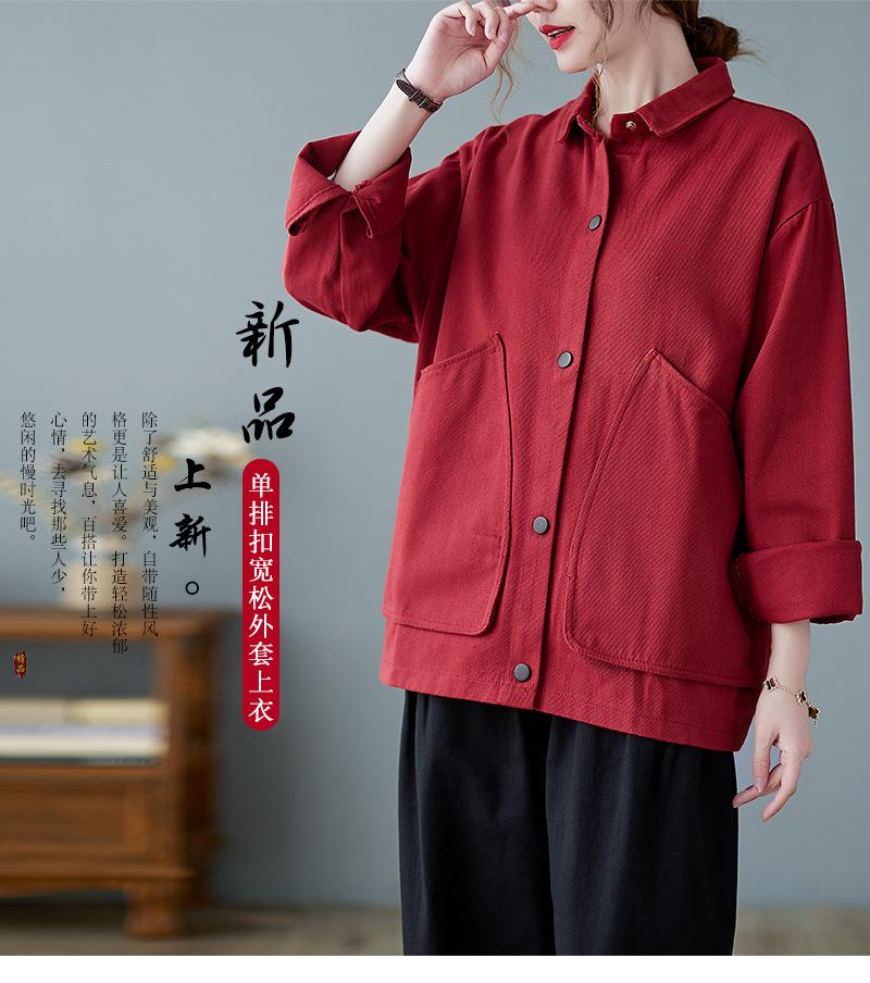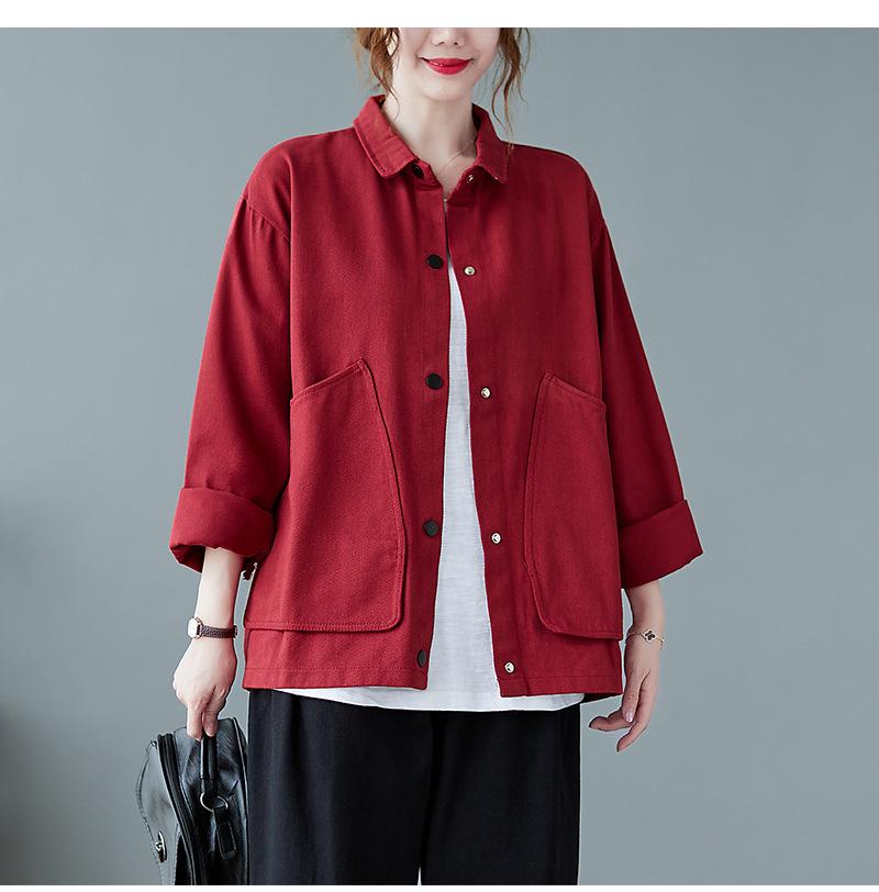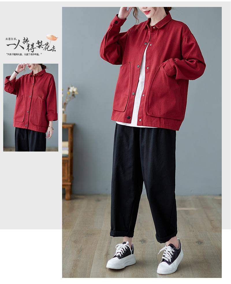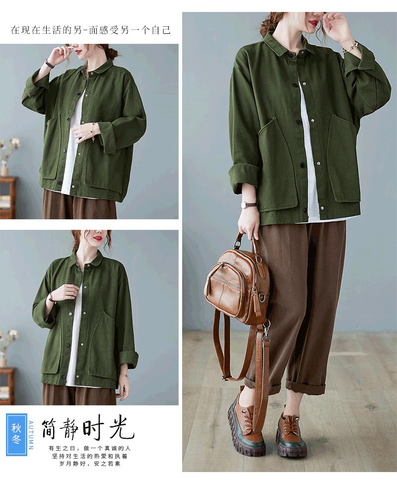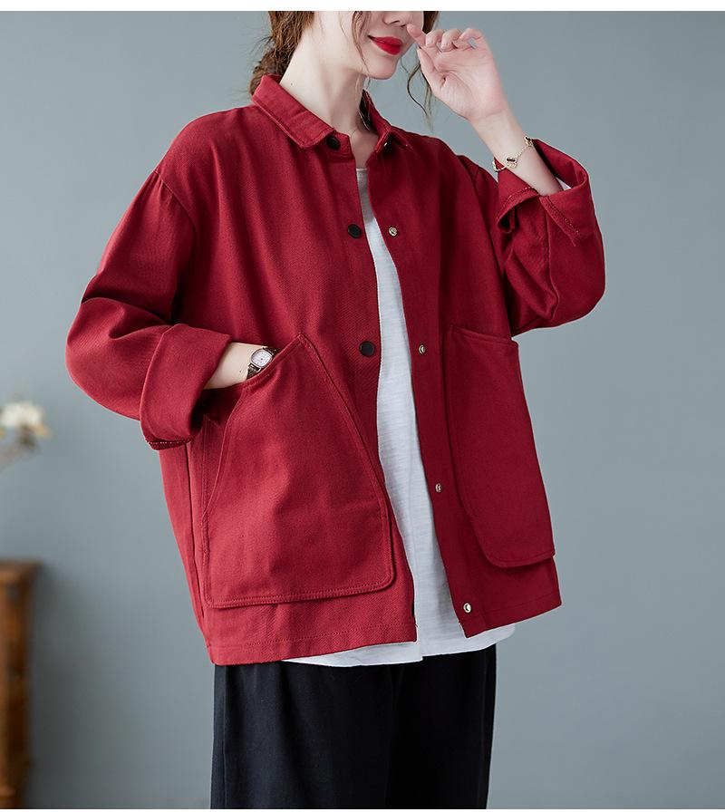 Abrigo corto de otoño 2024 con bolsillo grande, corte holgado y entallado, solapa de un solo botón, manga larga, top de una sola capa para mujer