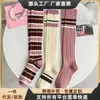Calcetines rosas de rayas anchas para mujer, calcetín adelgazante, largos, estilo japonés, para ir al trabajo