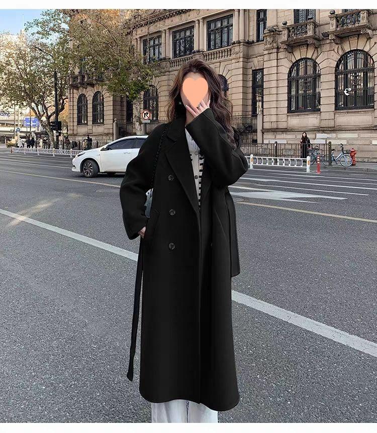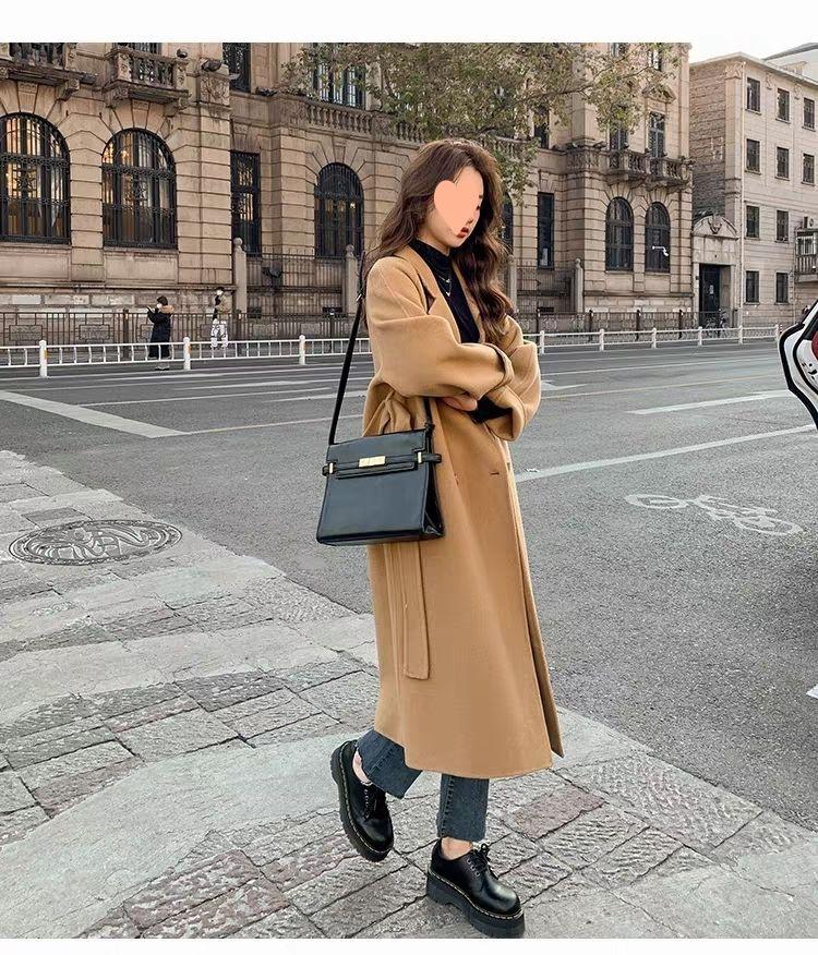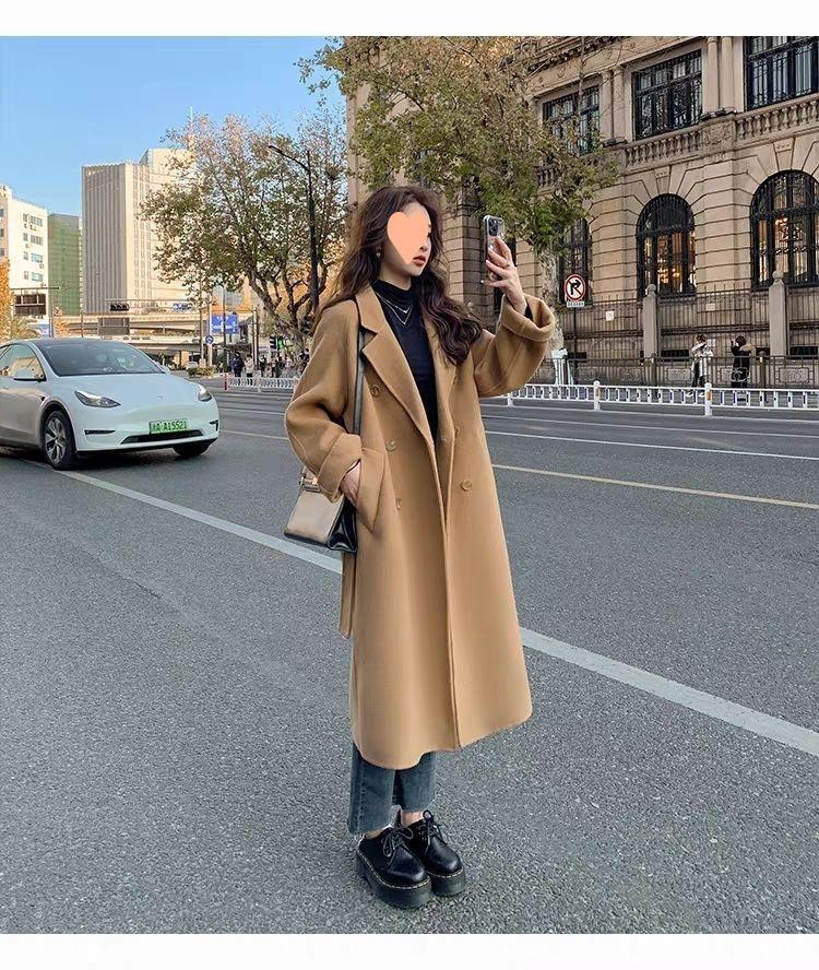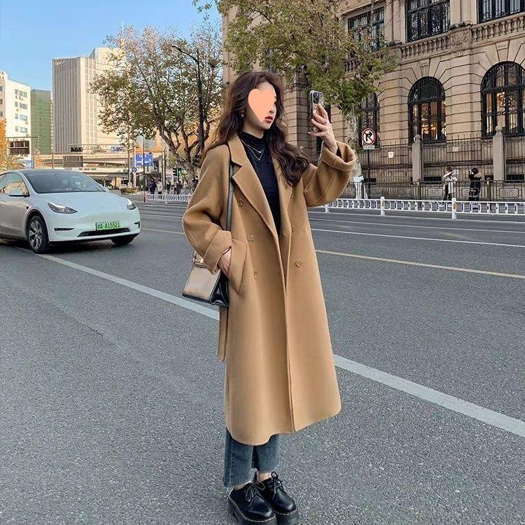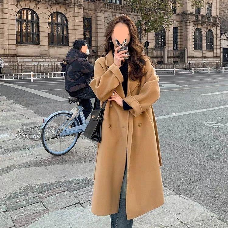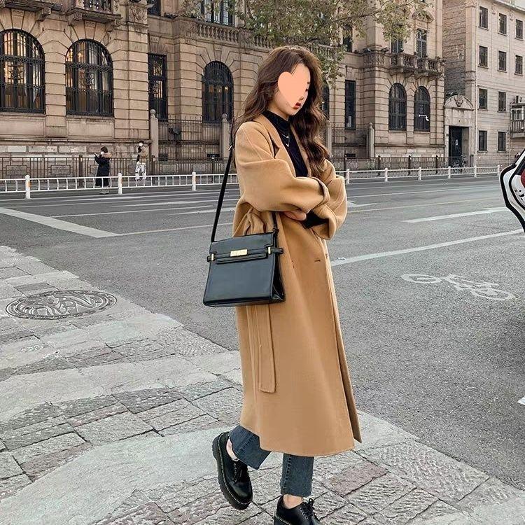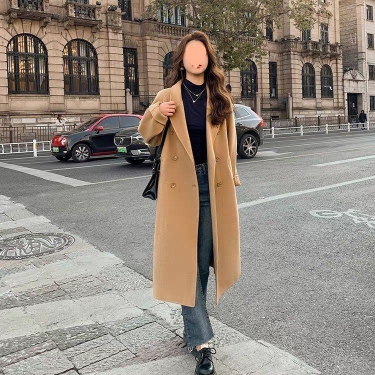Abrigo de lana para mujer Maillard Fashion Nuevo diseño cruzado Otoño e Invierno Abrigo de lana de longitud media