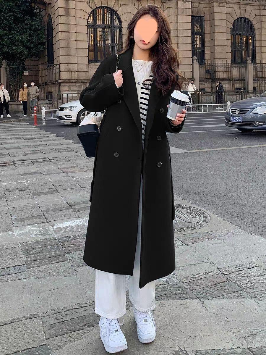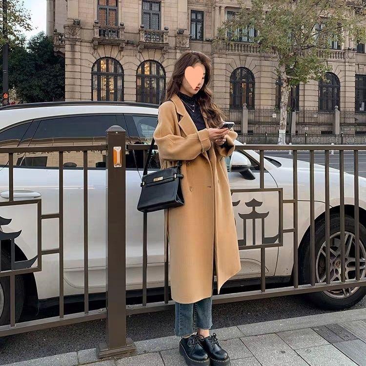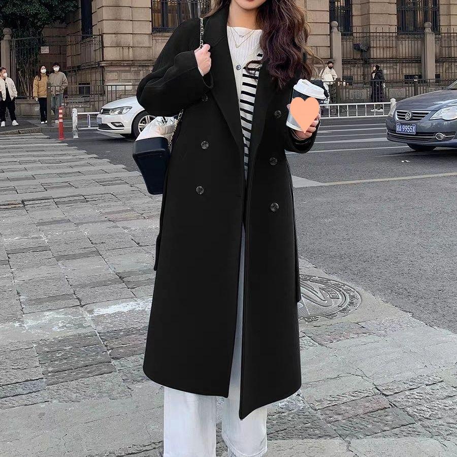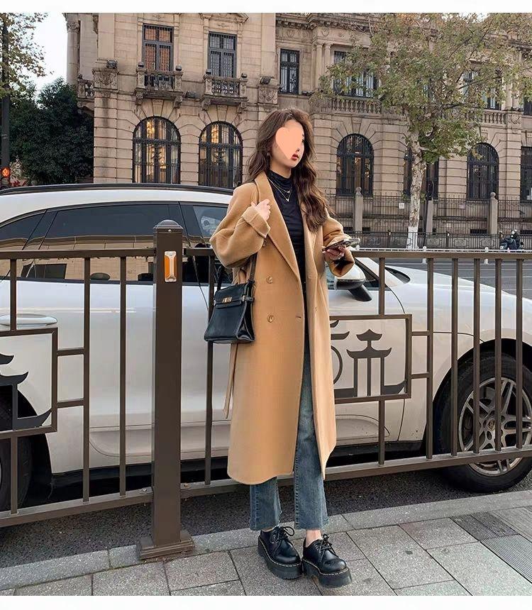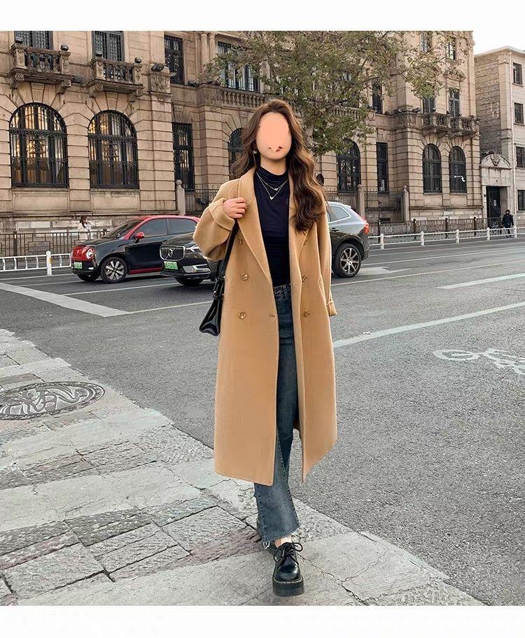 Abrigo de lana para mujer Maillard Fashion Nuevo diseño cruzado Otoño e Invierno Abrigo de lana de longitud media