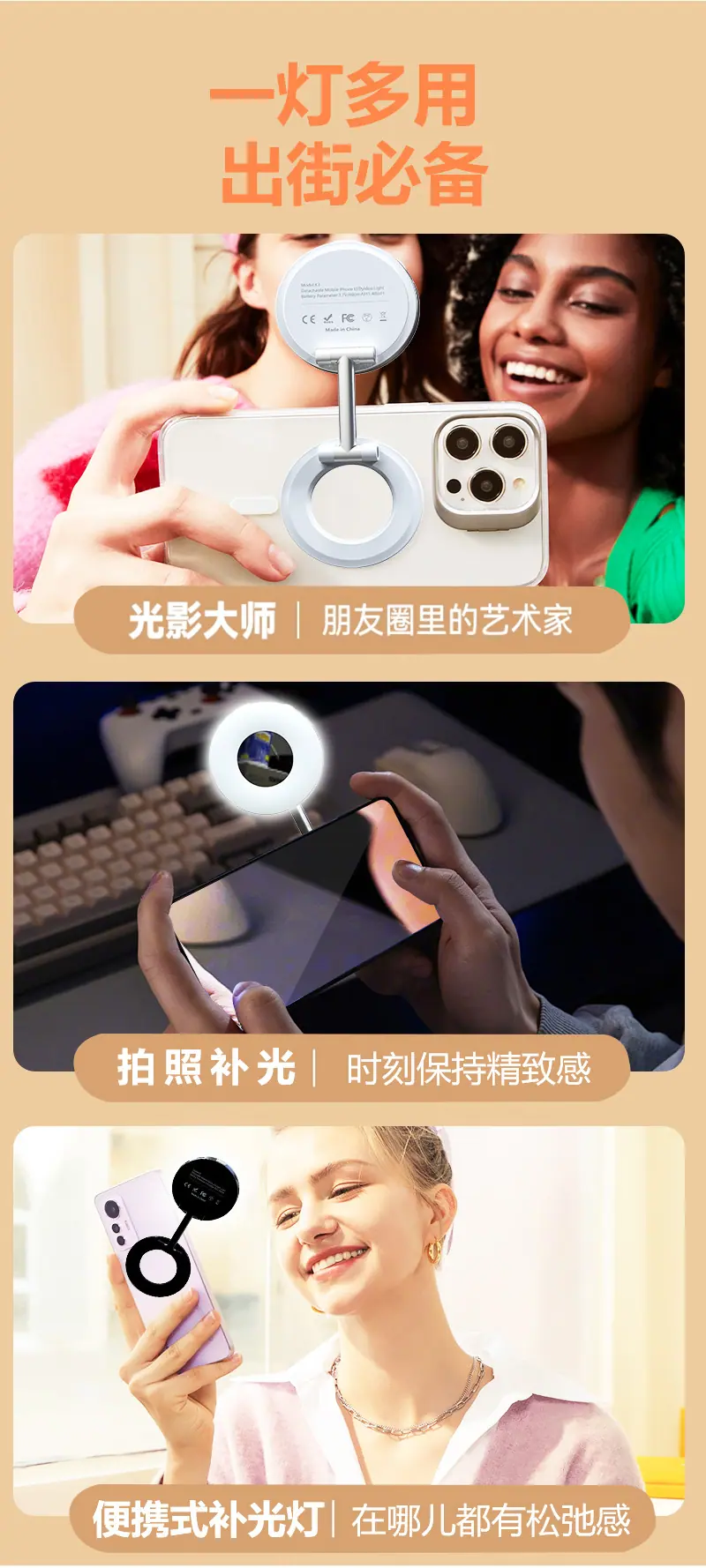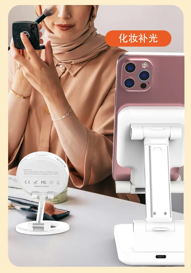1, Botón de encendido: Presionar prolongadamente para encender/apagar, presionar brevemente para cambiar rápidamente la temperatura de color (2500K, 5700K, 8500K, advertencia estroboscópica de luz blanca)