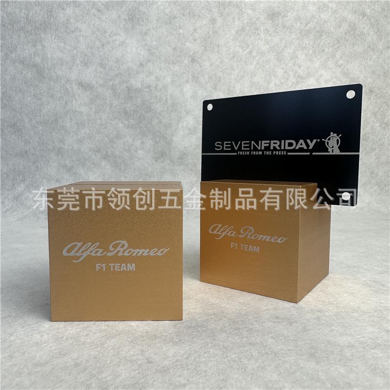 Fabricante de Dongguan Procesamiento de Lotes Pequeños Exhibición Base de Aluminio Cnc Computarizado Tarjetero Tarjeta de Gong Logotipo Láser