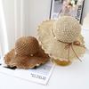 Sombrero de paja con lazo y correa para mujer, sombrero de sol de verano, plegable, de ala grande, para playa, vacaciones en la playa